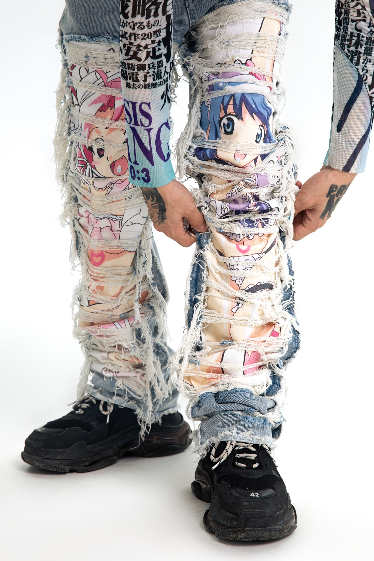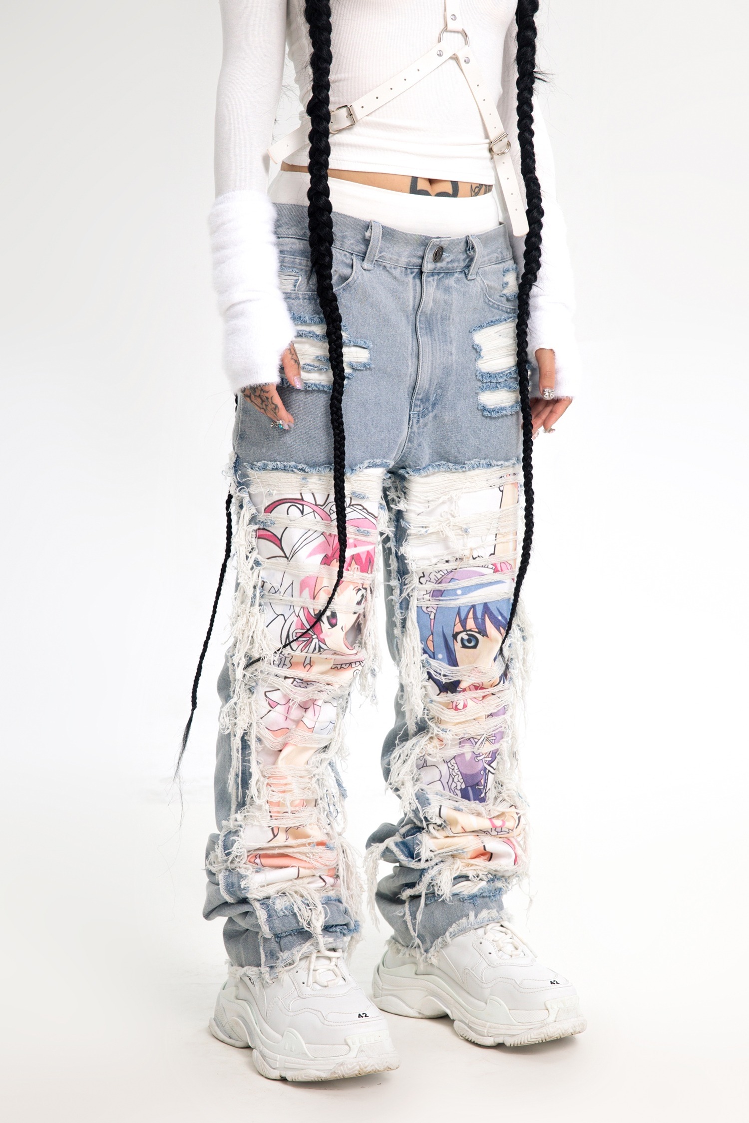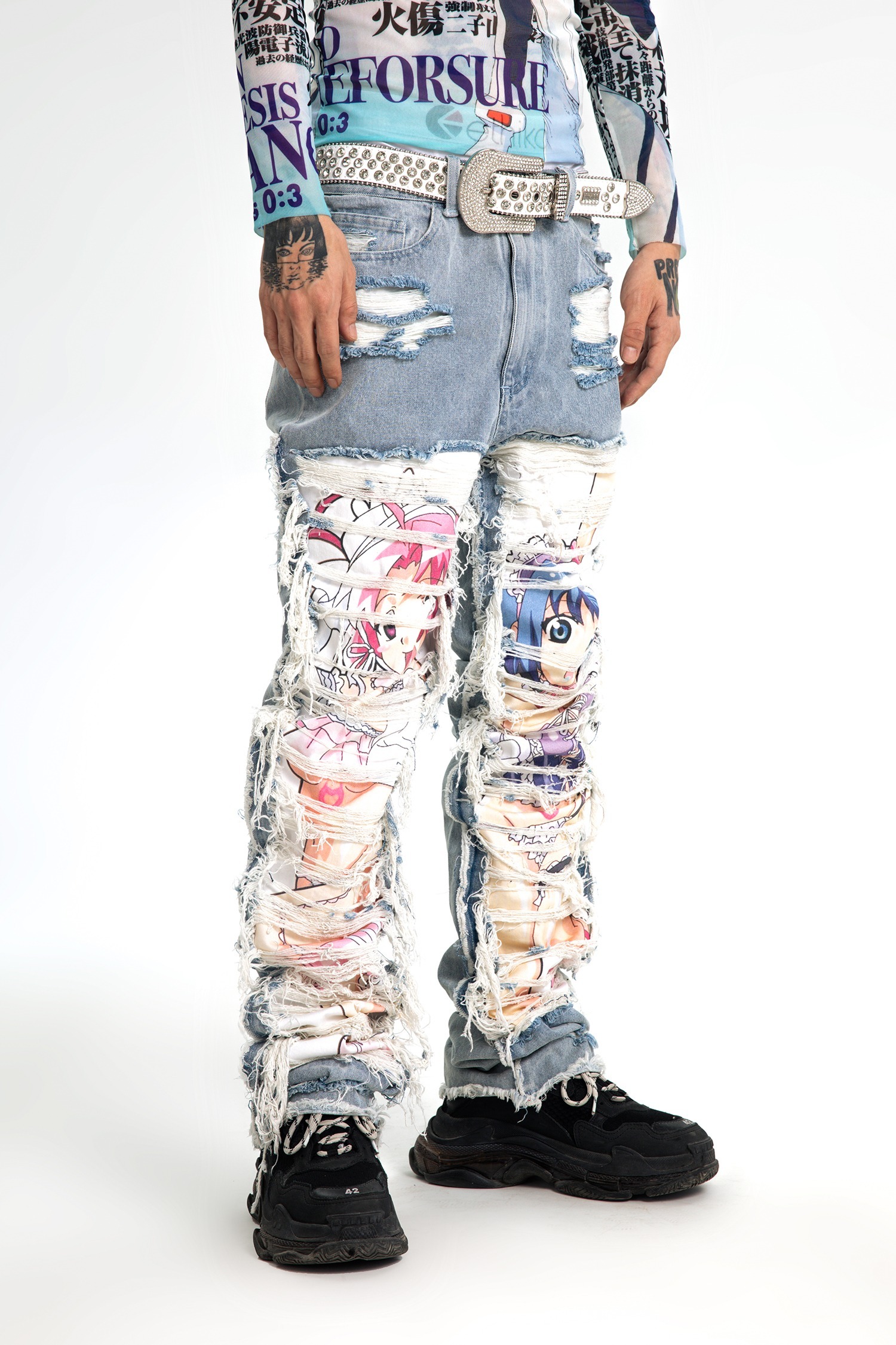 AONE4SURE x ILOVEUIHATEU anime ripped denim pants