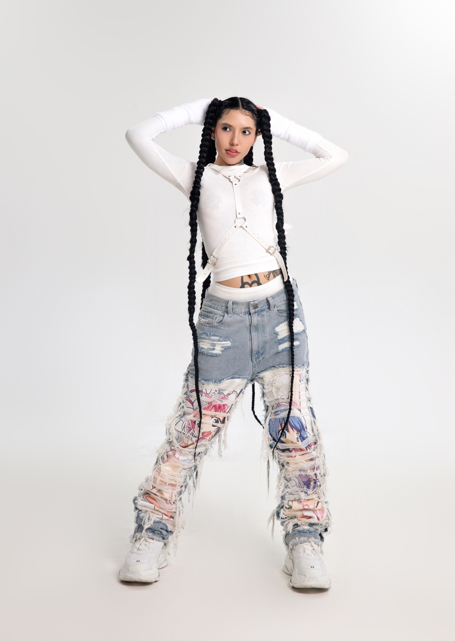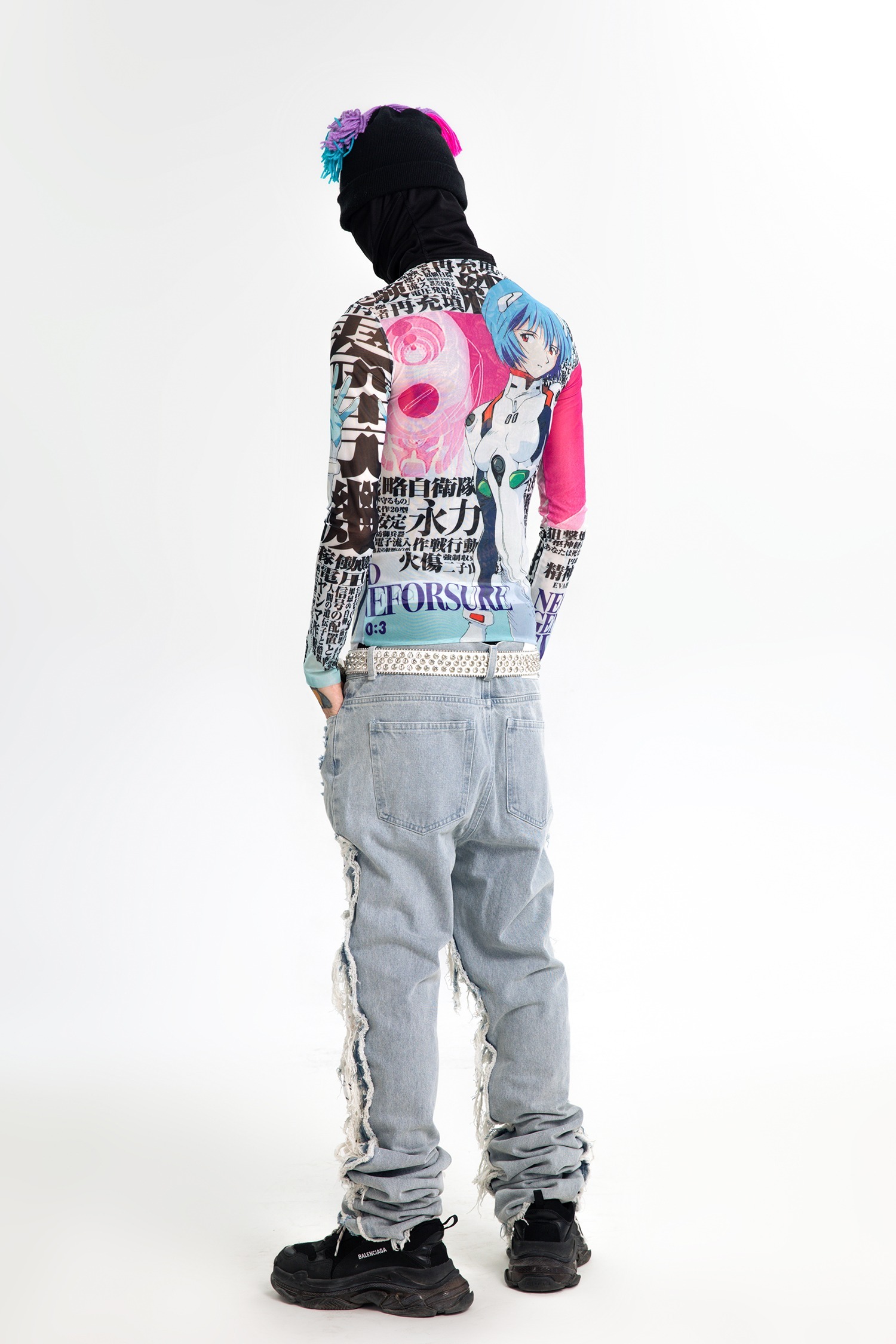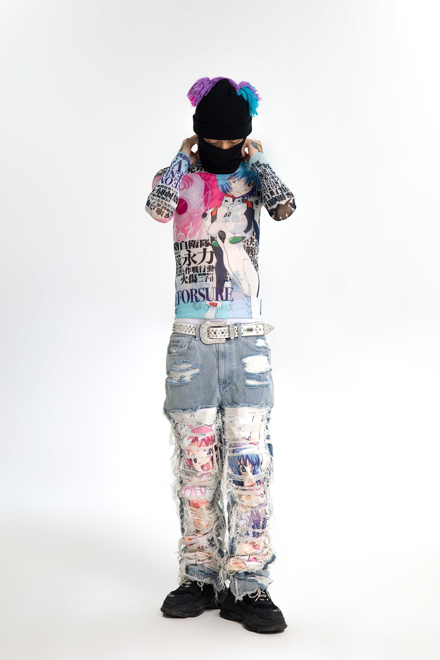 AONE4SURE x ILOVEUIHATEU anime ripped denim pants