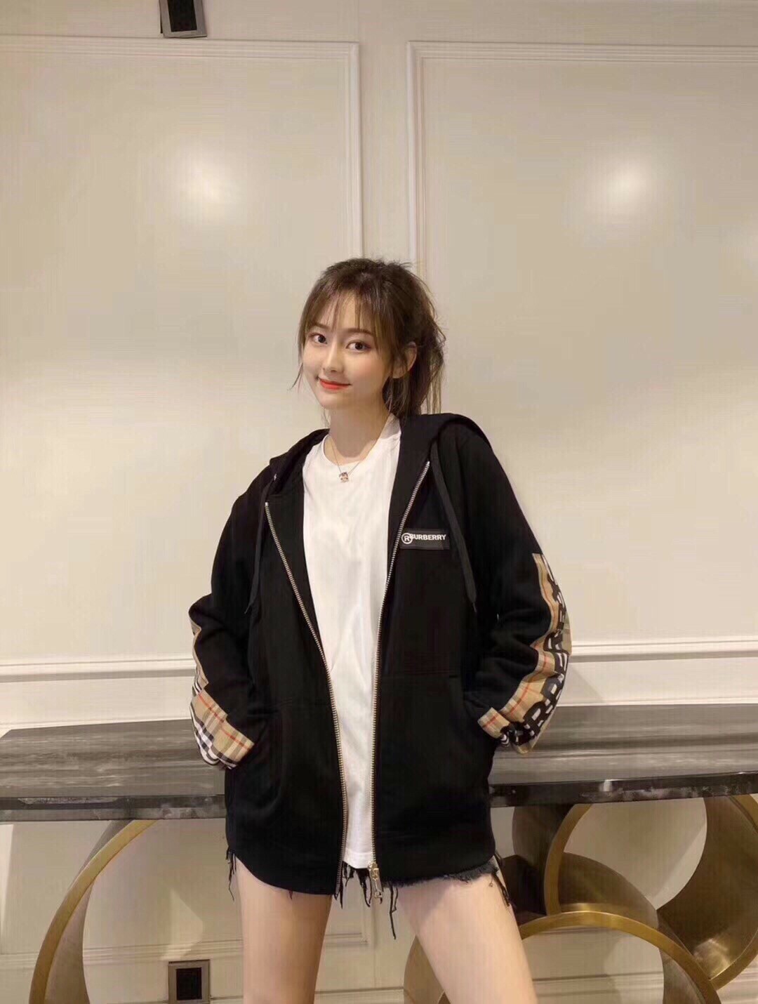 Burberry Classic Double Sleeve Check Logo Hooded Jacket