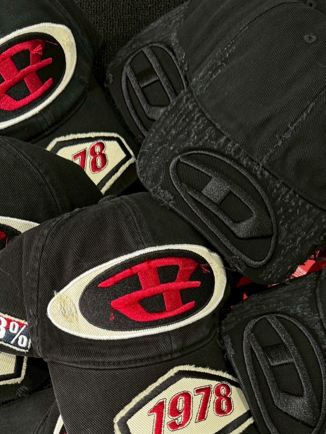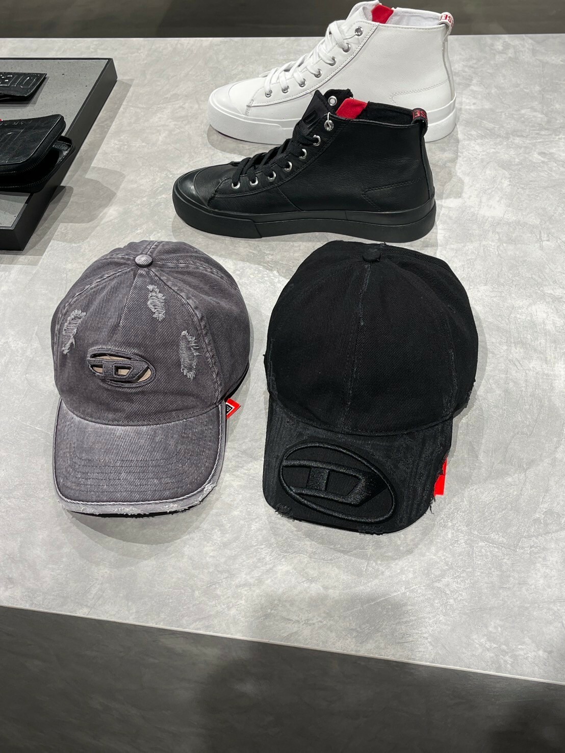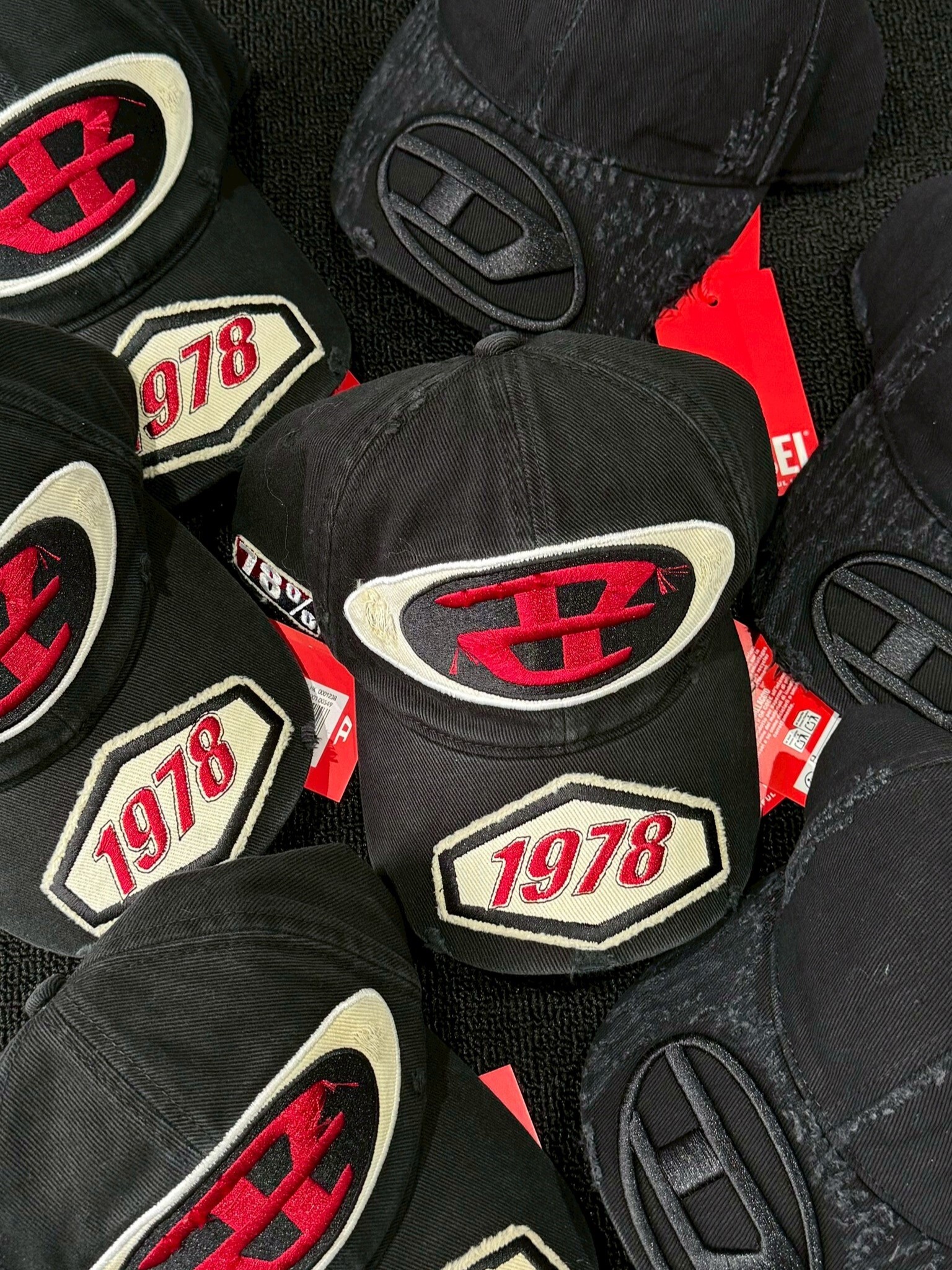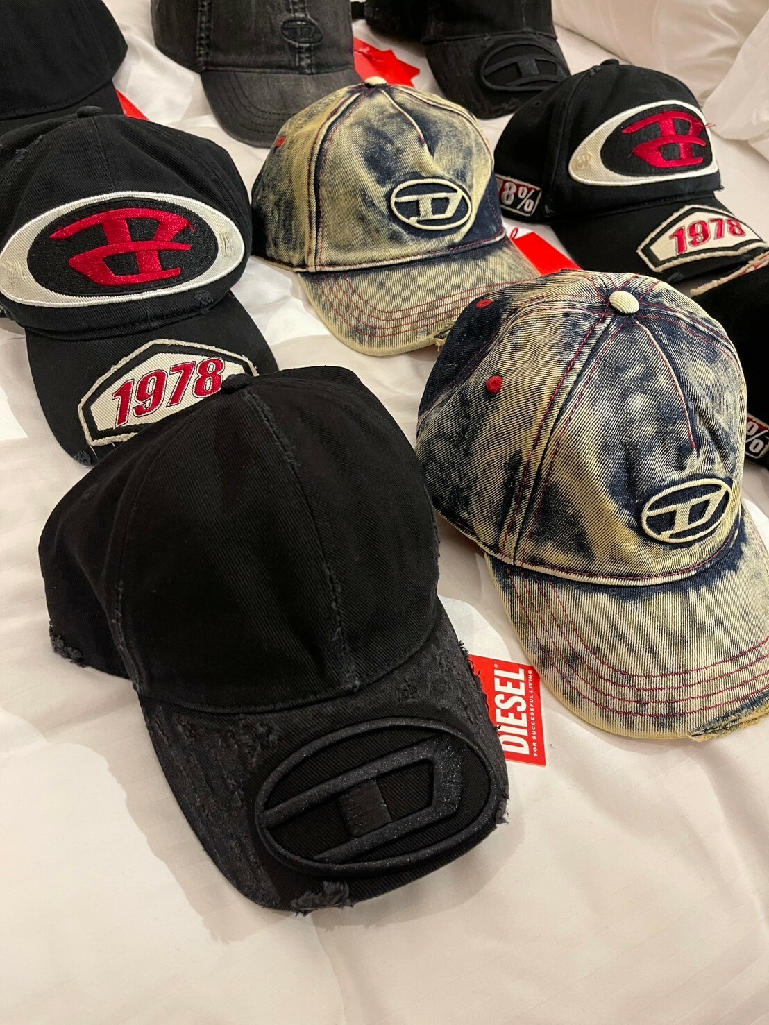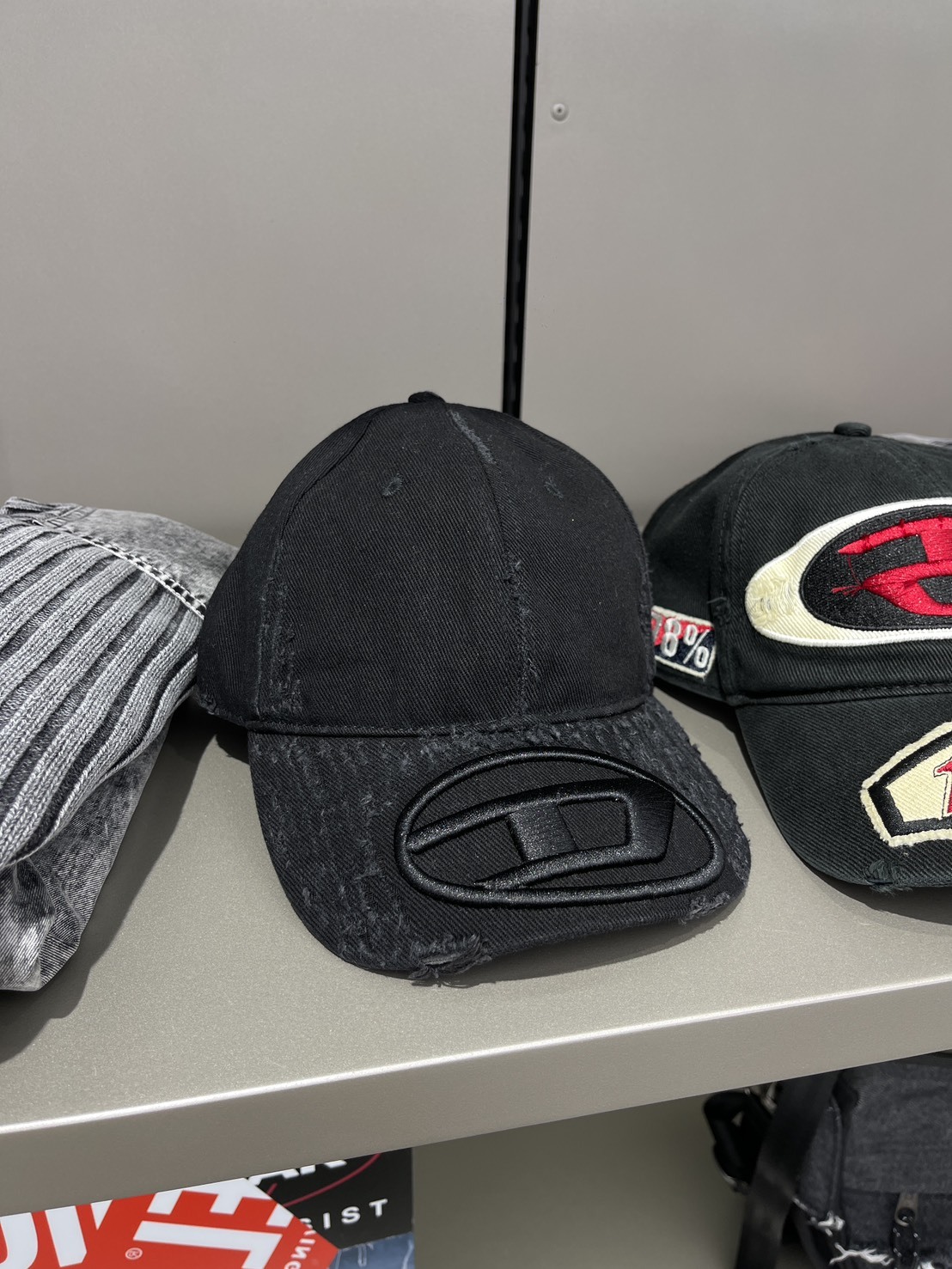 DIESEL three-dimensional embroidery D Logo black destroyed old hat