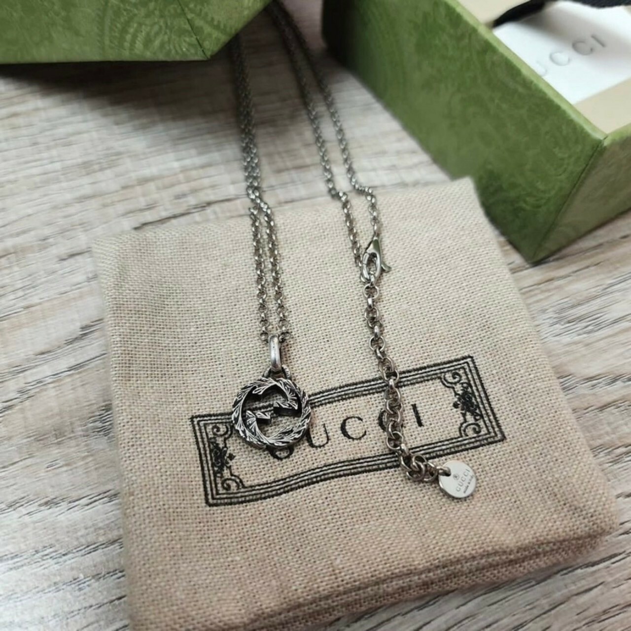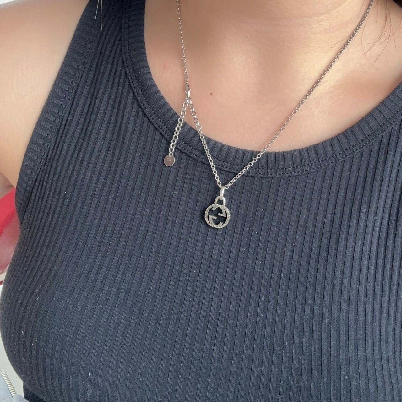 GUCCI Classic Double G Old Vintage Silver Necklace Small Style