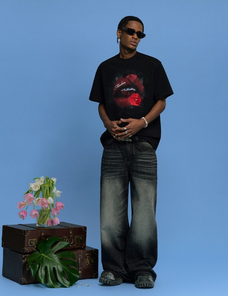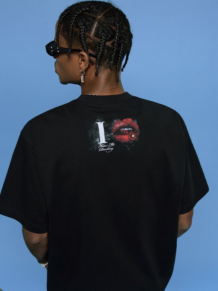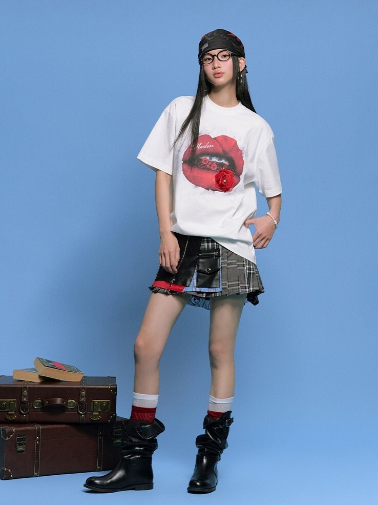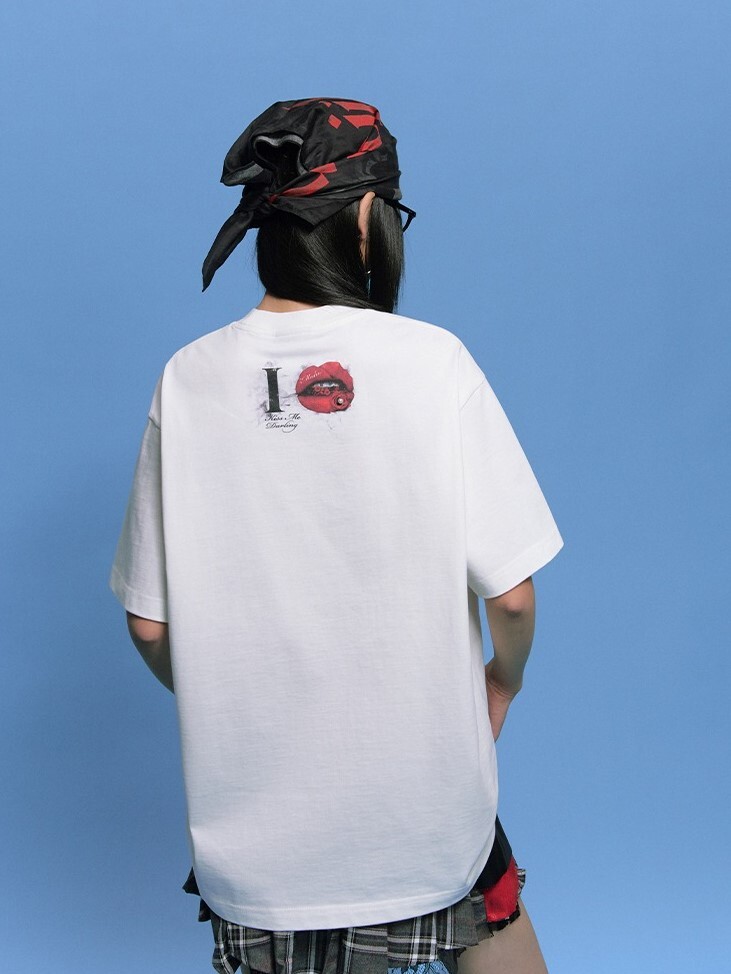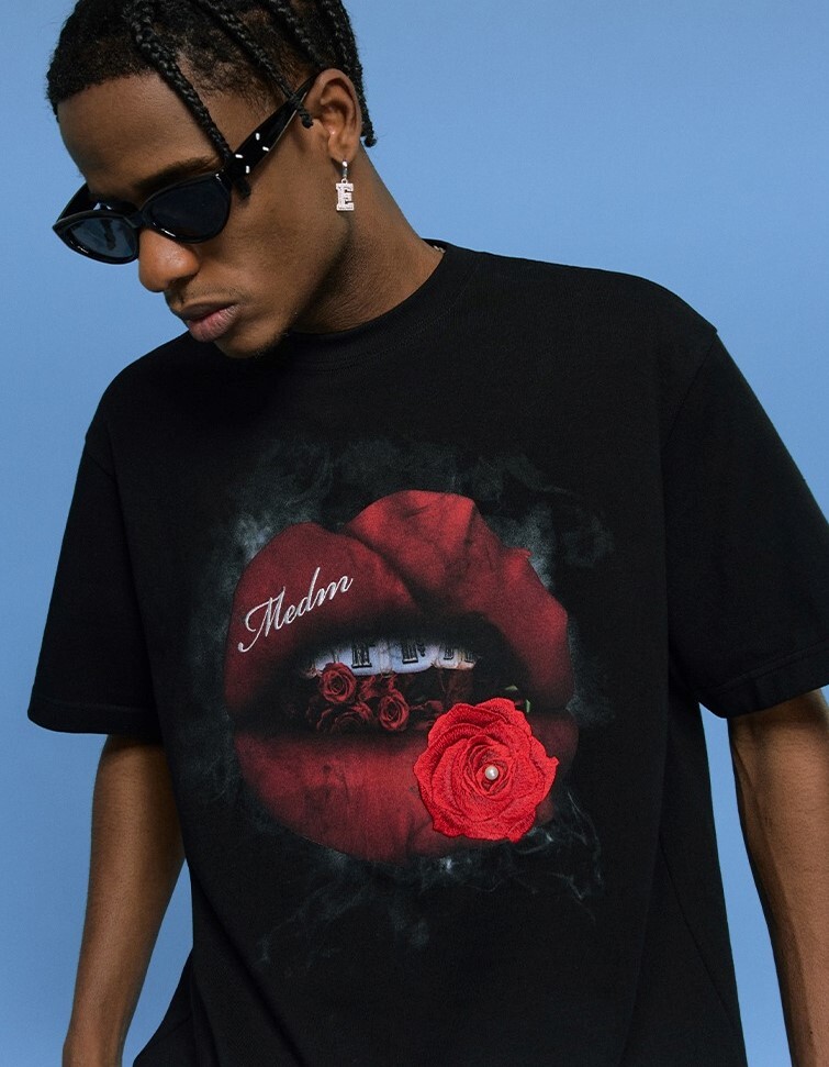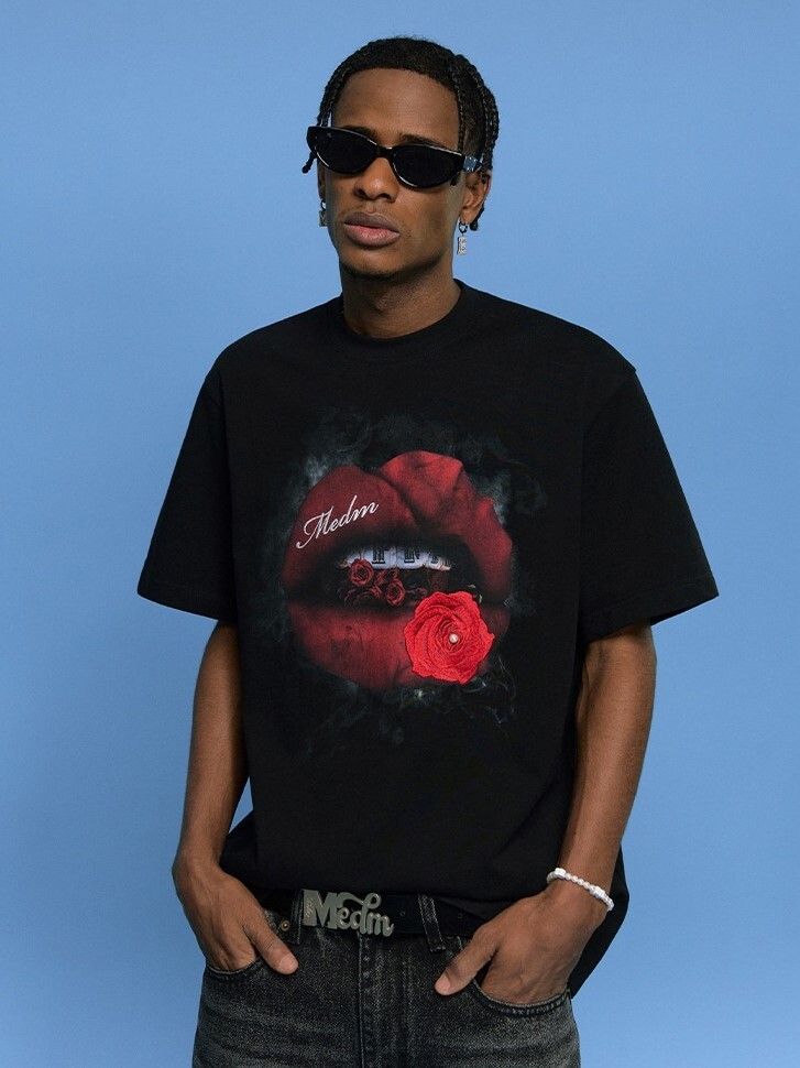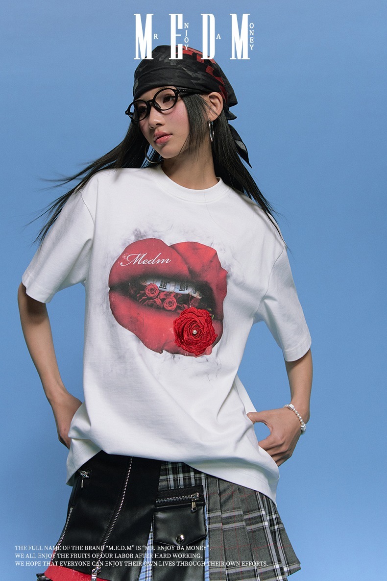 MEDM Rose Red Lips Pearl Short Sleeve T