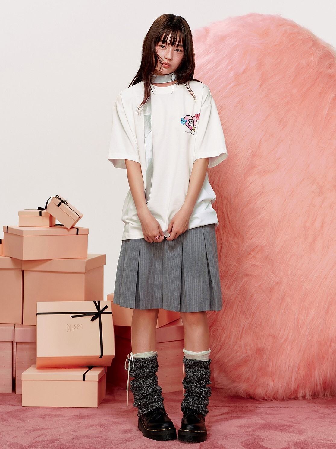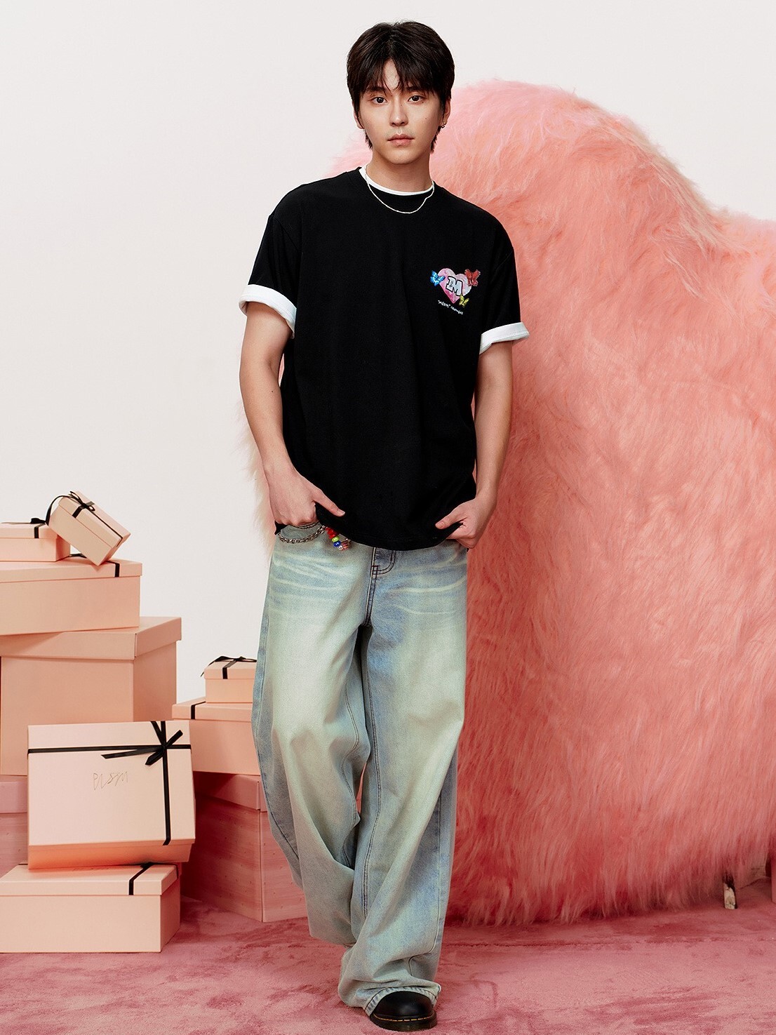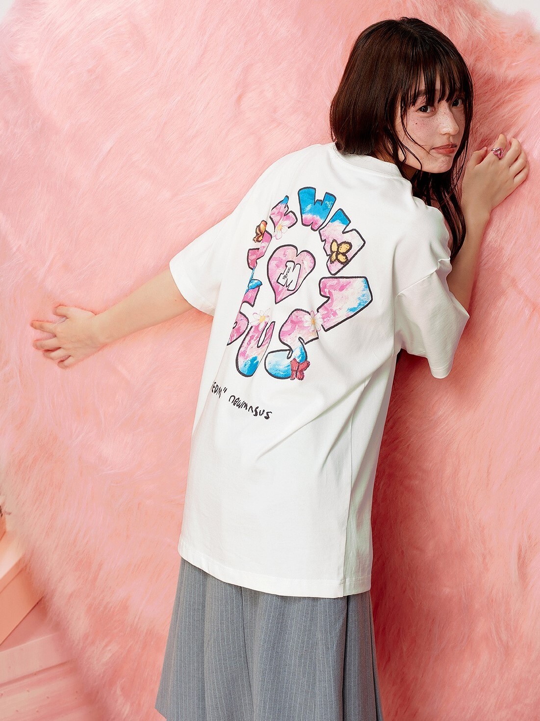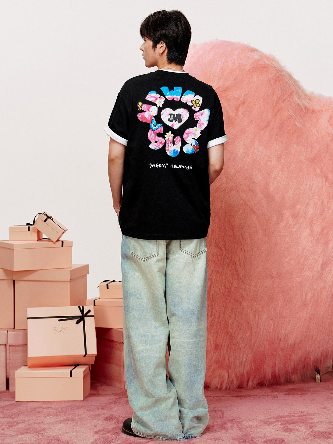 MEDM x NEWMASUS heart, butterfly, and flower-surrounded short-sleeved T-shirt