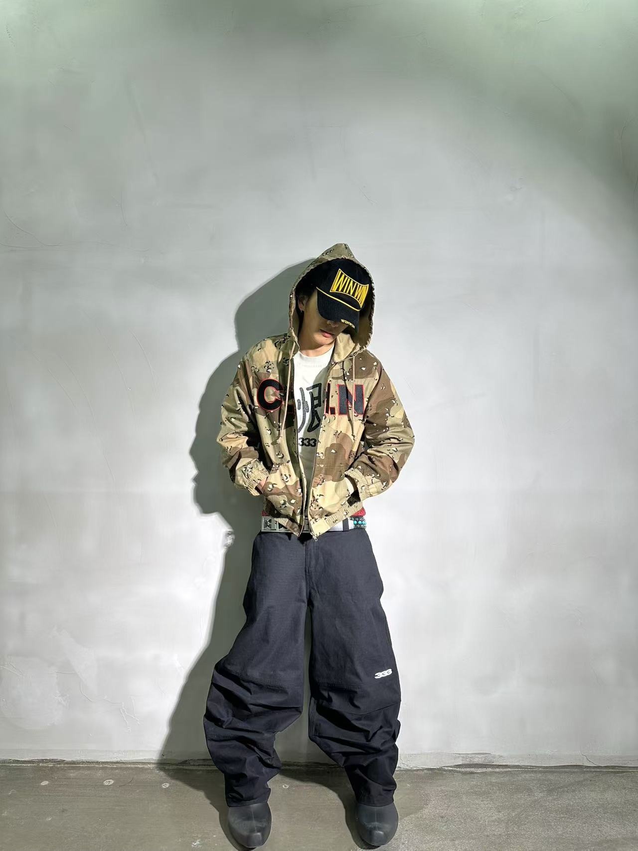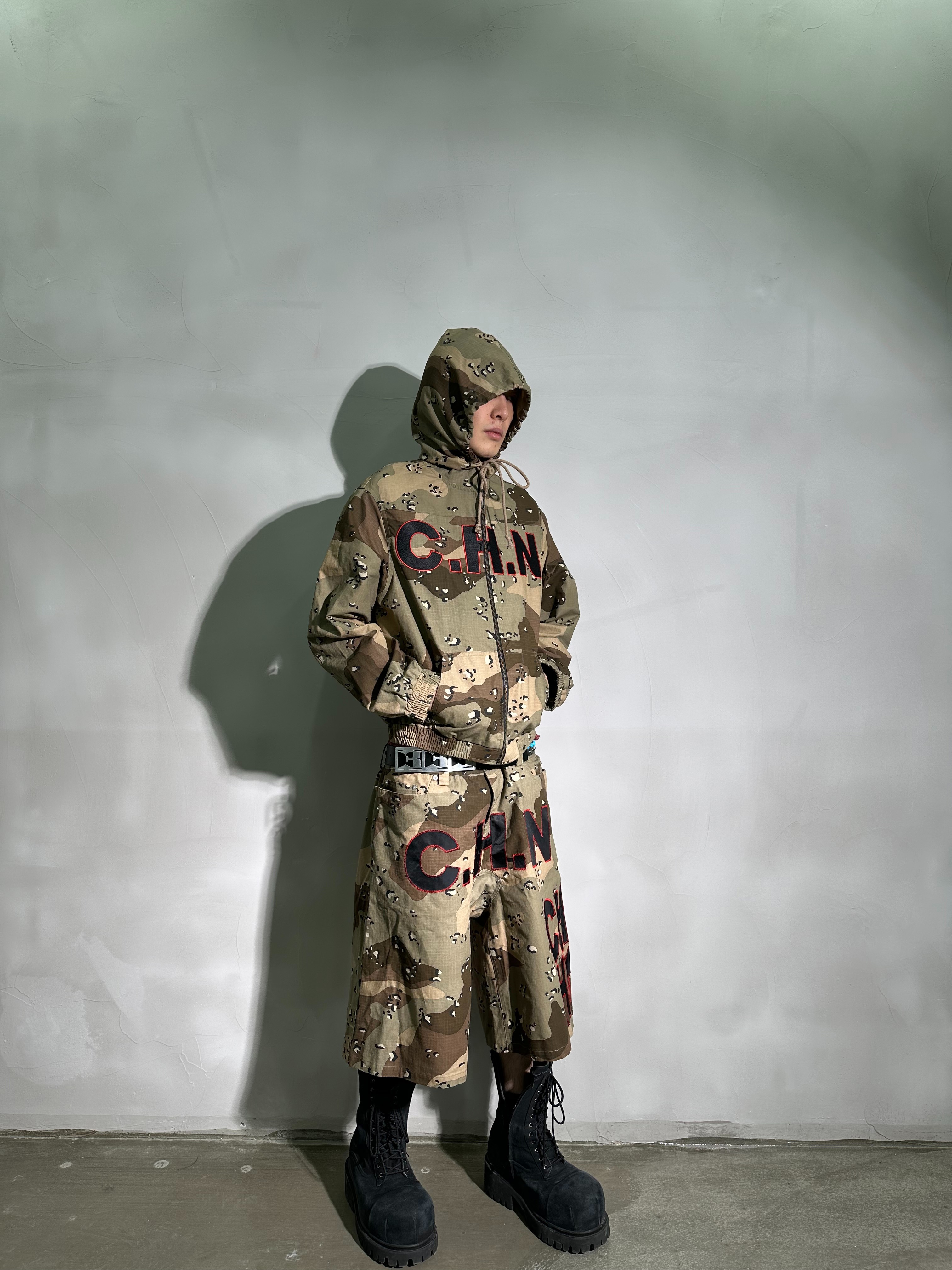 PCCVISION 3MAN0N C.H.N Desert Camouflage Patch Embroidery Hooded Zip-Up Jacket