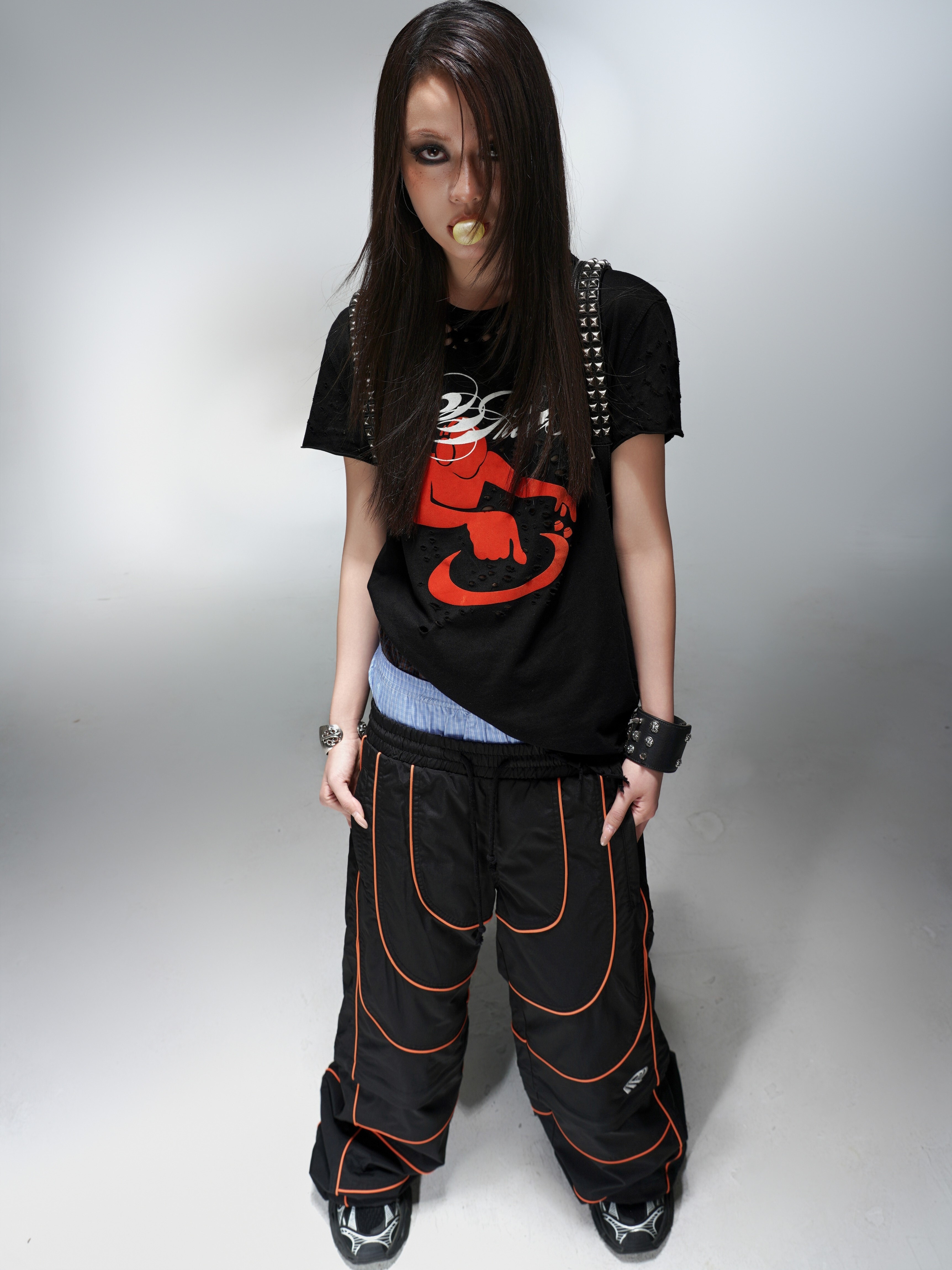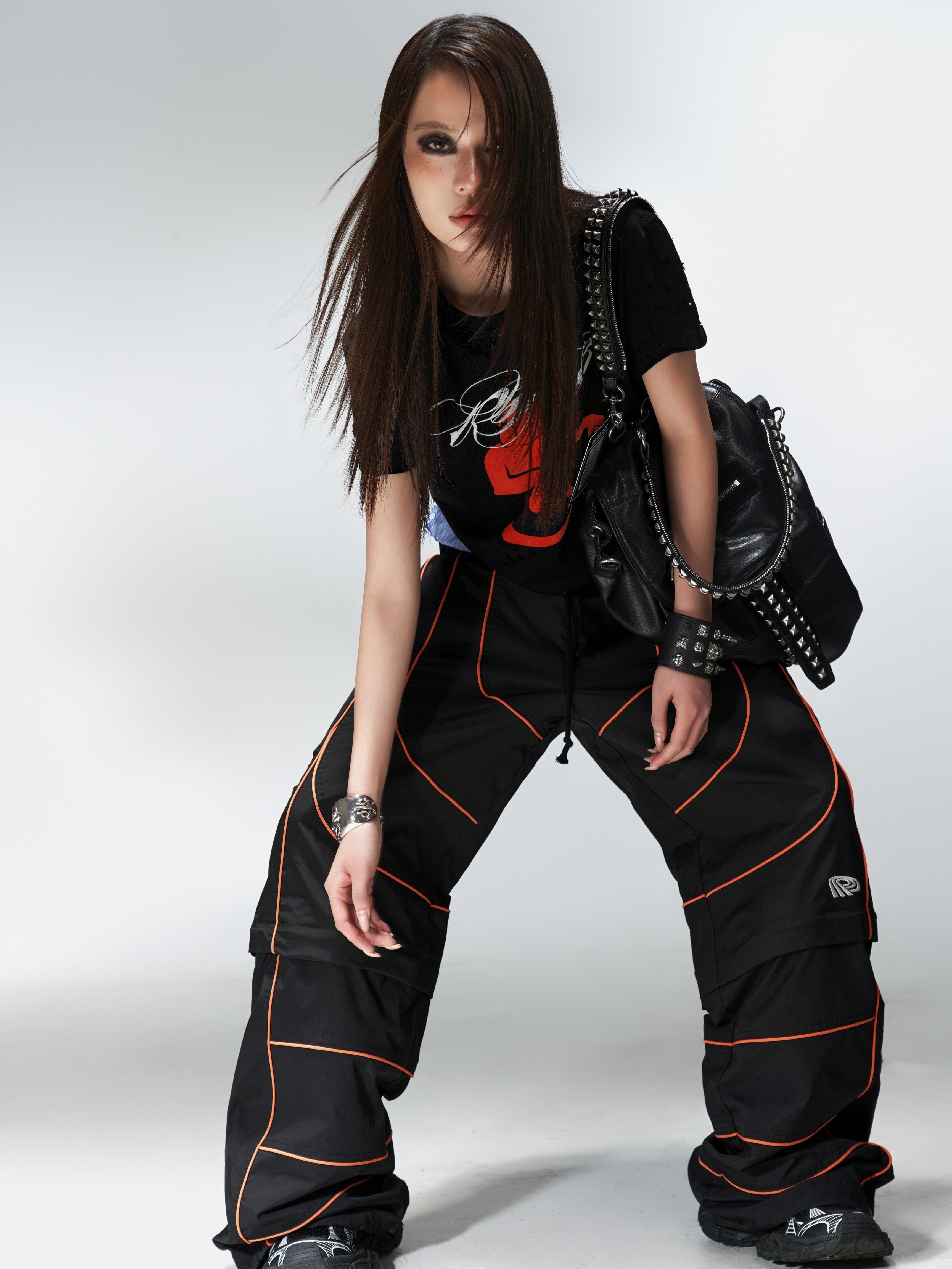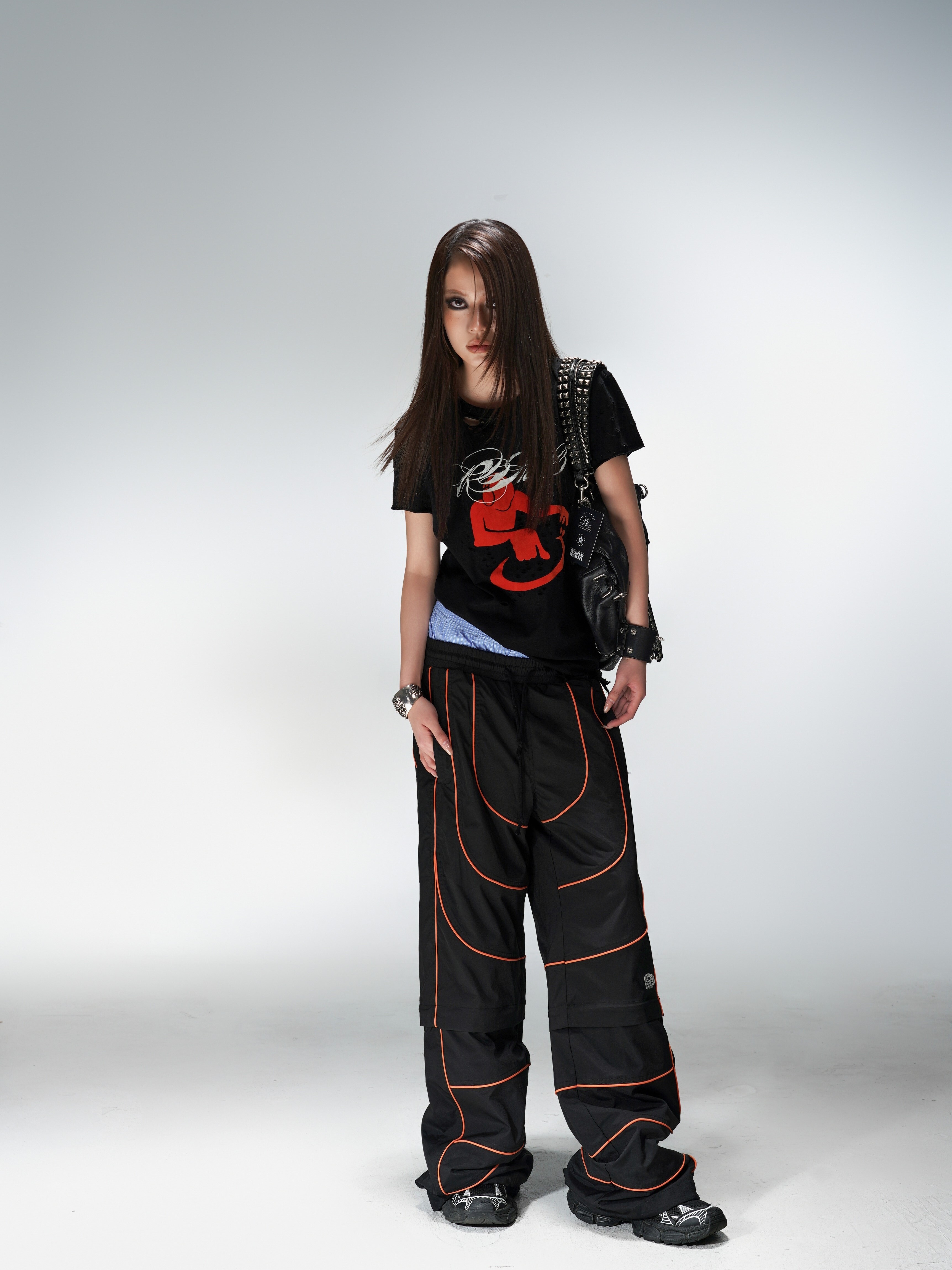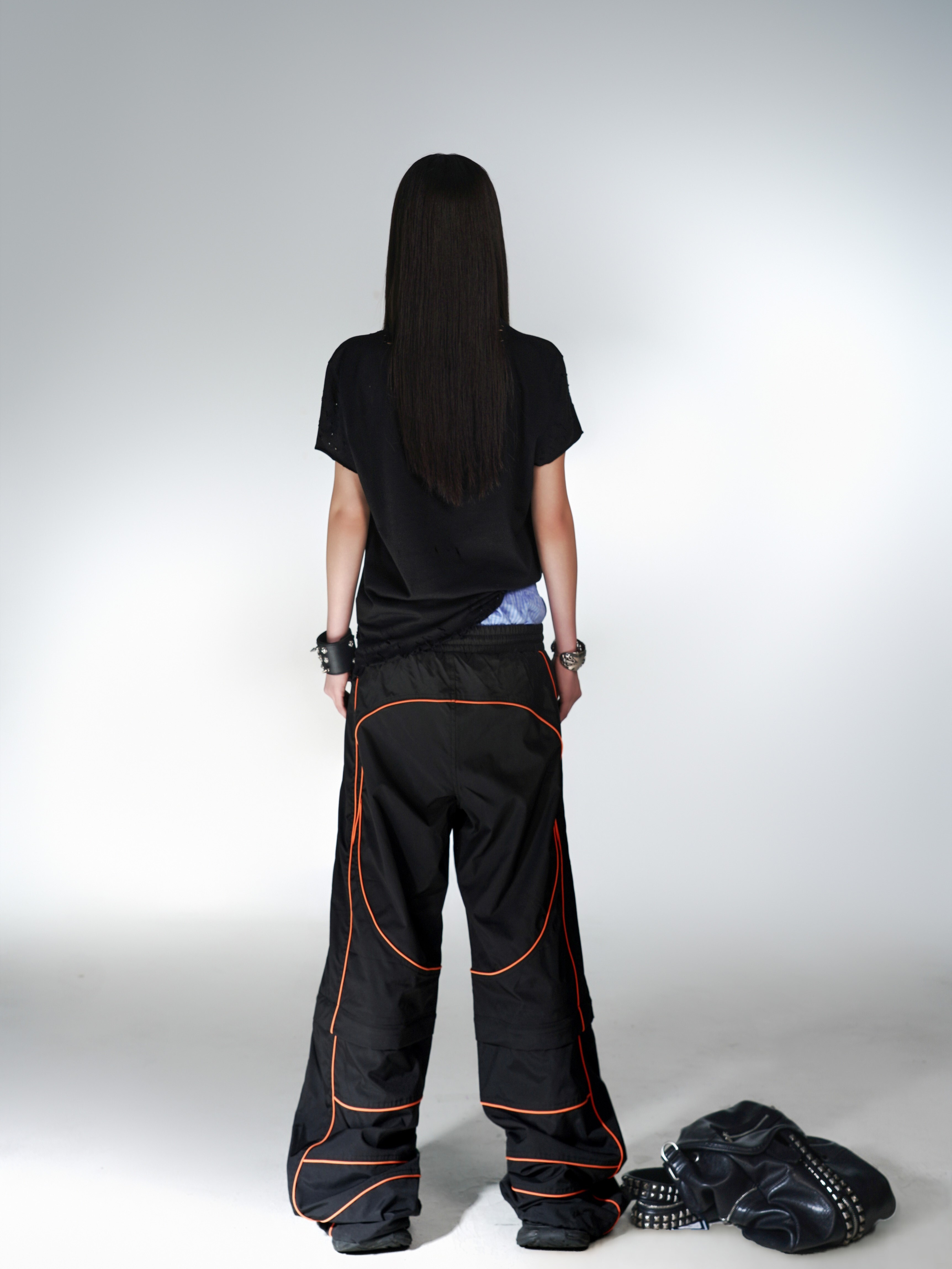 PCCVISION 3MAN0N track runway contrast stitching embroidery detachable loose sports trousers