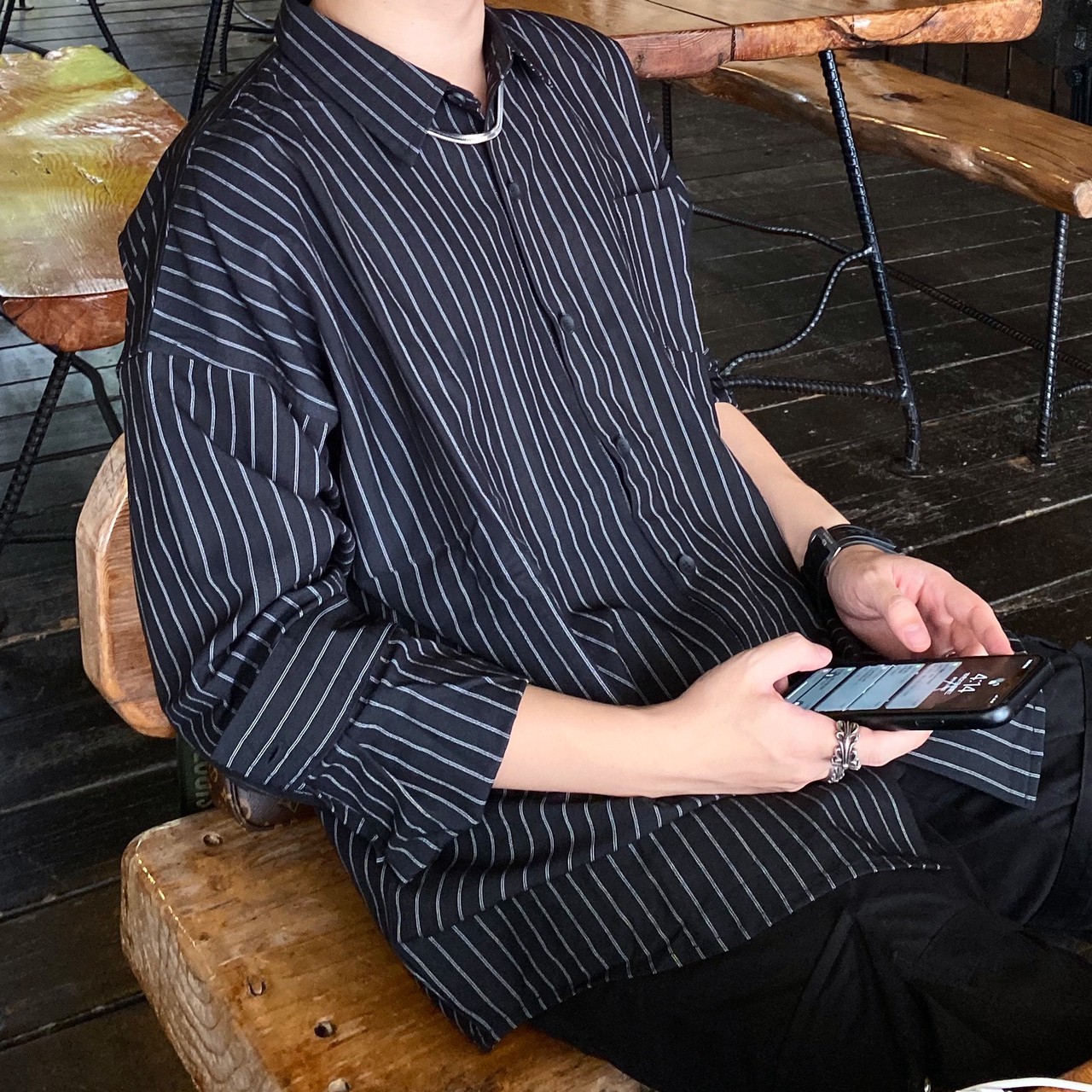 RDC STUDIOS made in Korea, straight stripe long sleeve loose shirt