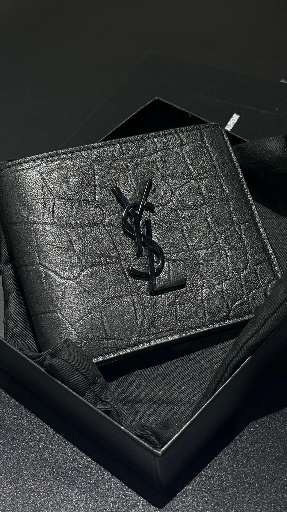 Saint Laurent crocodile pattern leather eight-card short clip