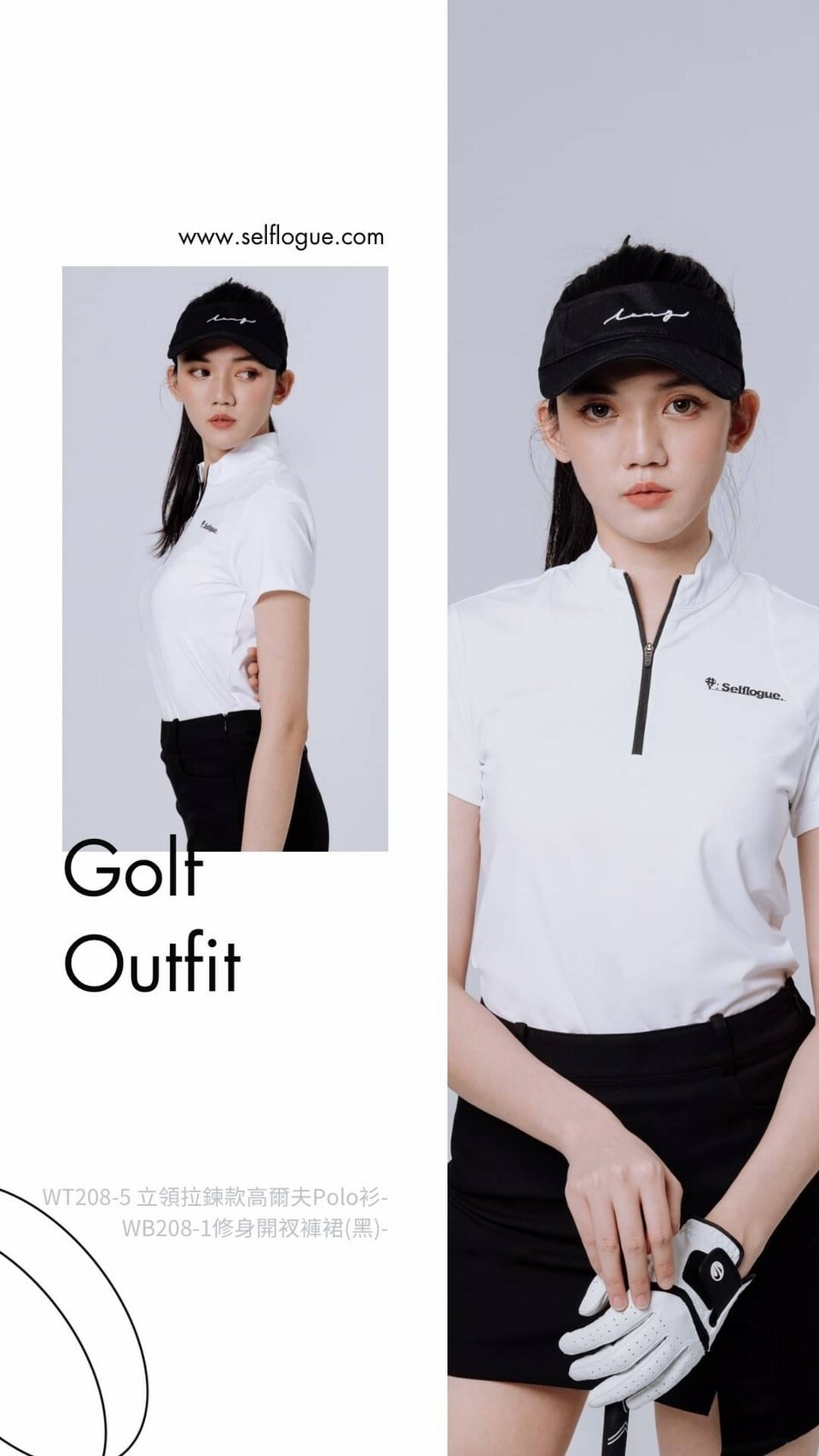 Selflogue Women's Stand Collar Zip Golf Polo