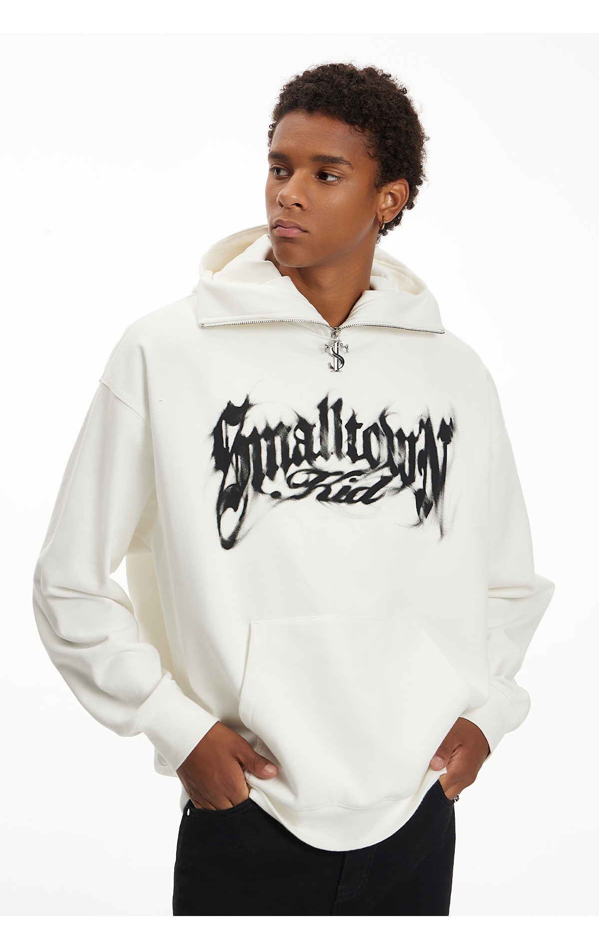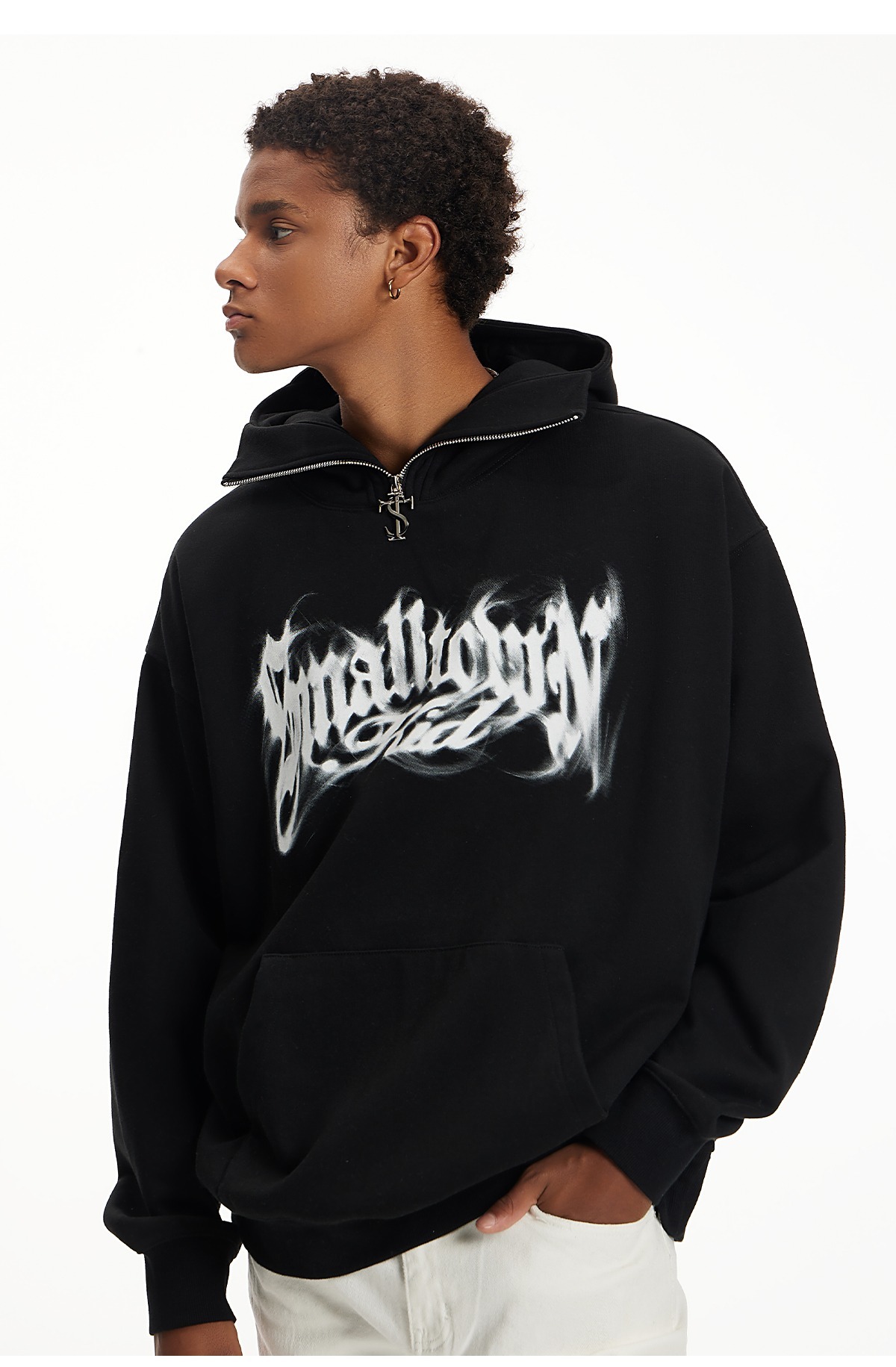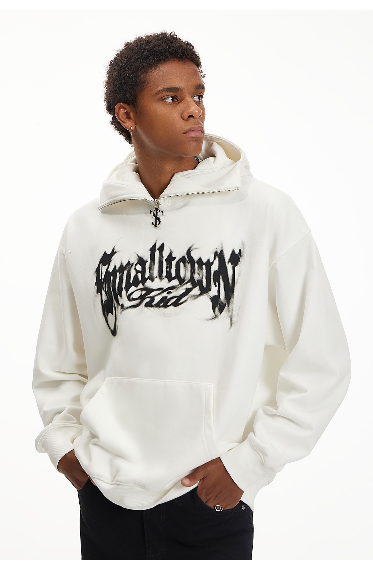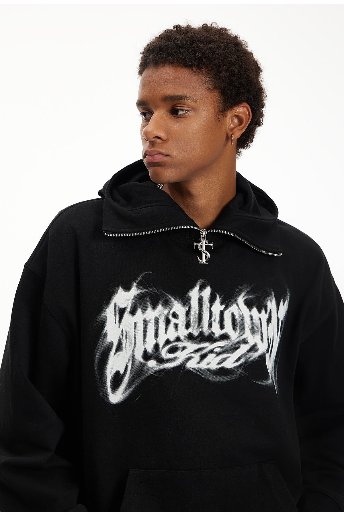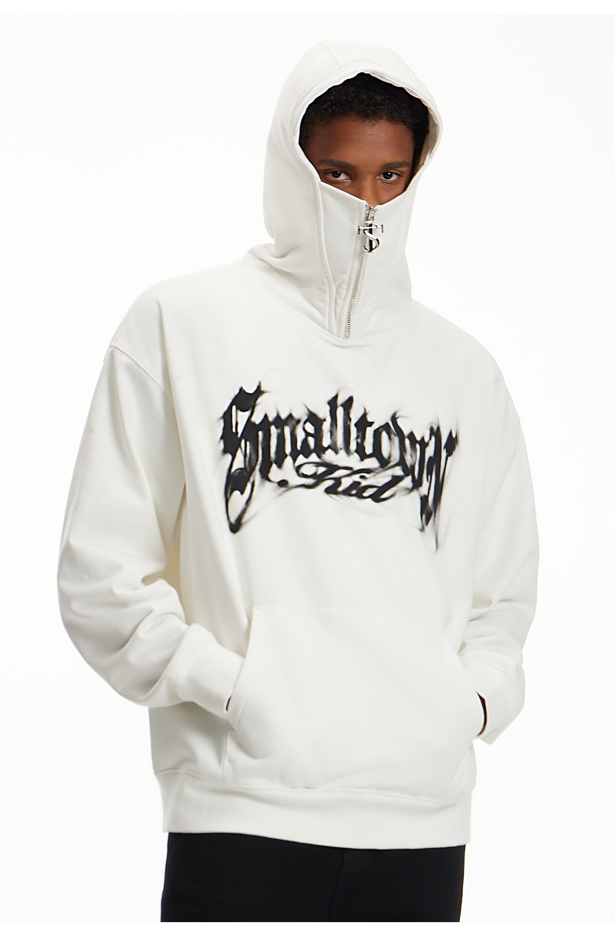 STK SmallTownKid LOGO zipper smoke font high collar T