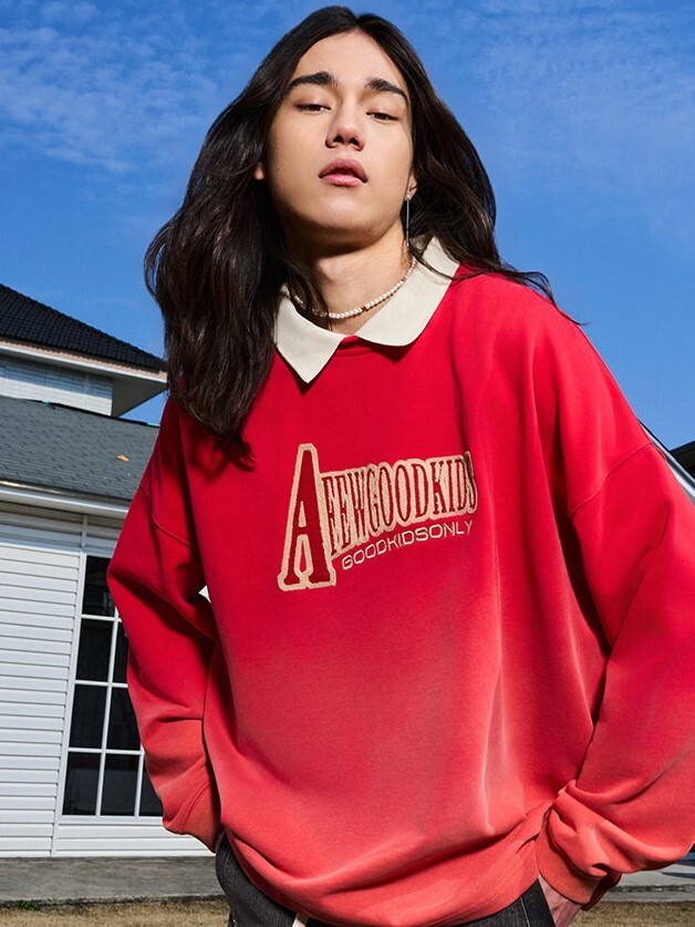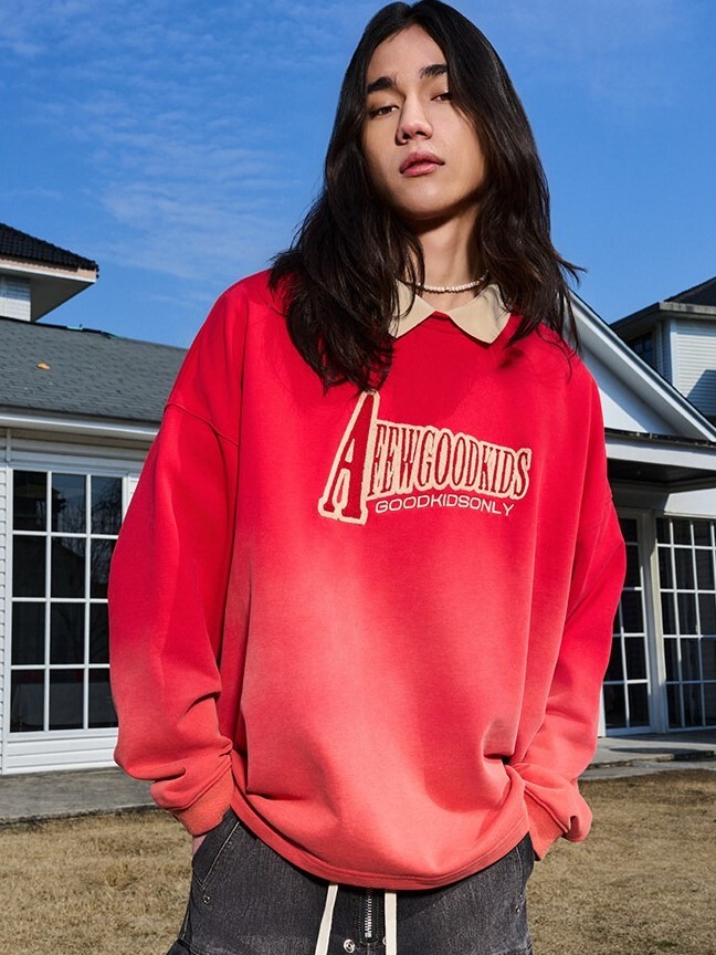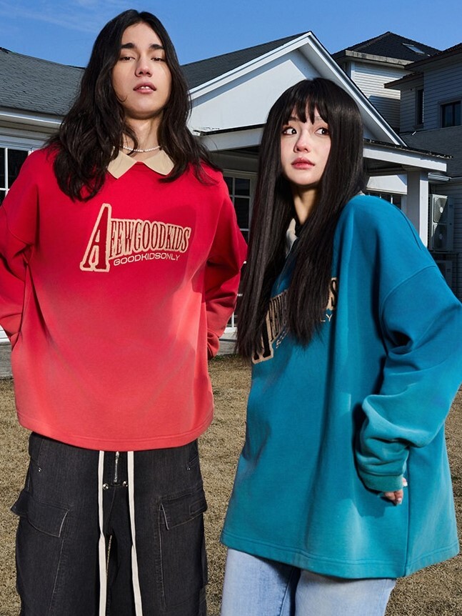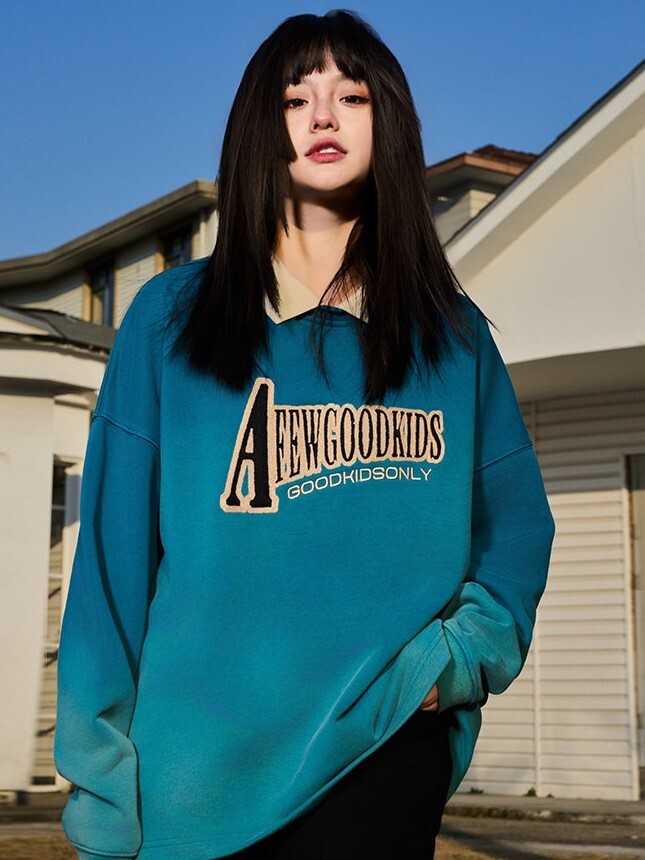 AFGK 漸變POLO領寬鬆大學T A FEW GOOD KIDS