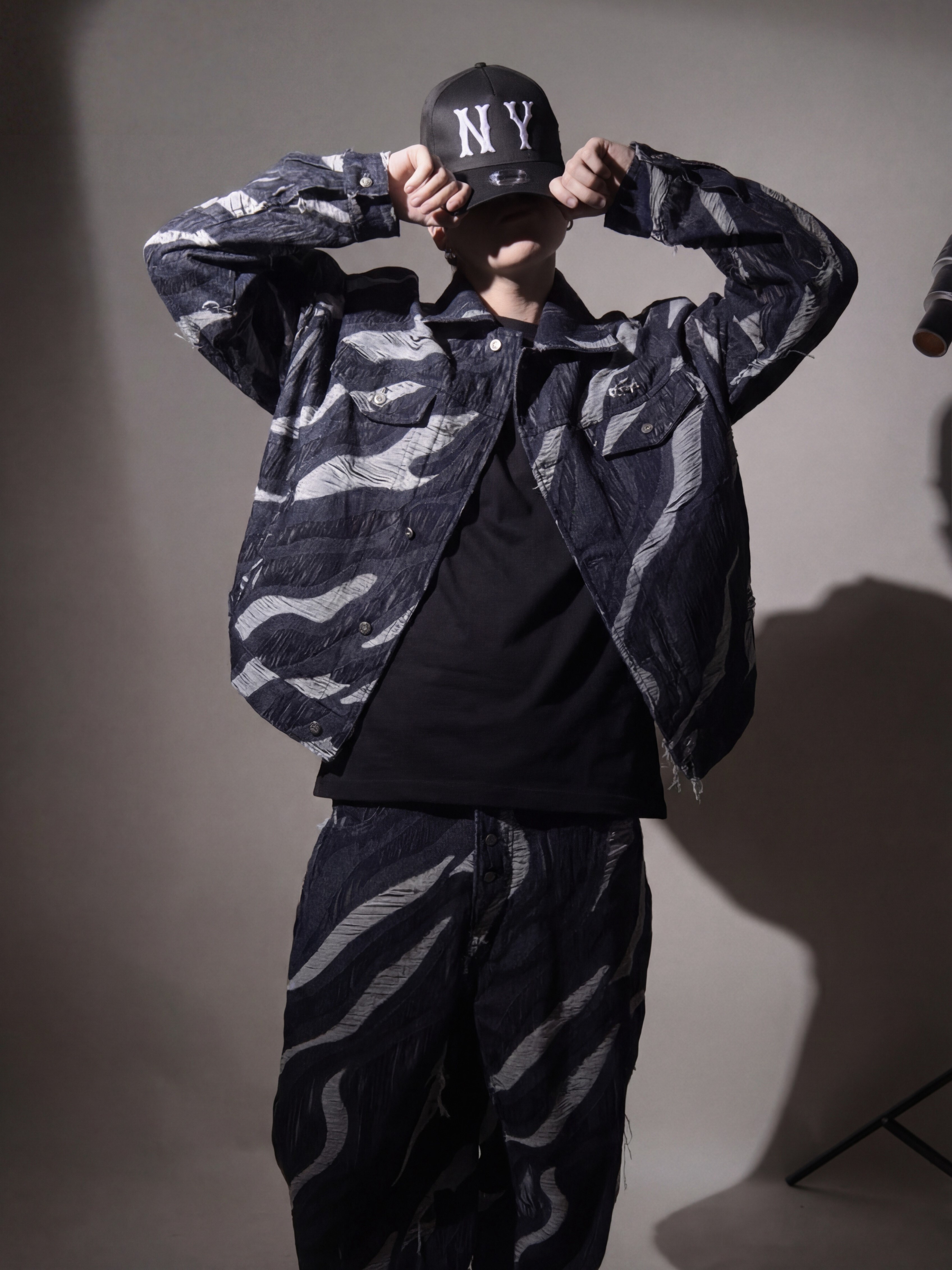 ETERNAL 金屬Logo 黑色滿版虎紋破壞 抽鬚短版牛仔外套 夾克 Lil Pump實著款