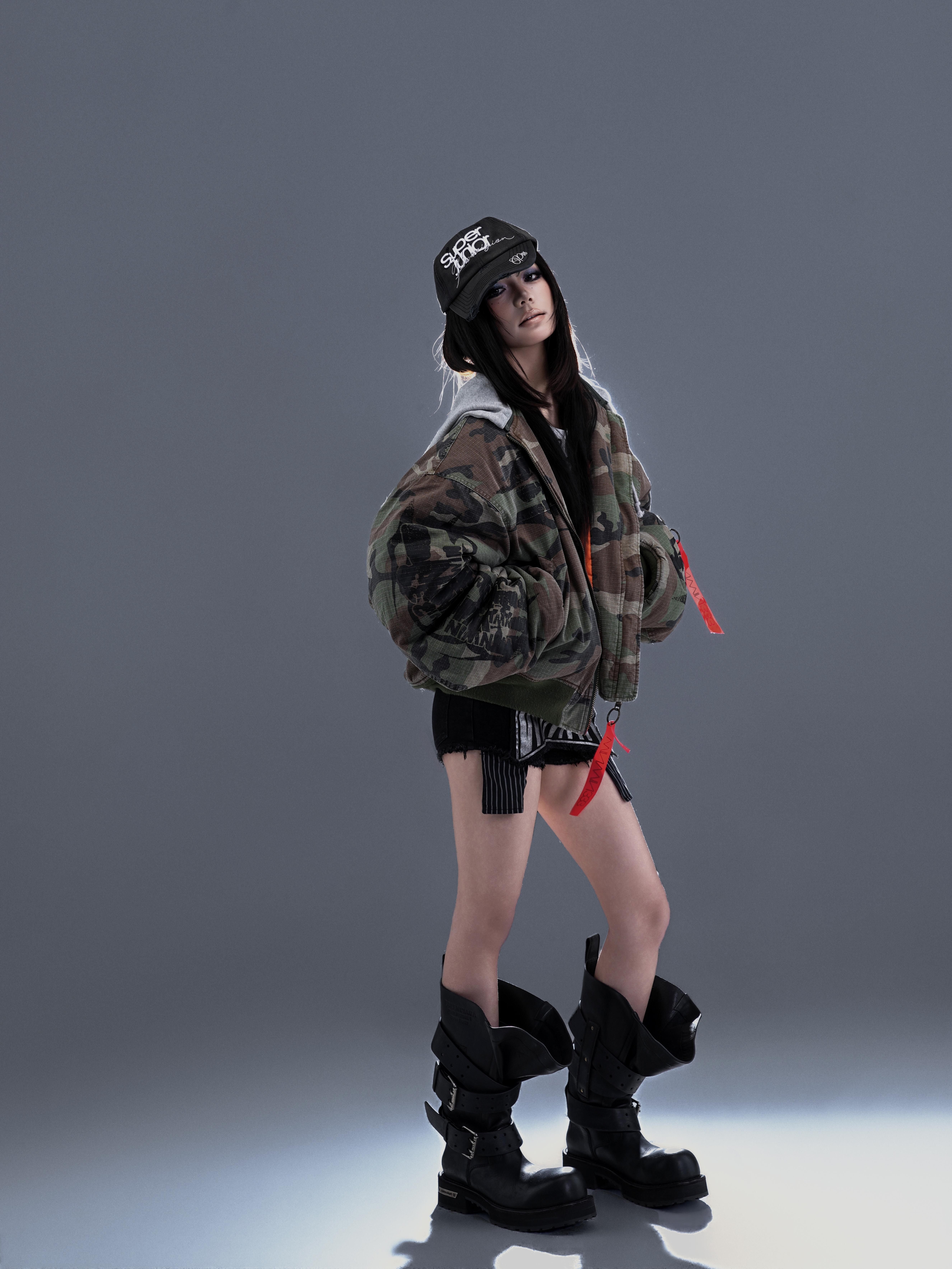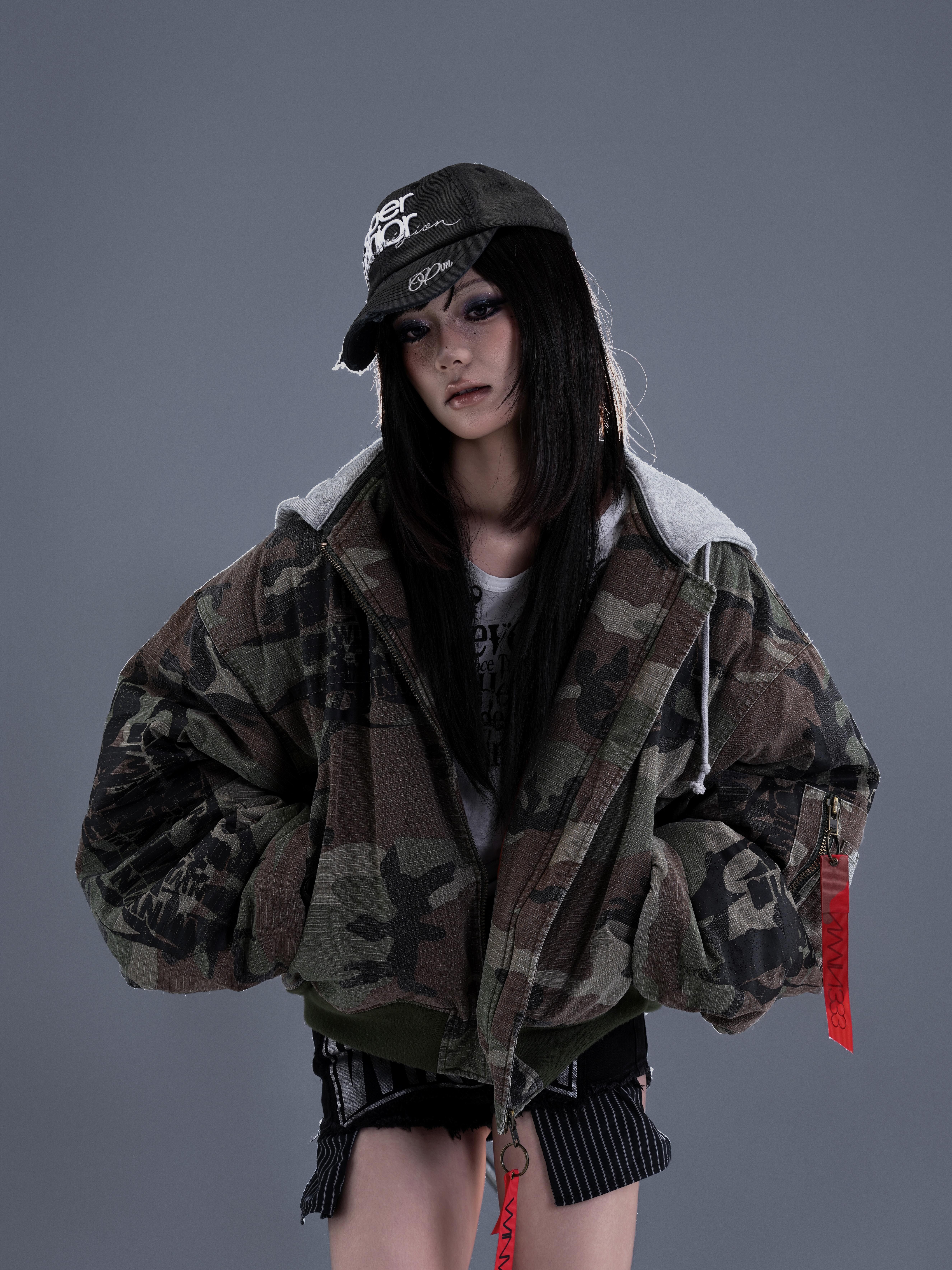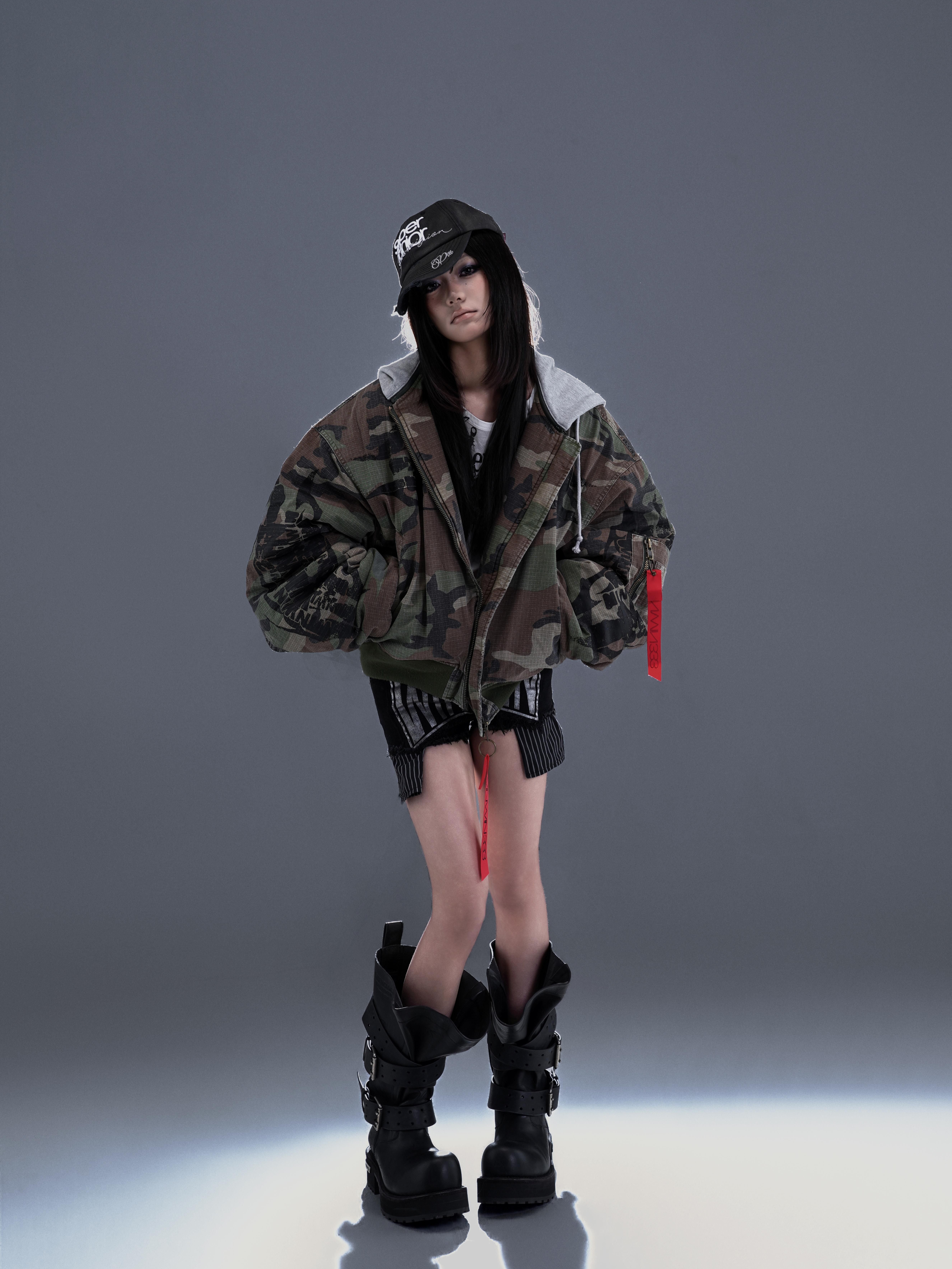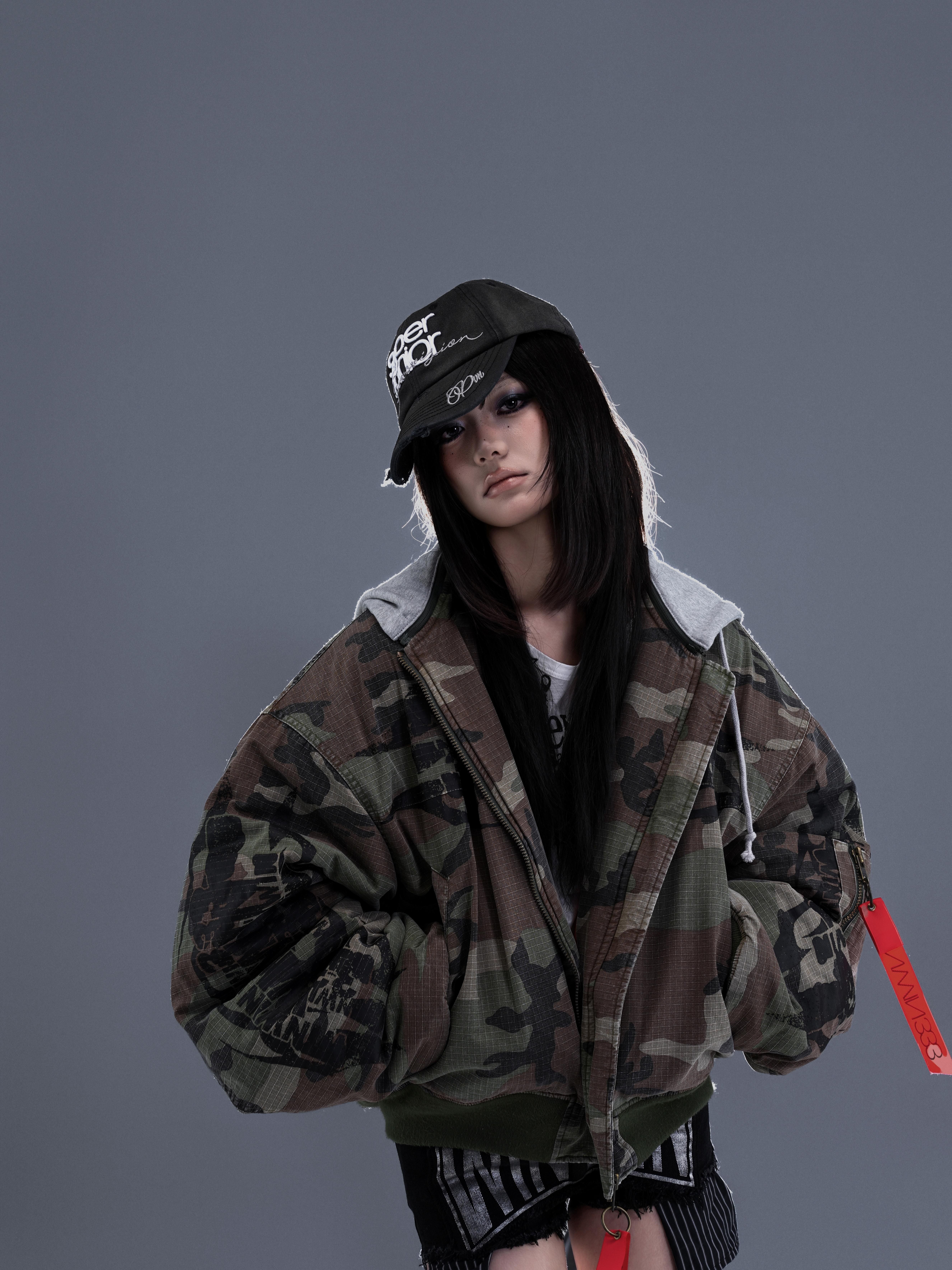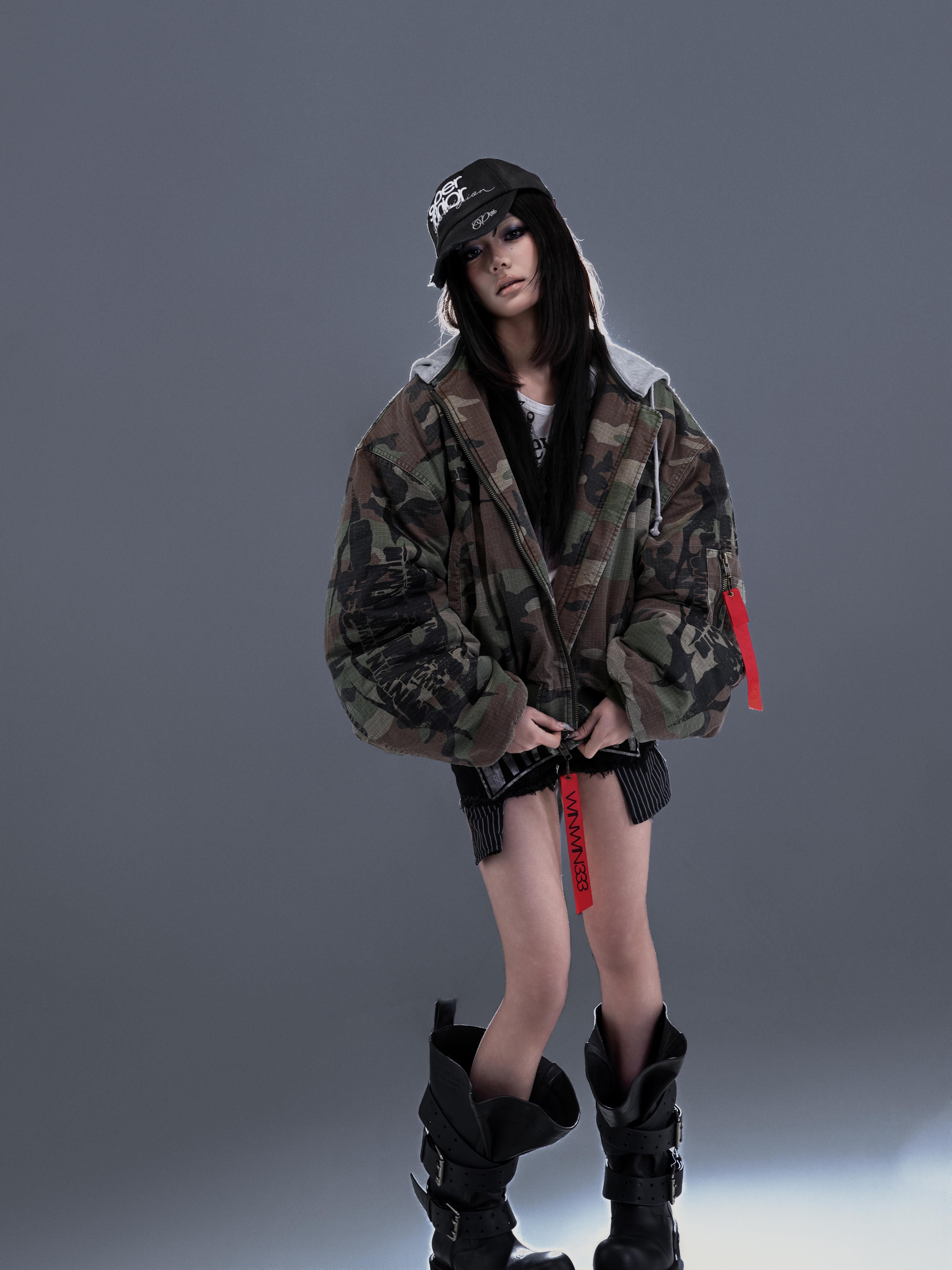 PCCVISION 3MAN0N 印花 迷彩做舊 可拆式連帽 短版外套