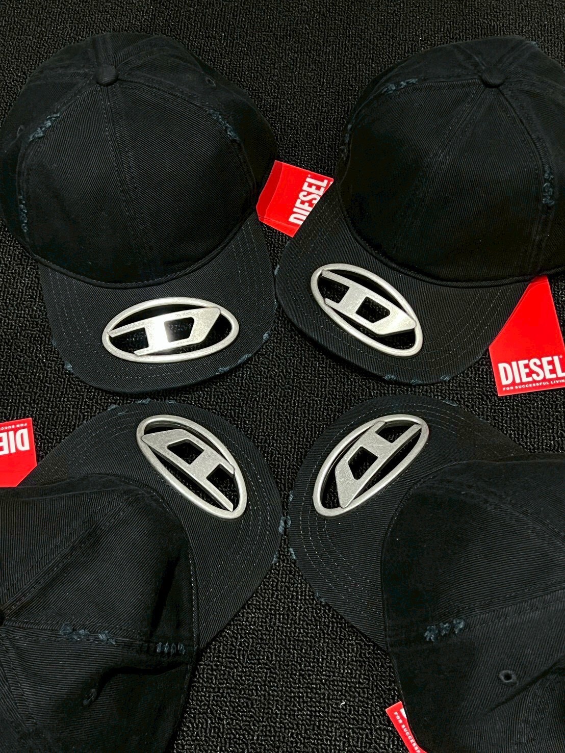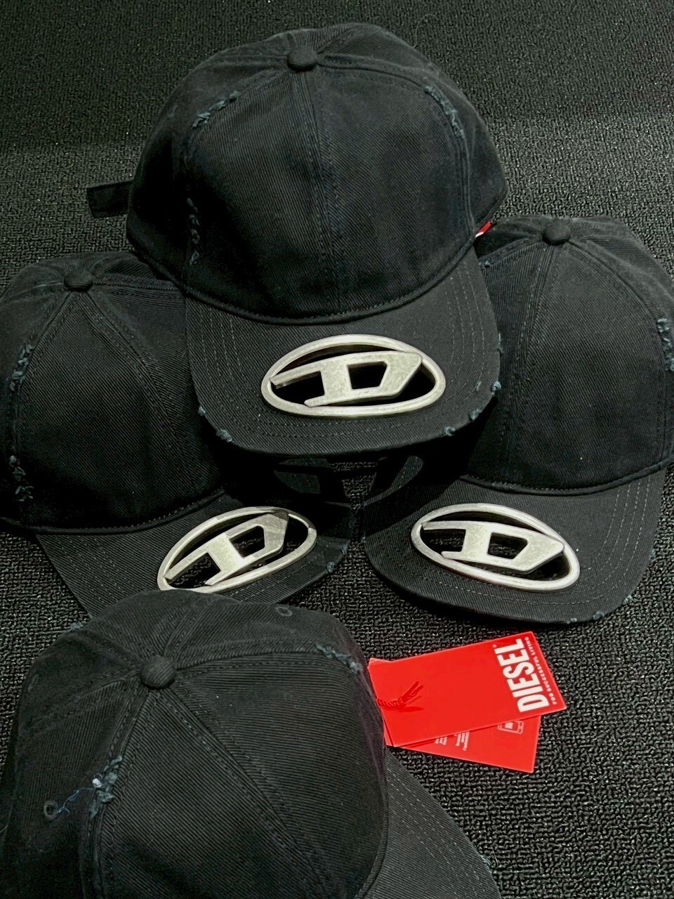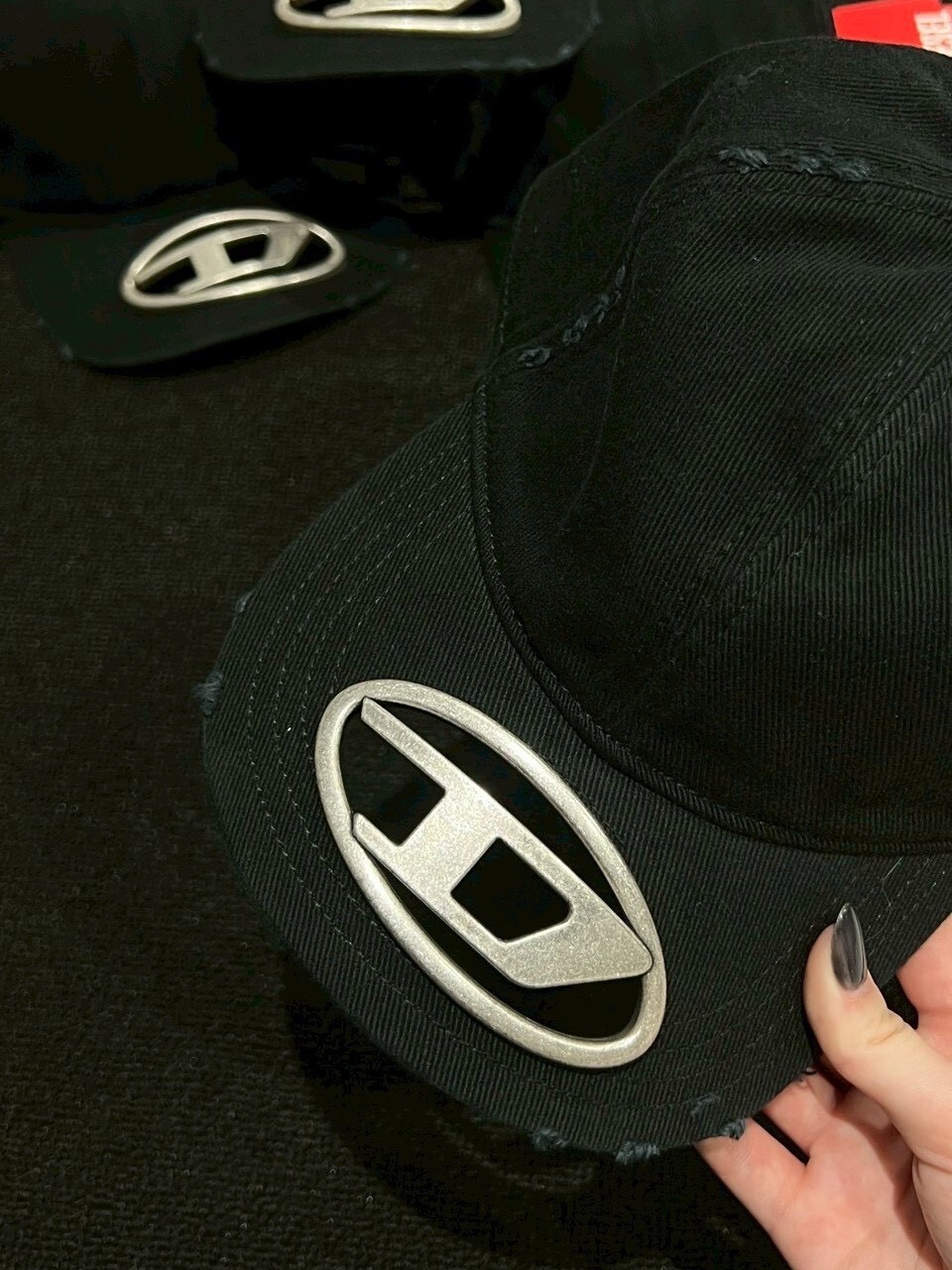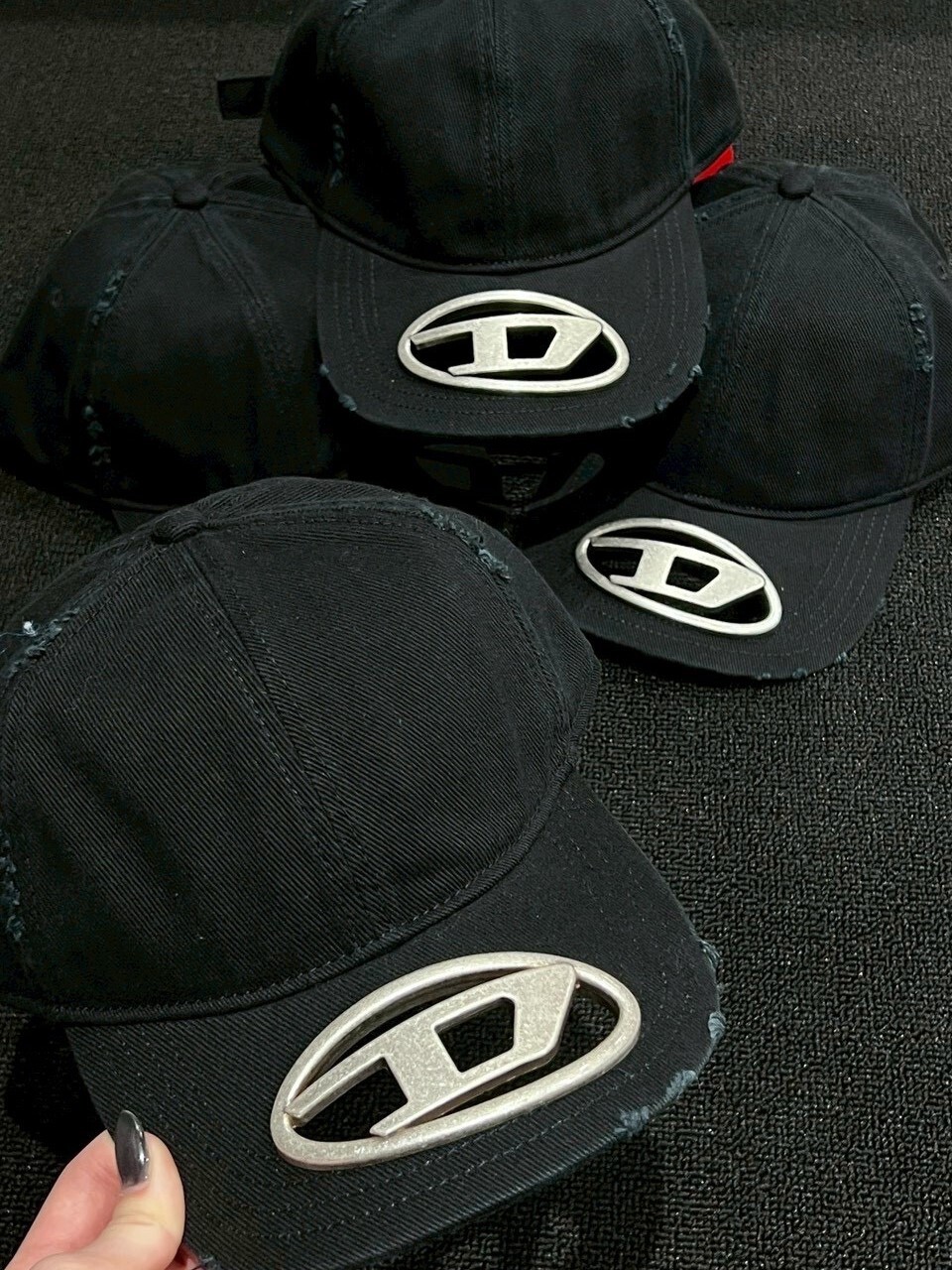 現貨6折 DIESEL 份量款金屬D Logo 黑色破壞老帽
