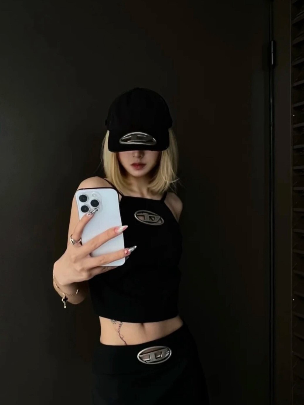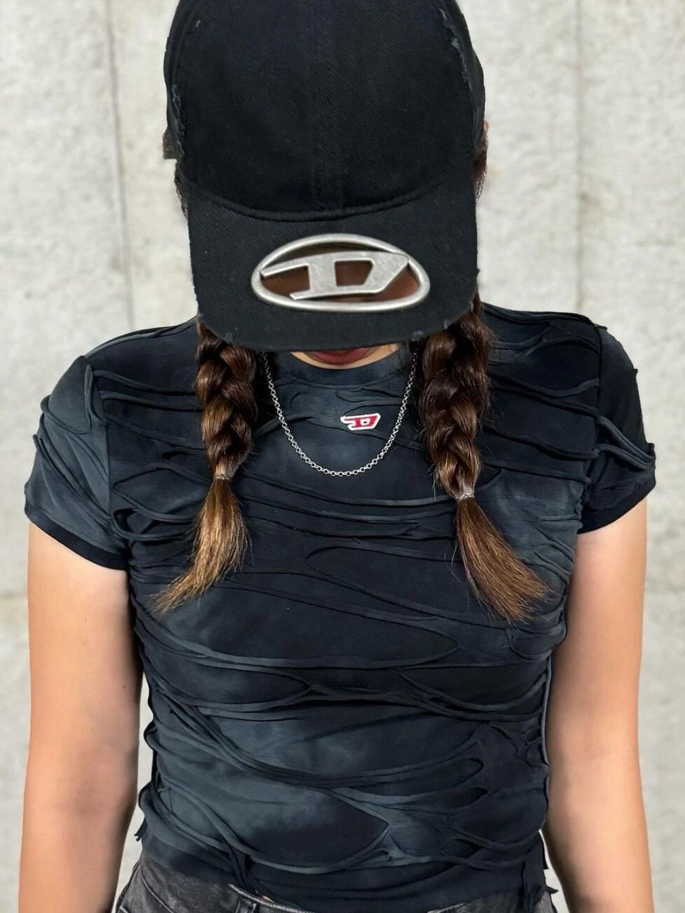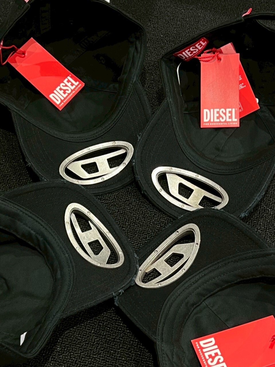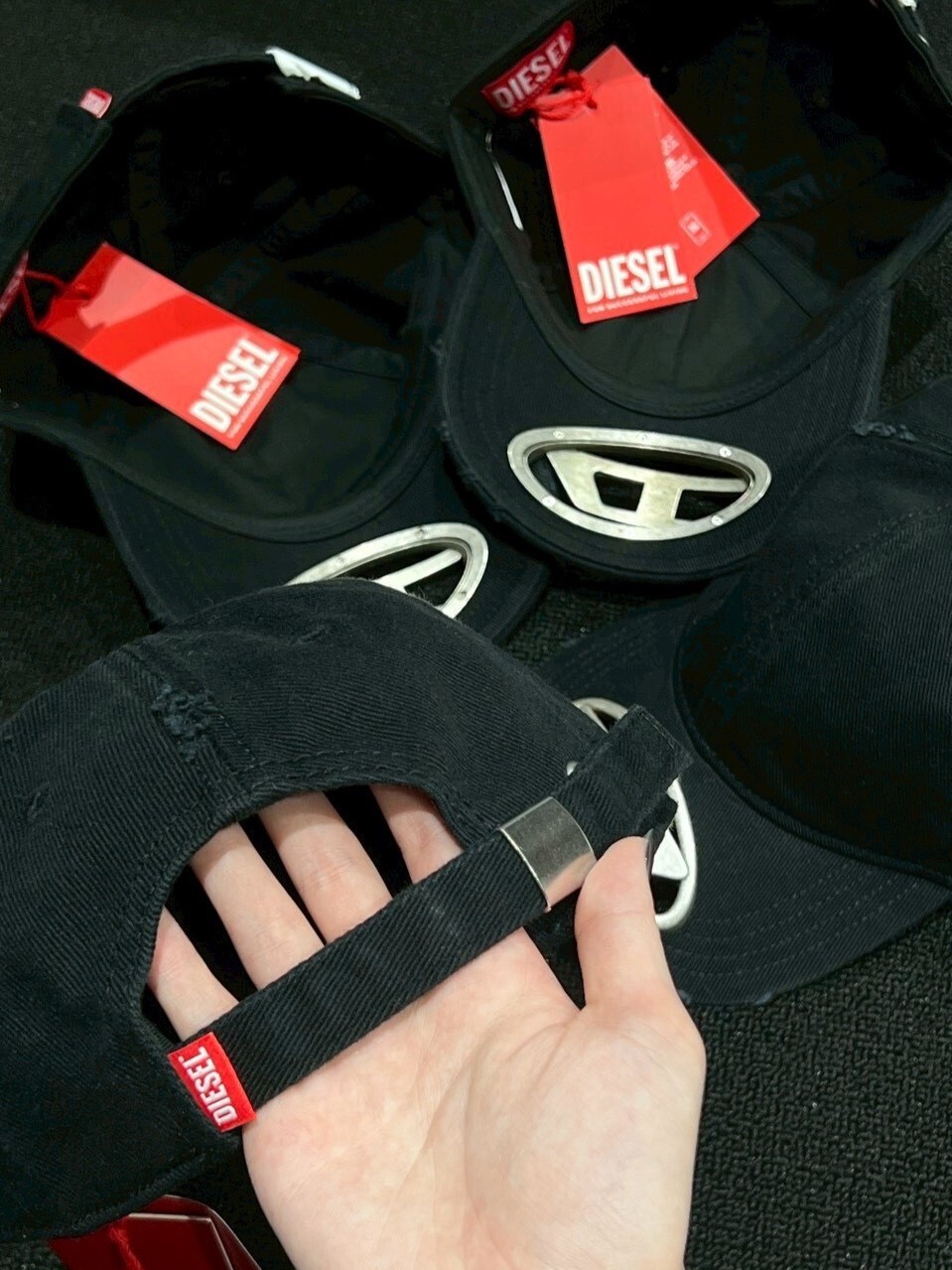 現貨6折 DIESEL 份量款金屬D Logo 黑色破壞老帽