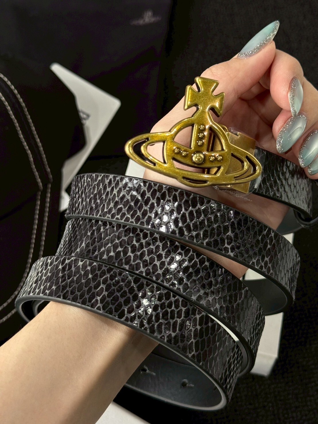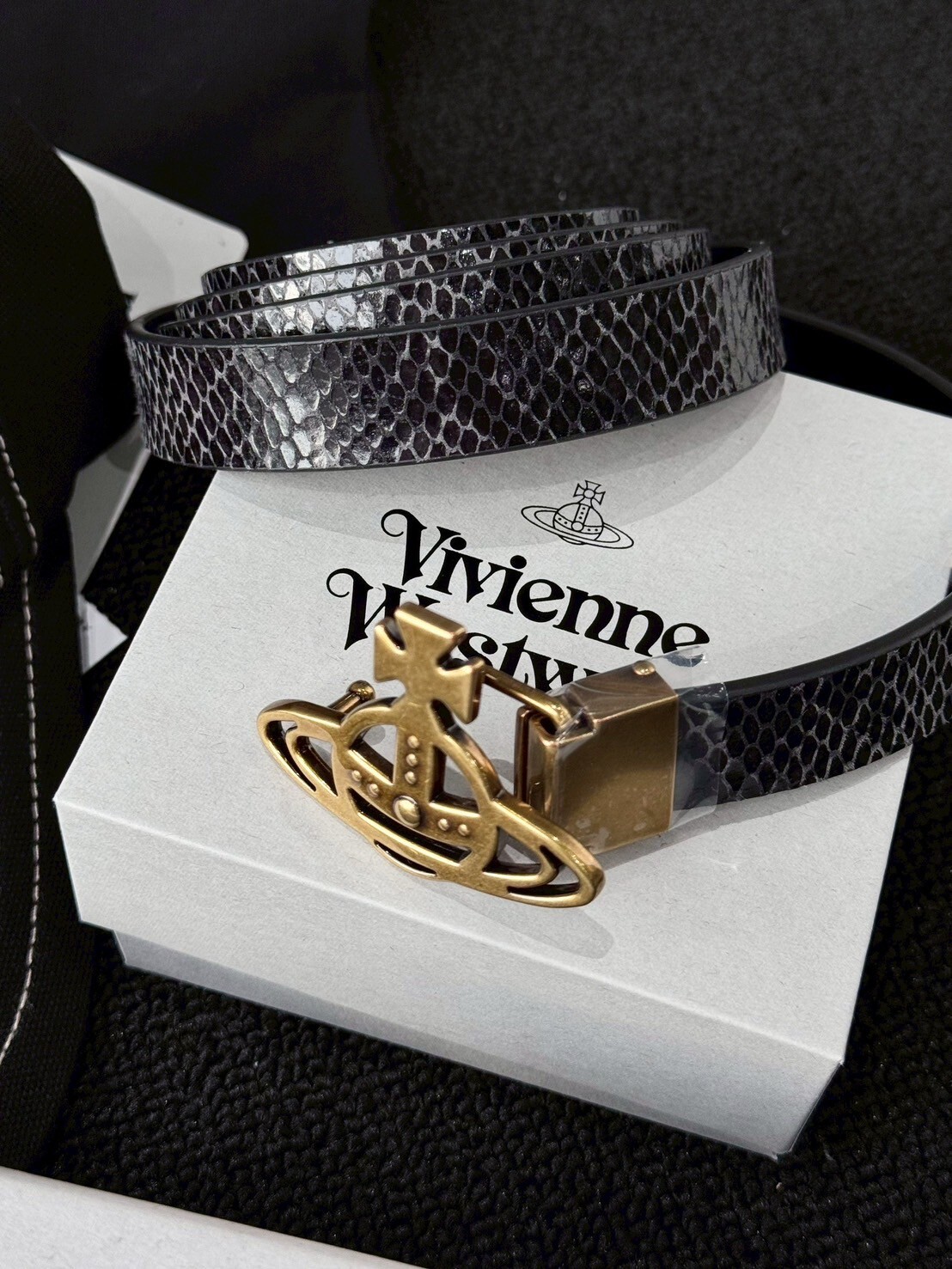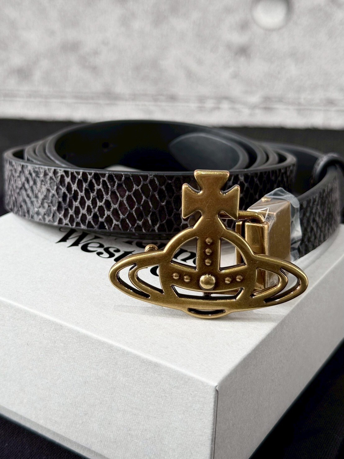 現貨6折 Vivienne Westwood 稀少品 金屬星球Logo蛇紋皮帶