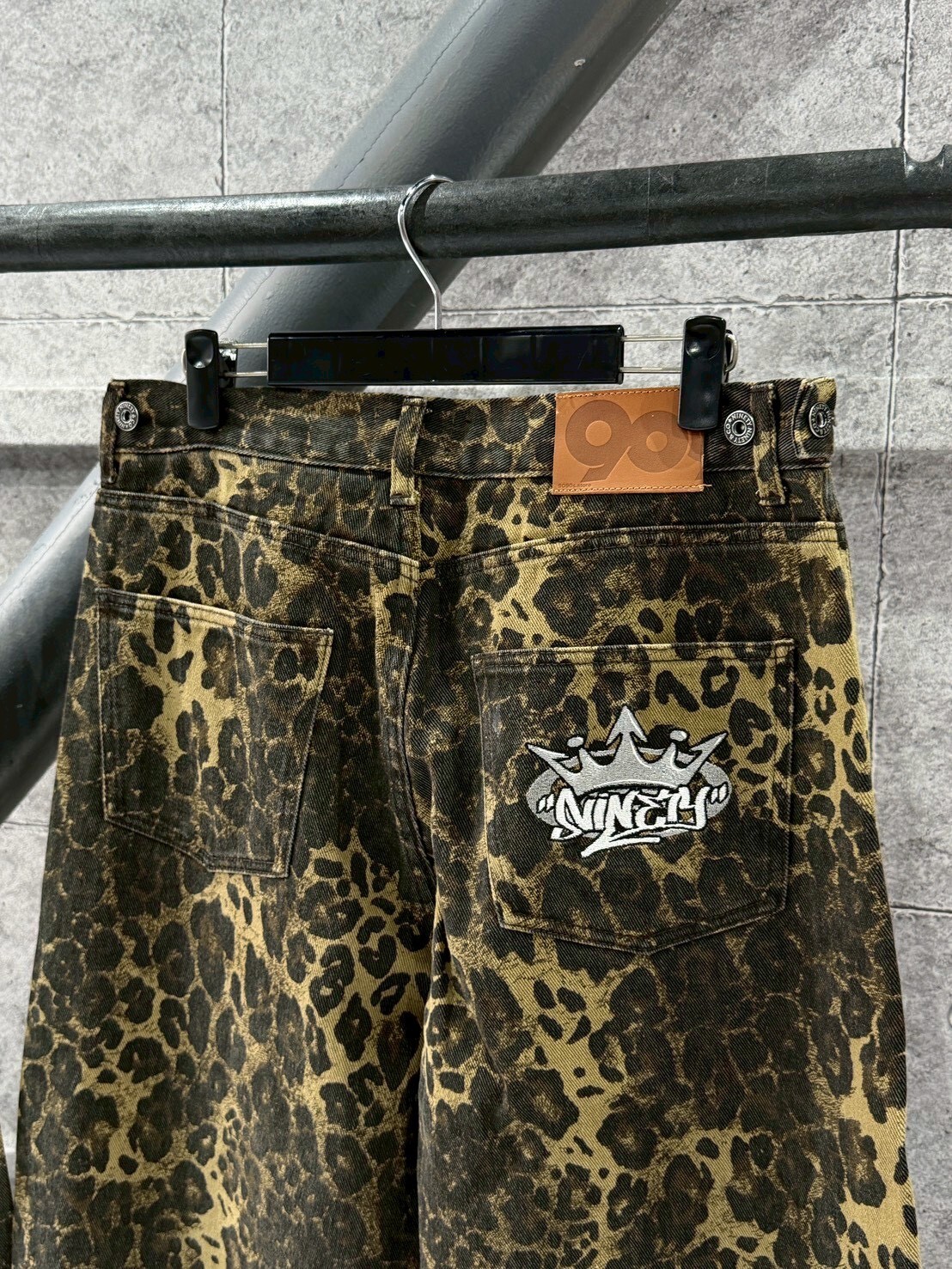 9090 缺貨款 豹紋牛仔長褲 彎刀褲