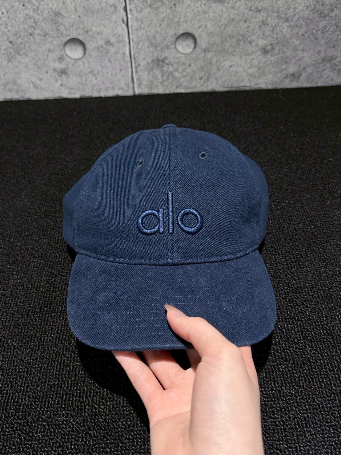 alo 質感水洗深藍 海軍藍 刺繡Logo 老帽 Jisoo款