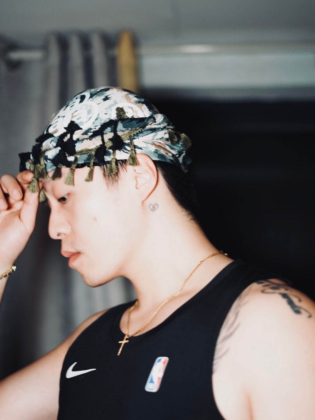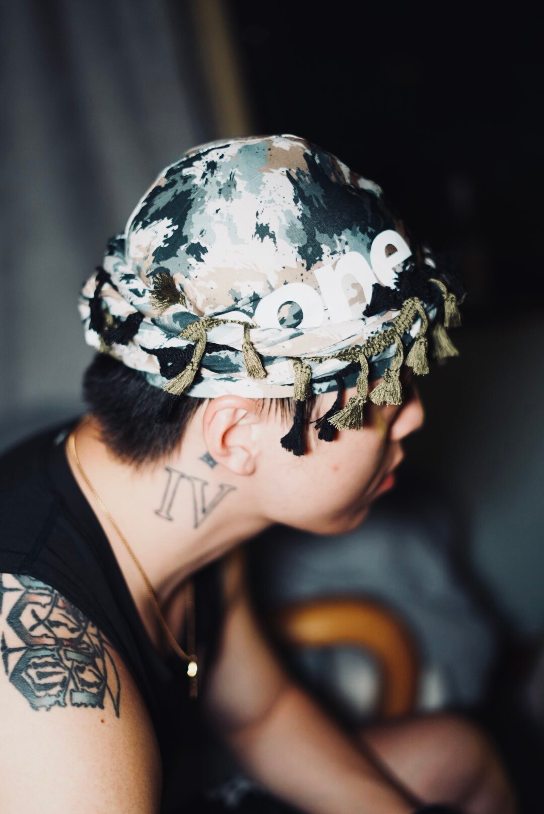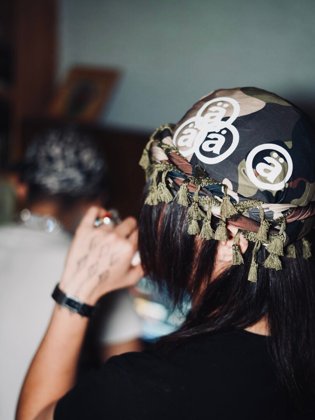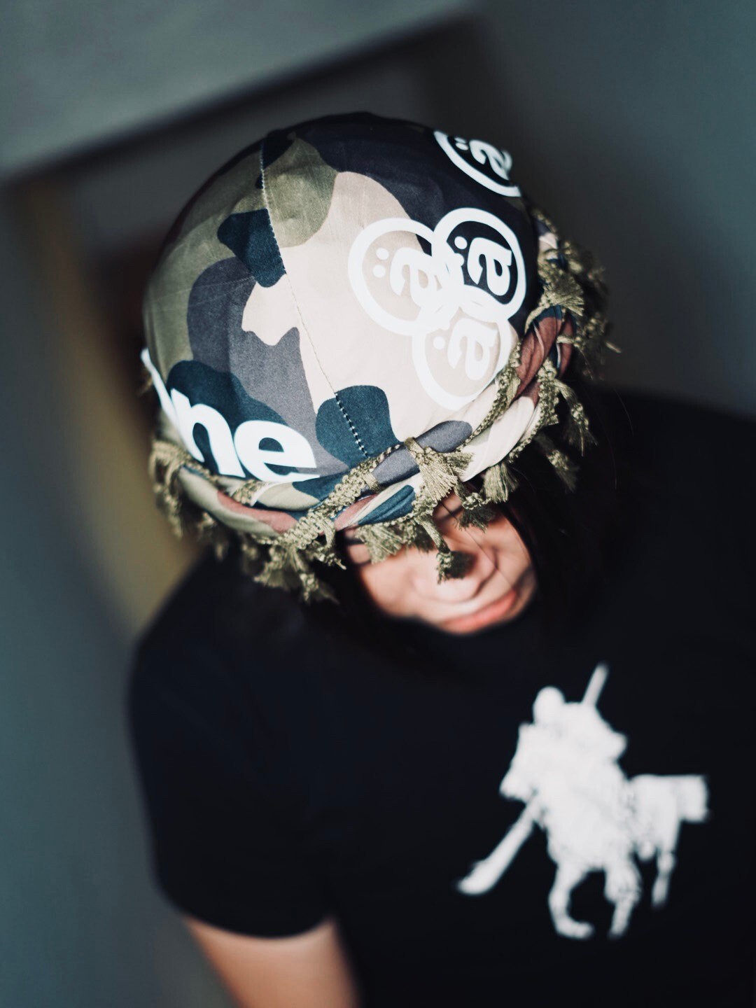 AONE4SURE Logo印花迷彩反光流蘇帽