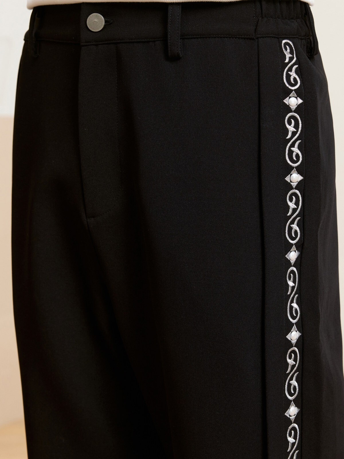 ASEN同款 STK SmallTownKid 西蘭卡普 側邊刺繡 珍珠裝飾 西裝褲