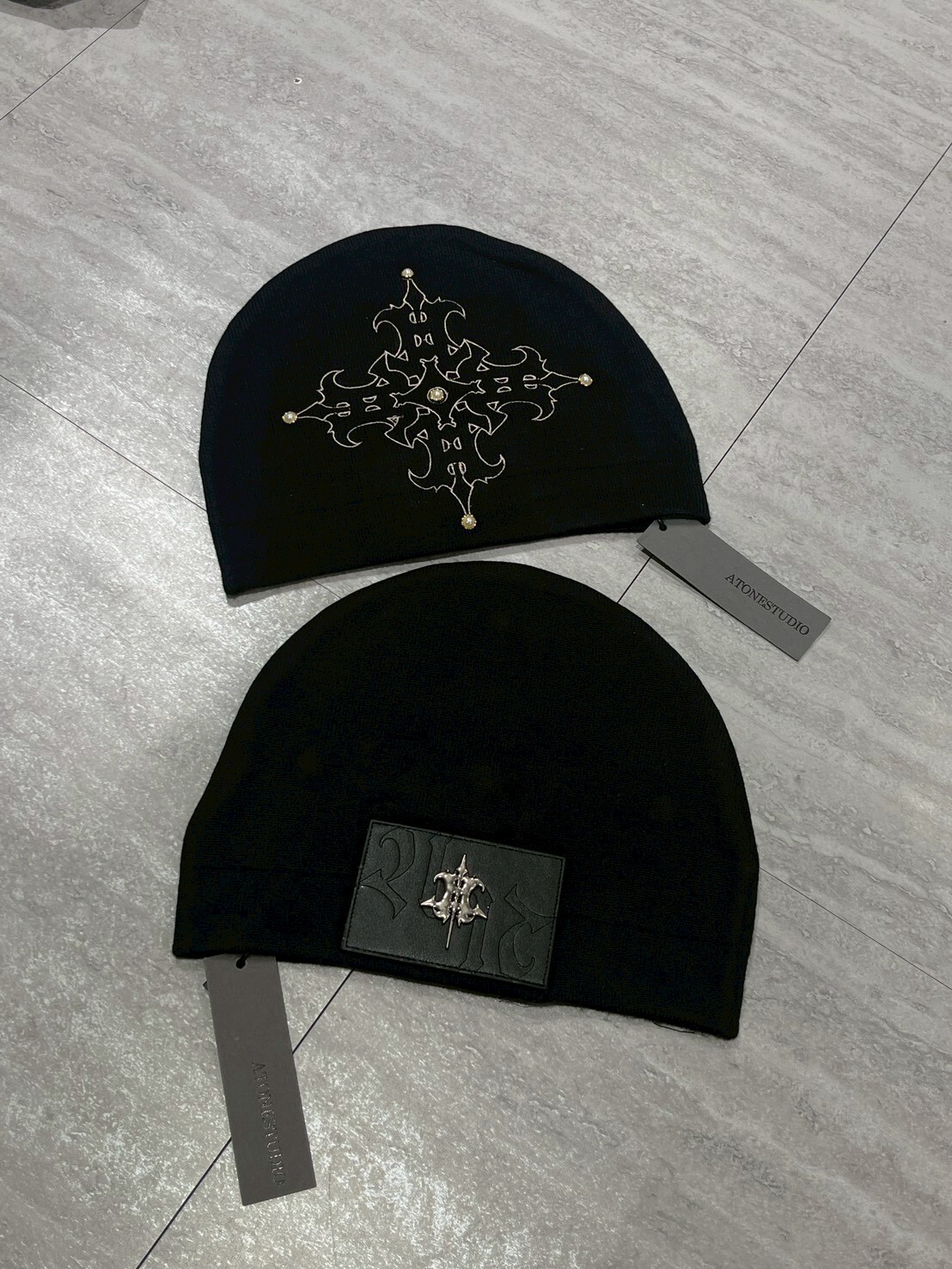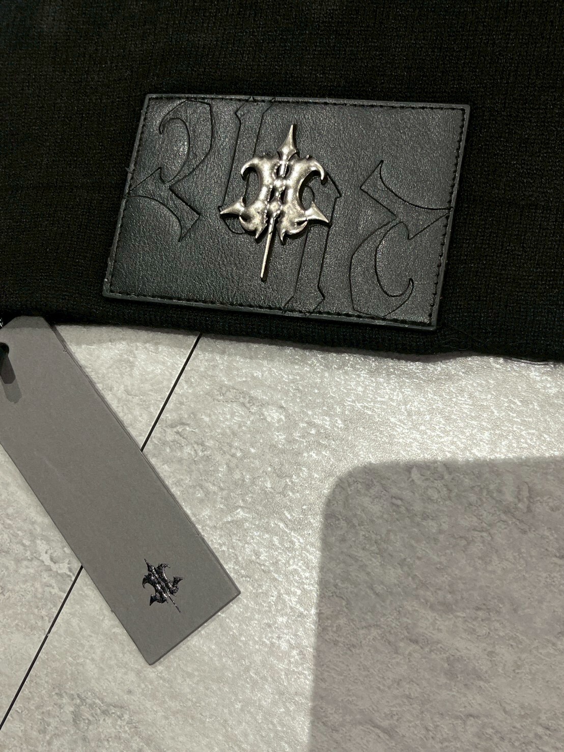 一邊是我們設計的金屬logo皮標