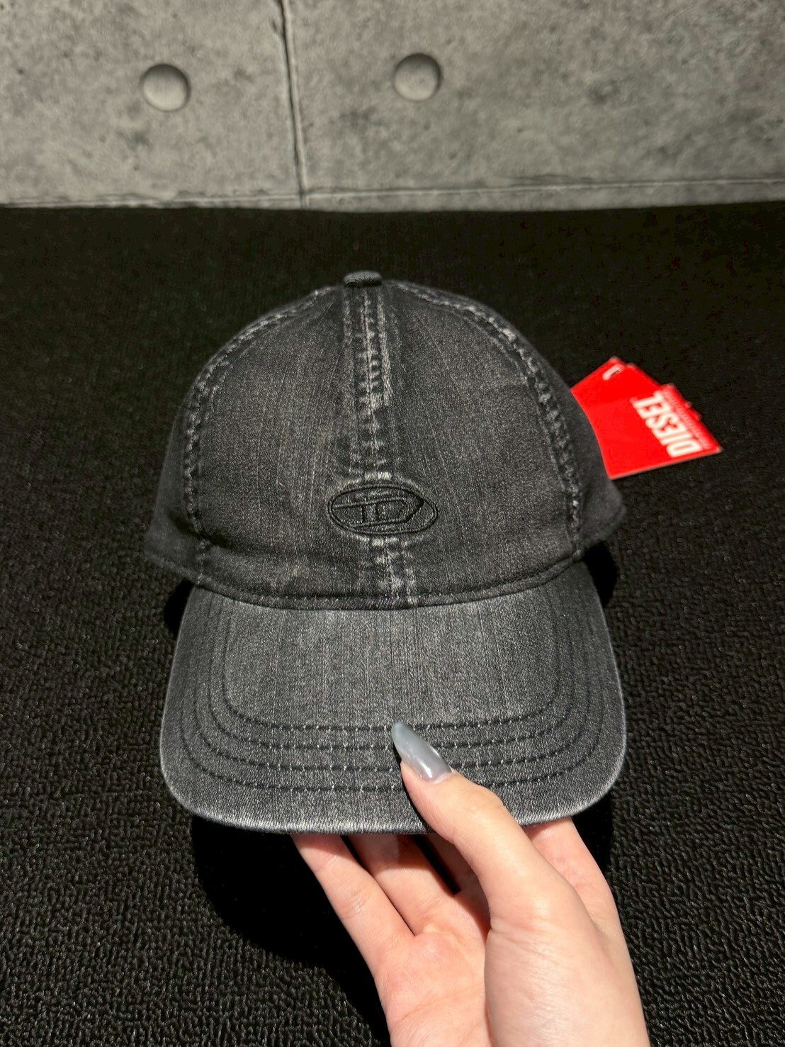 DIESEL 水洗黑刺繡Logo老帽