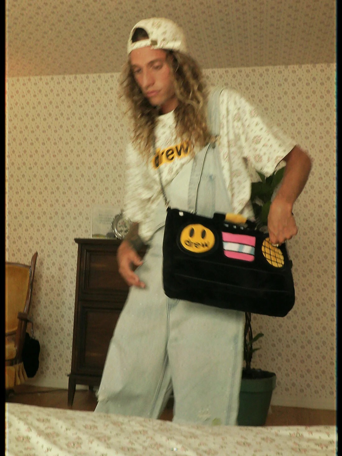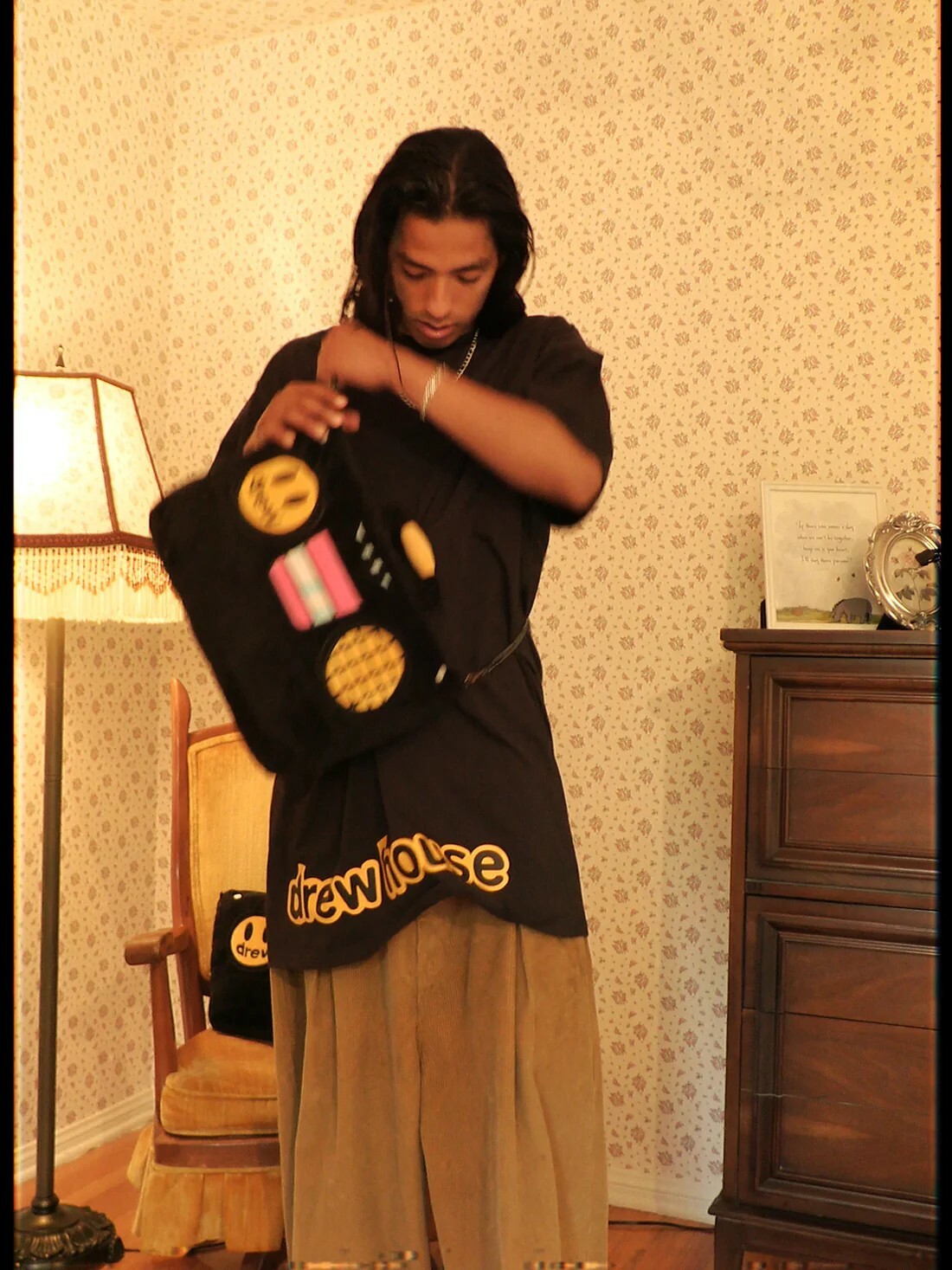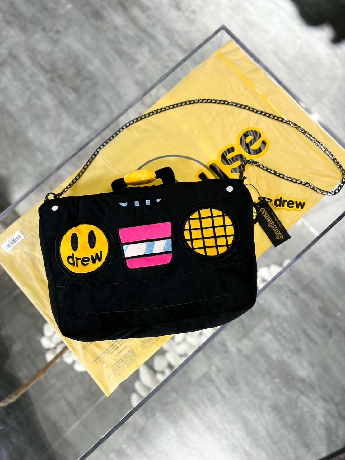 Drew House 特大刺繡 笑臉Logo 黑色音箱絨毛 鏈條包包