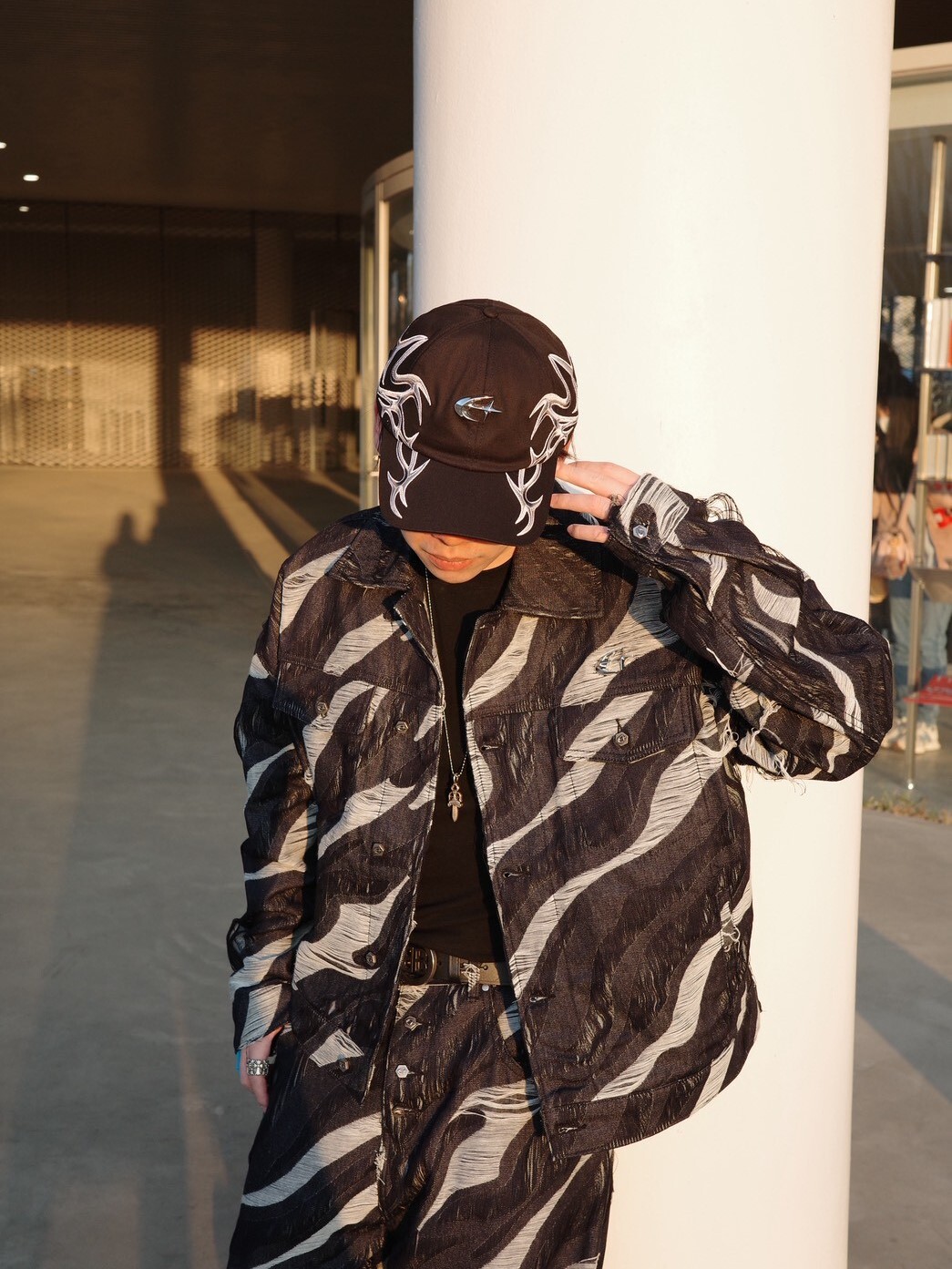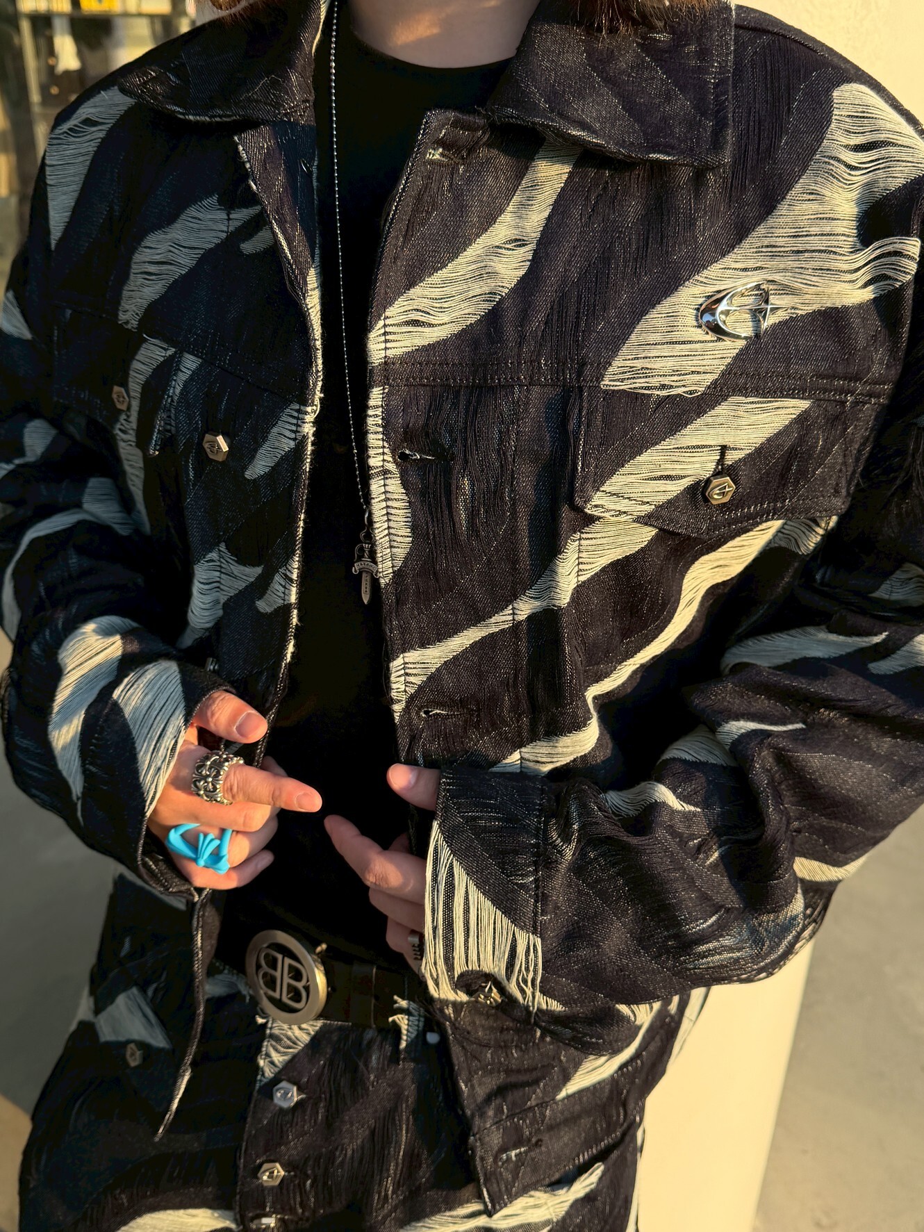ETERNAL 金屬Logo 黑色滿版虎紋破壞 抽鬚短版牛仔外套 夾克 Lil Pump實著款