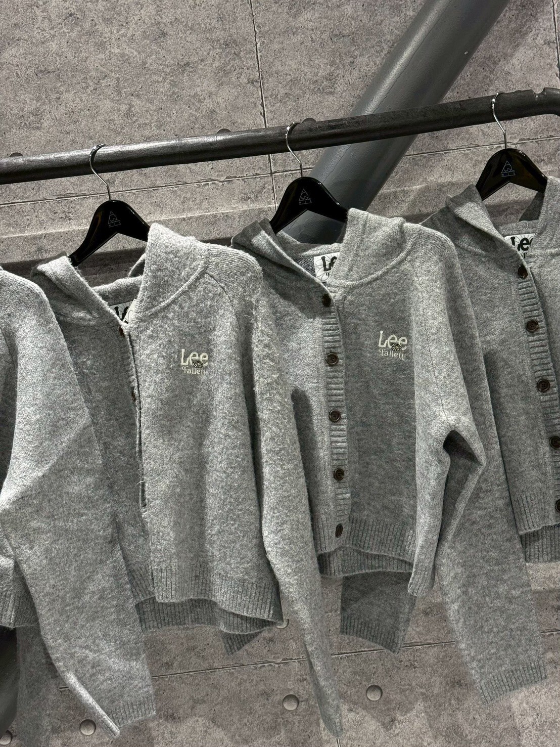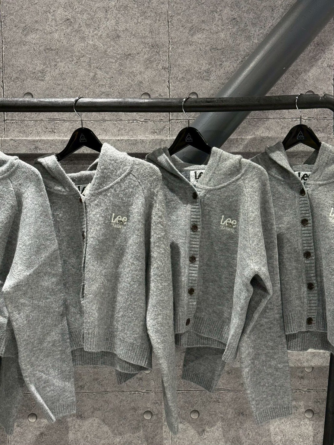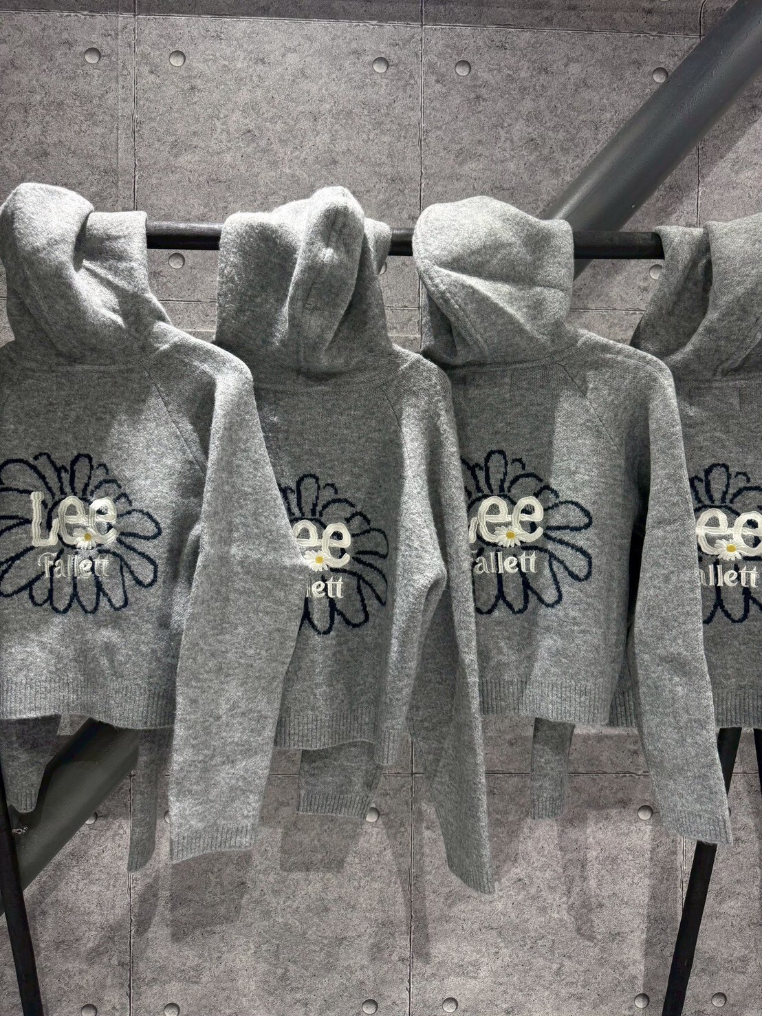 韓國 Fallett x Lee 聯名限定 刺繡小花灰色針織連帽外套