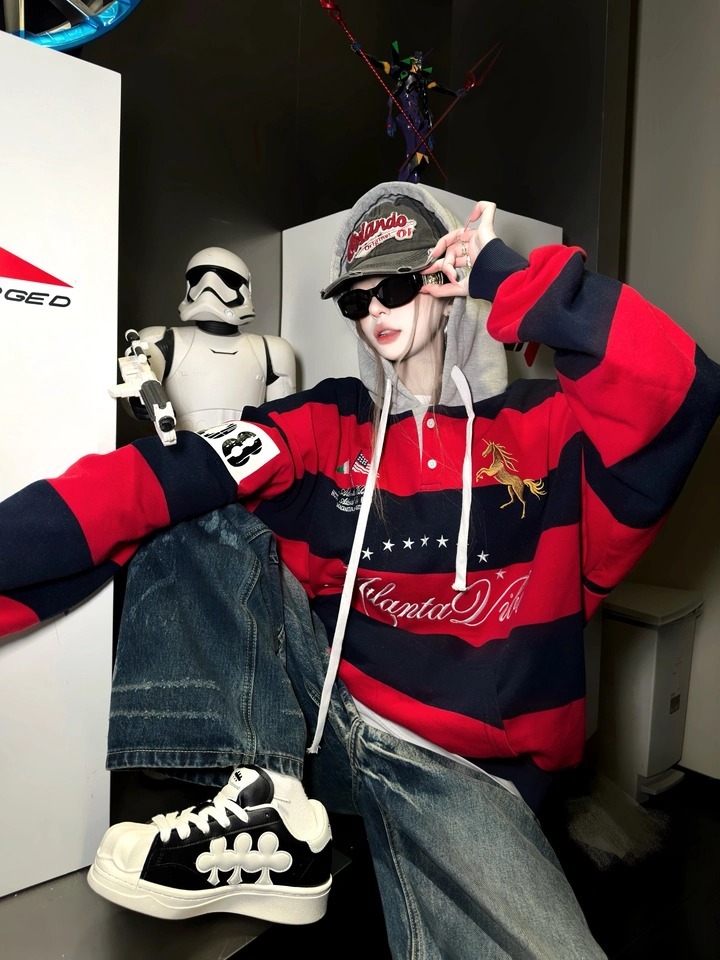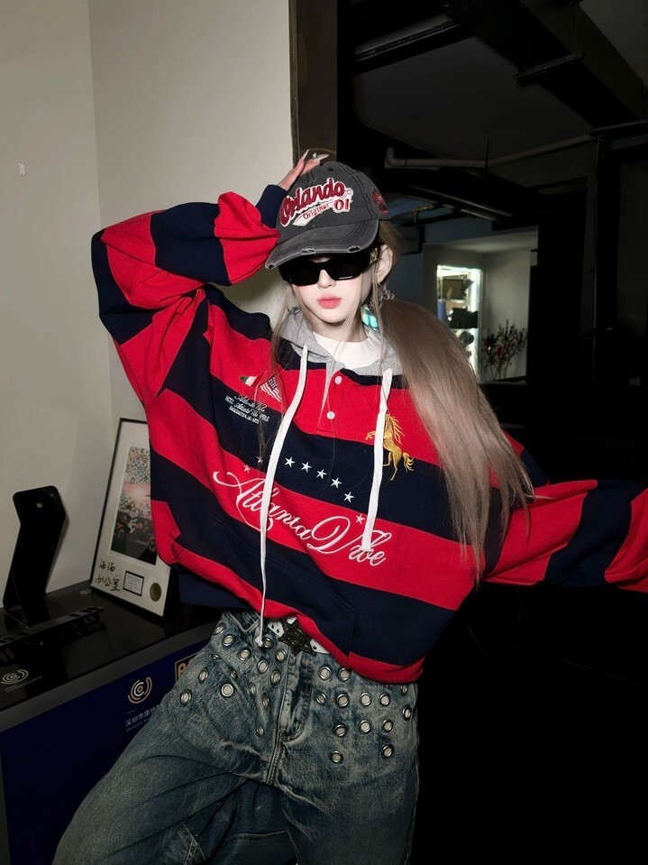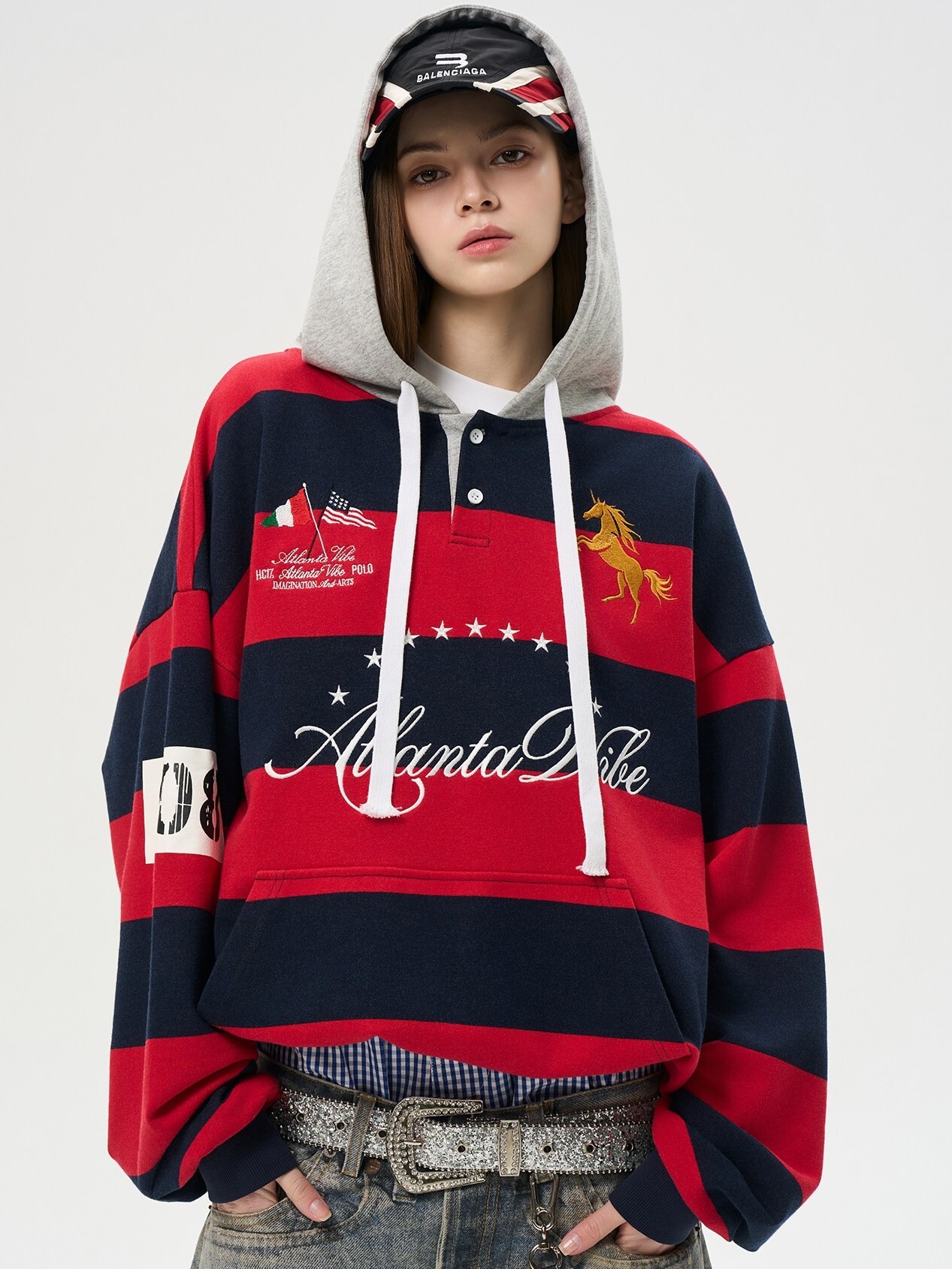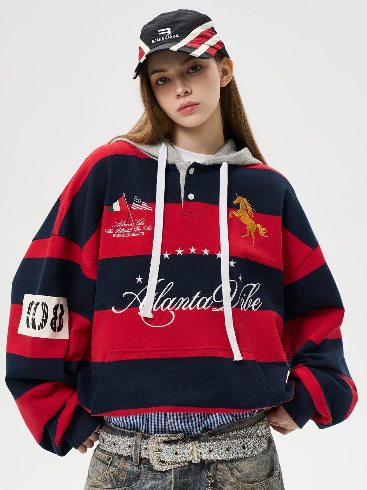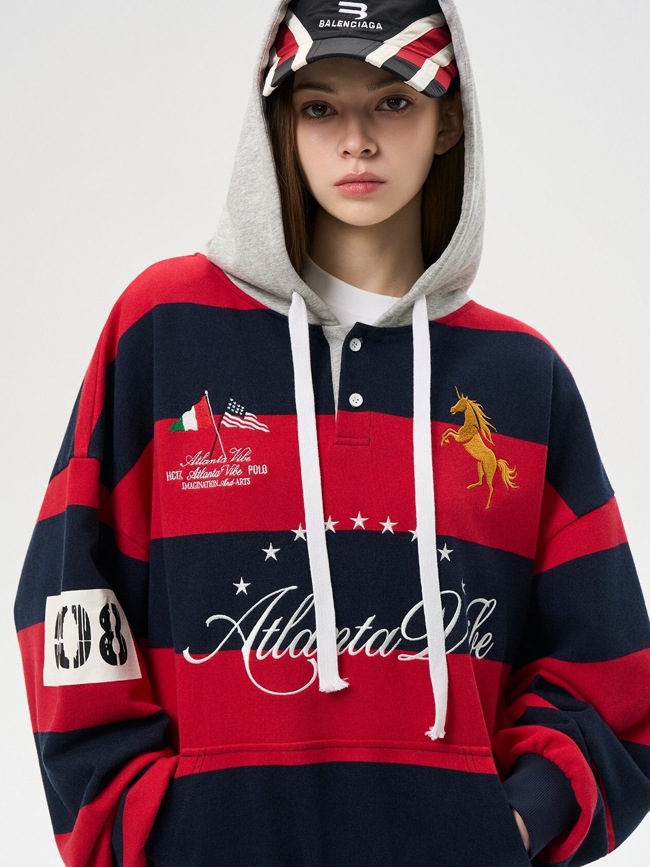 Harsh and Cruel 條紋雙色拼接 連帽抽繩衛衣 帽T HA26102005