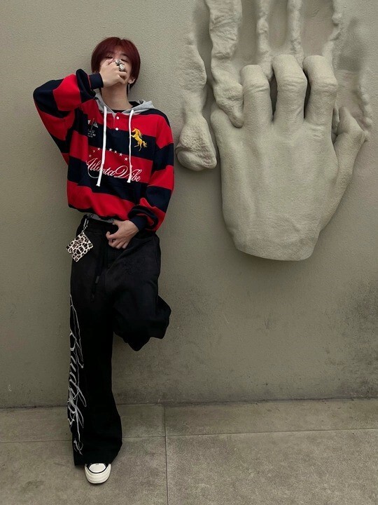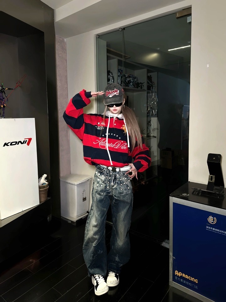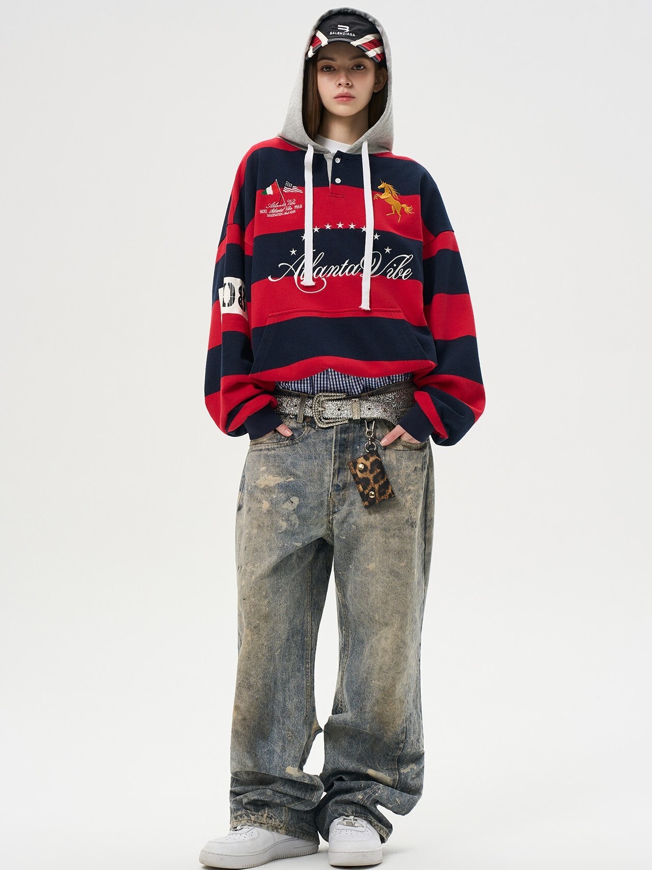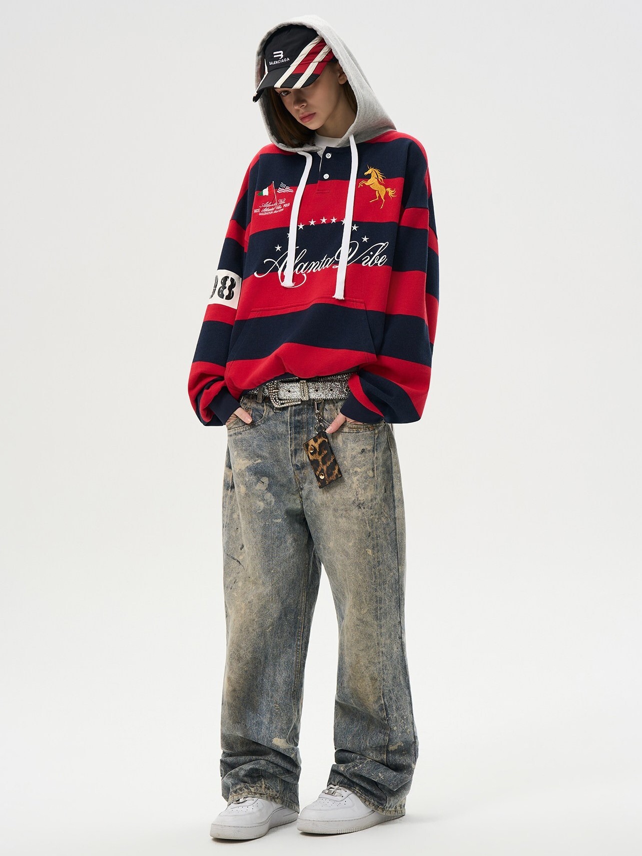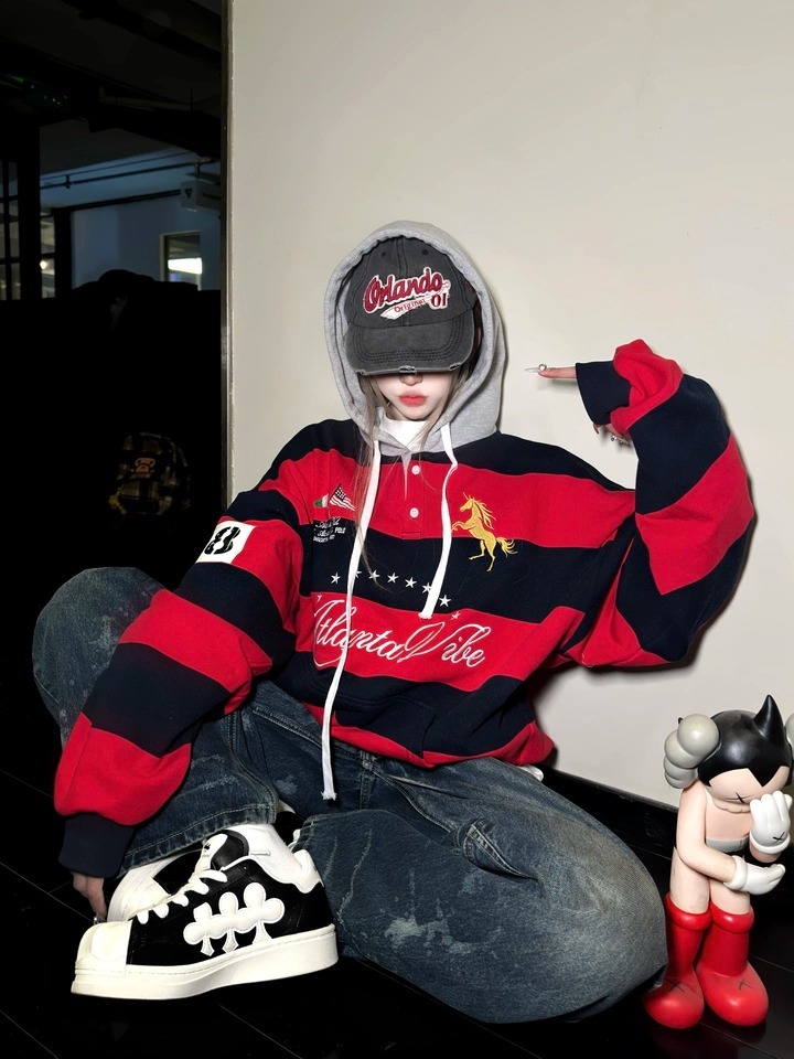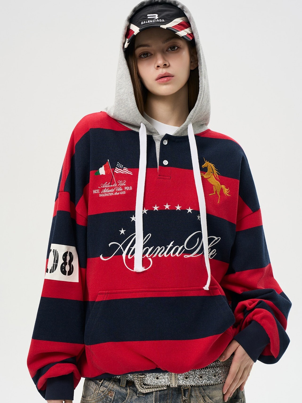 Harsh and Cruel 條紋雙色拼接 連帽抽繩衛衣 帽T HA26102005