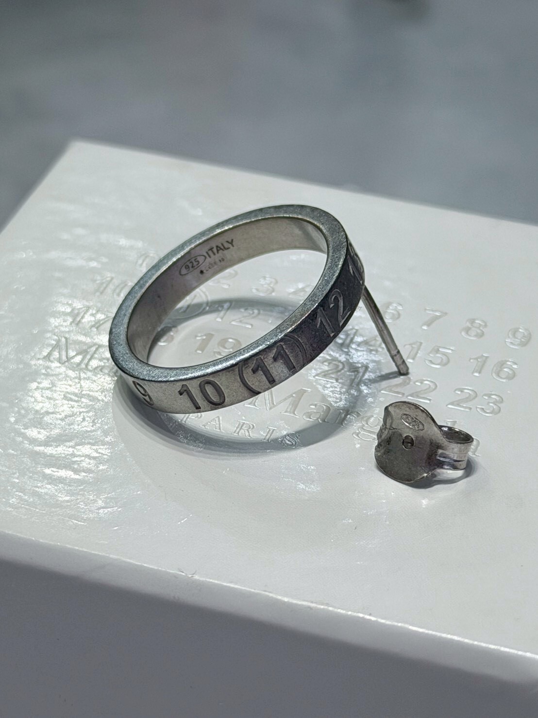 Maison Margiela 經典數字Logo做舊銀環耳環(單耳)