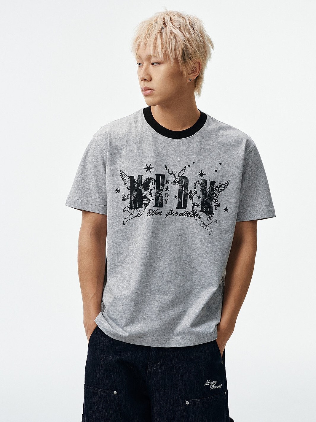 MEDM 小天使星星Logo印花 撞色圓領 寬鬆休閒 短袖T