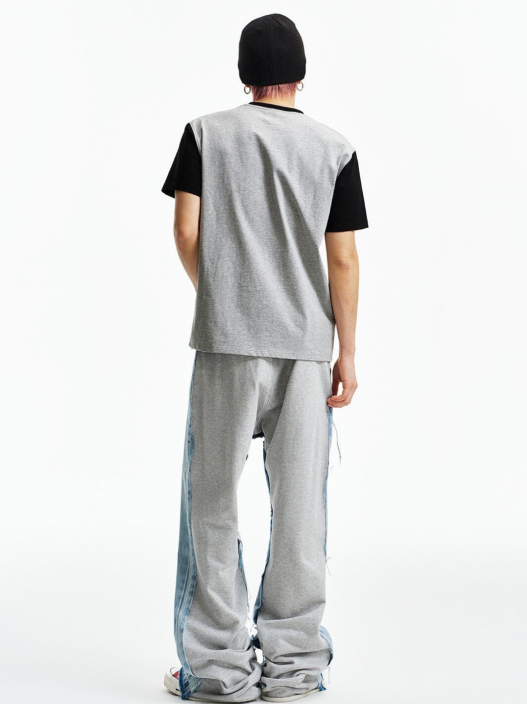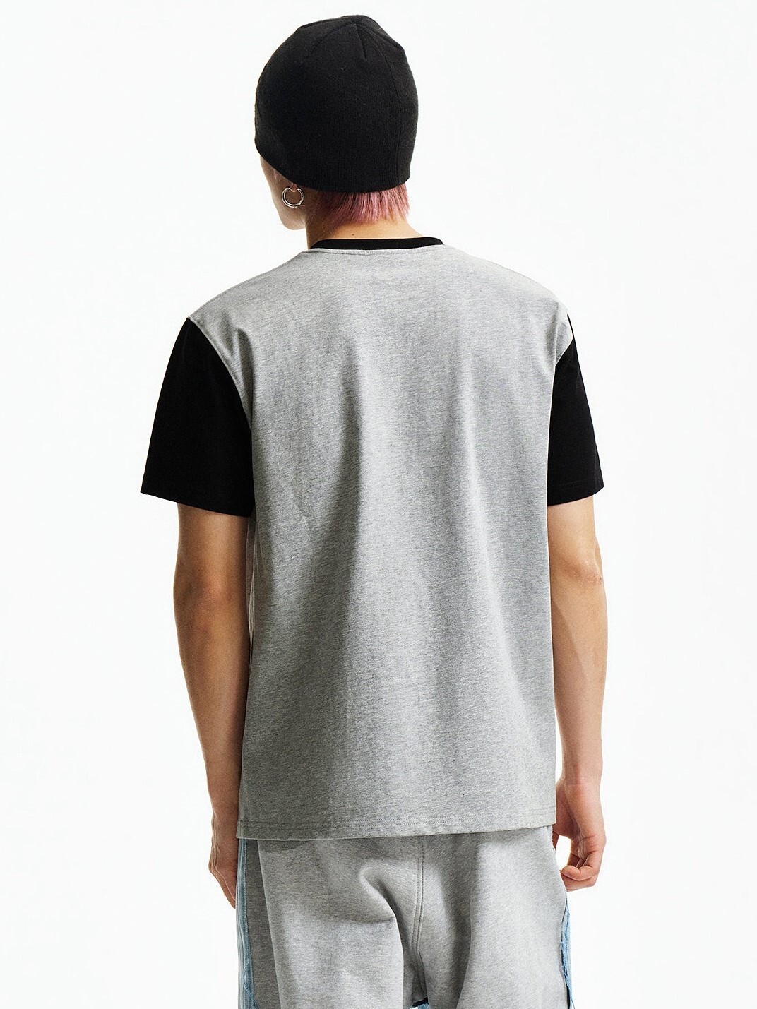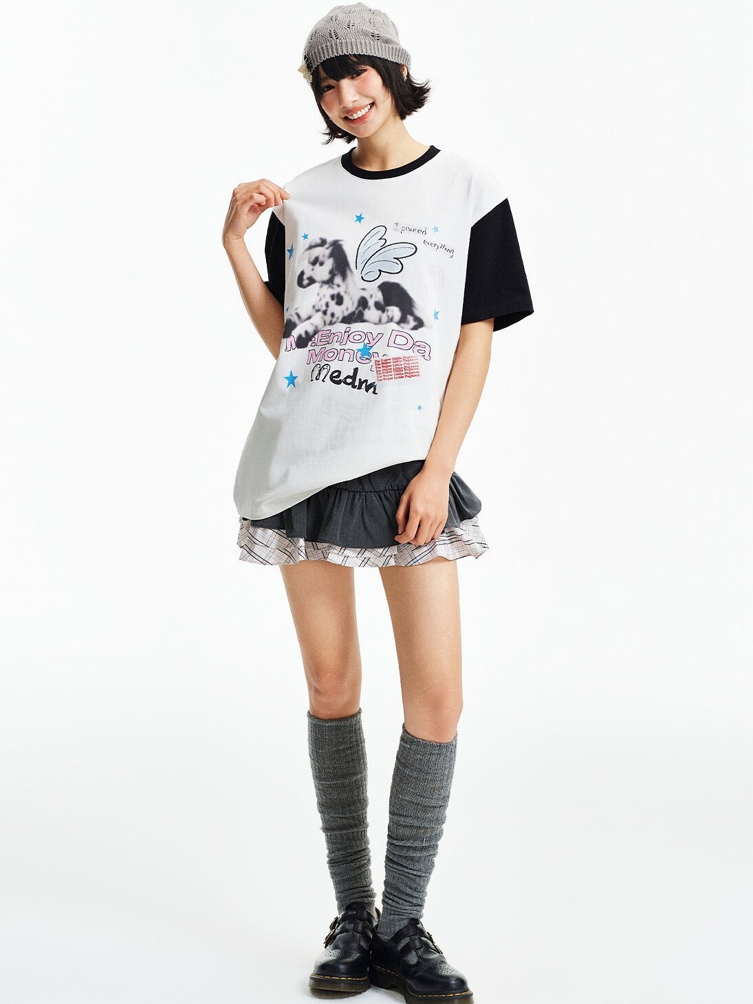 MEDM 模糊小馬印花 星星閃粉 拼接袖子 短袖T