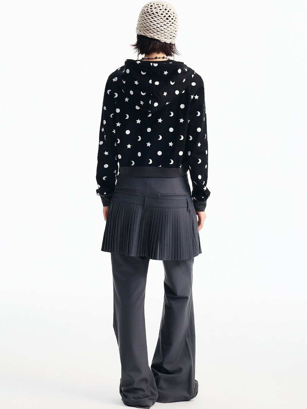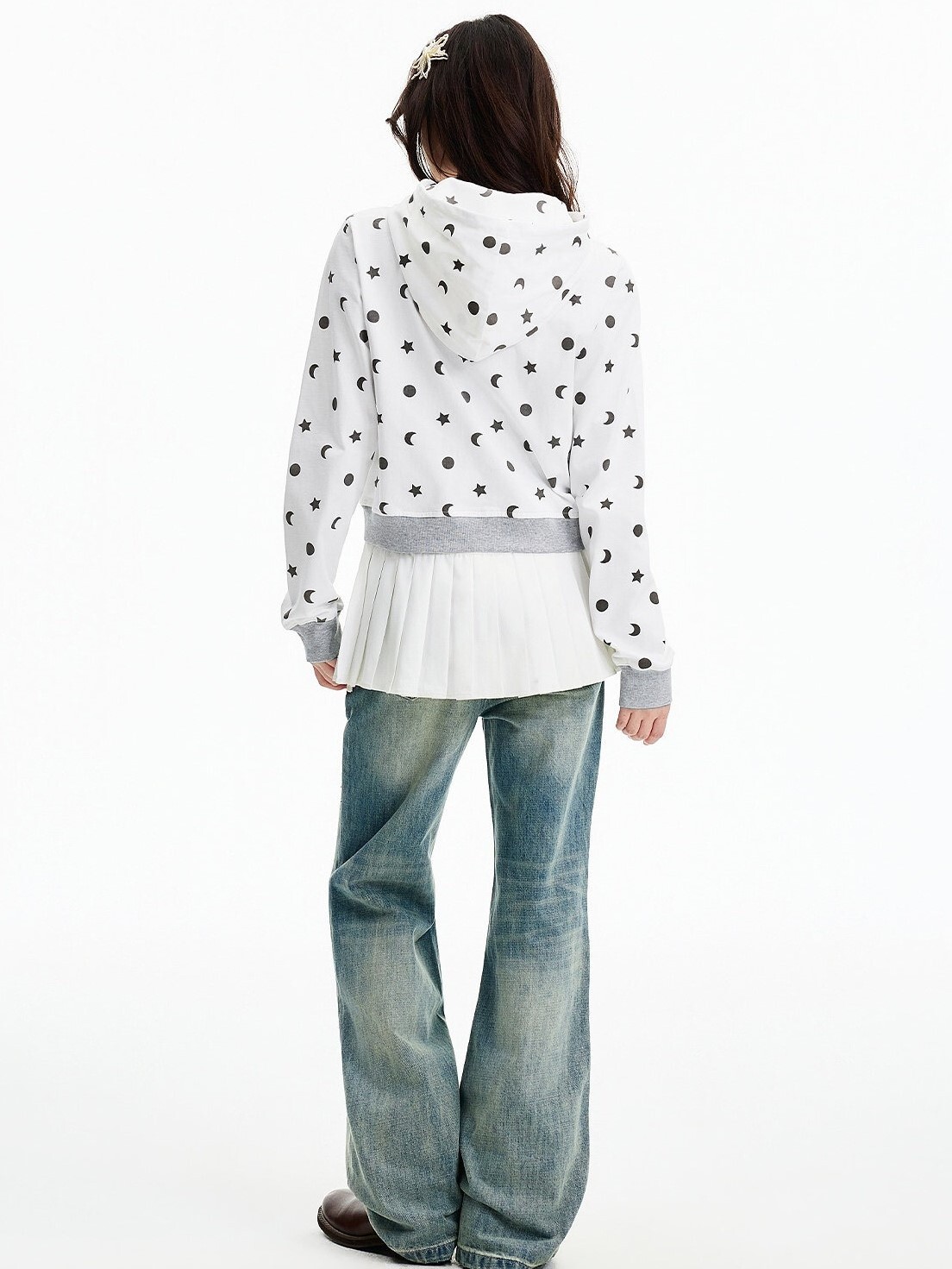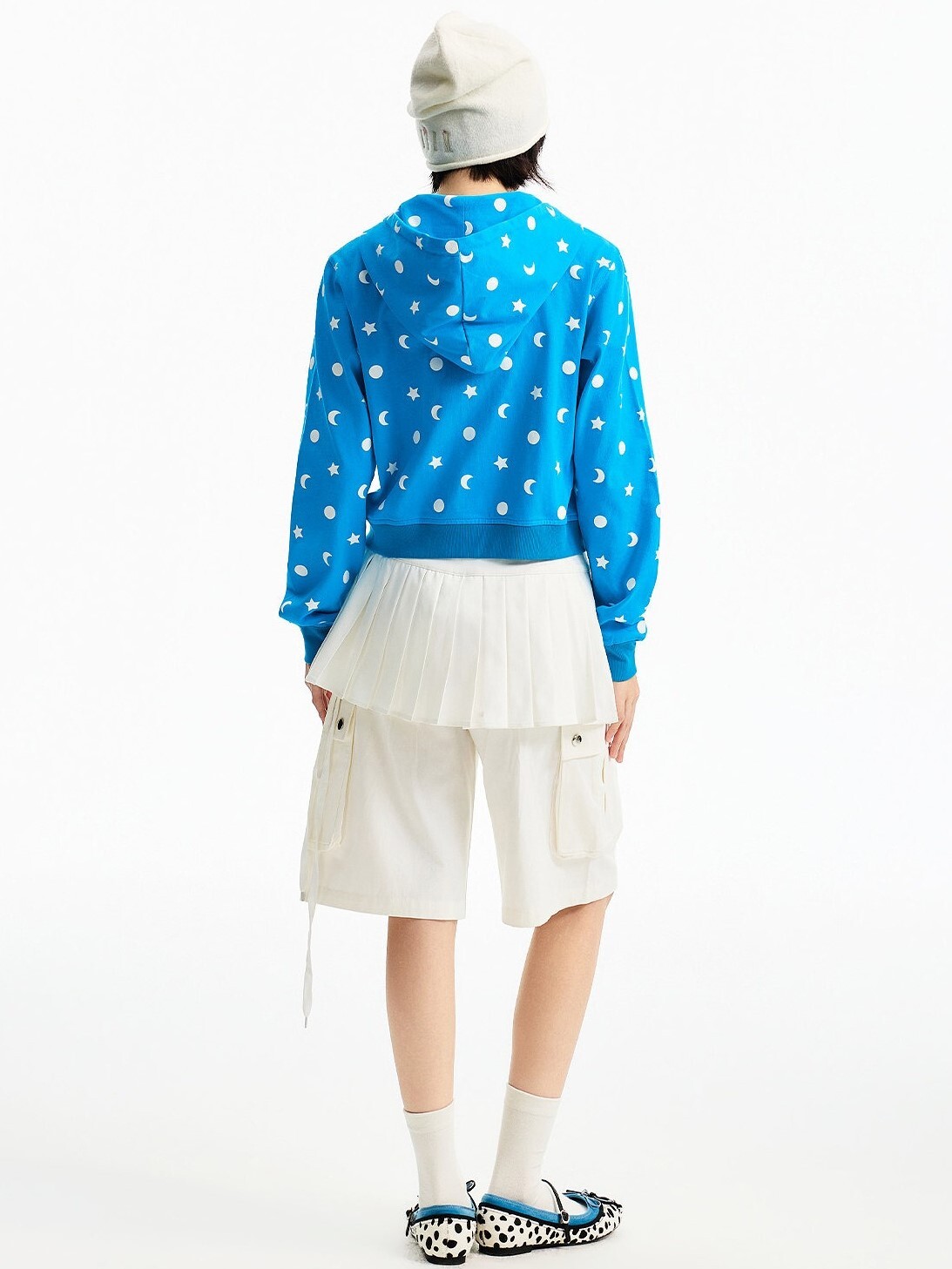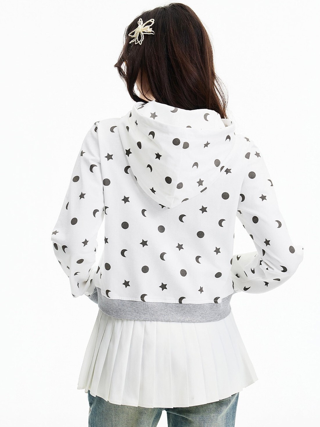 MEDM 胸前刺繡Logo 正肩短版 滿印日月星 休閒 抽繩連帽 外套