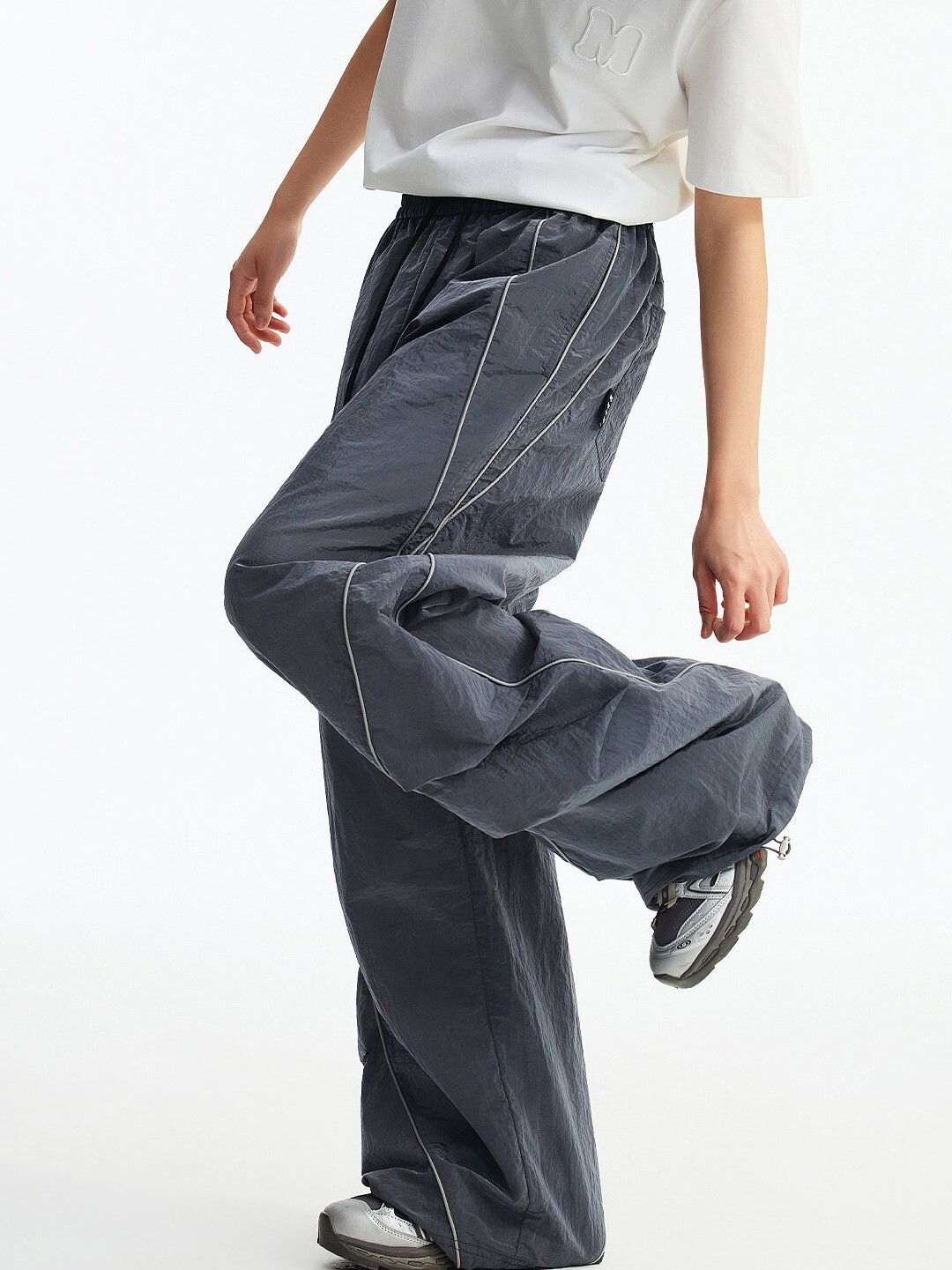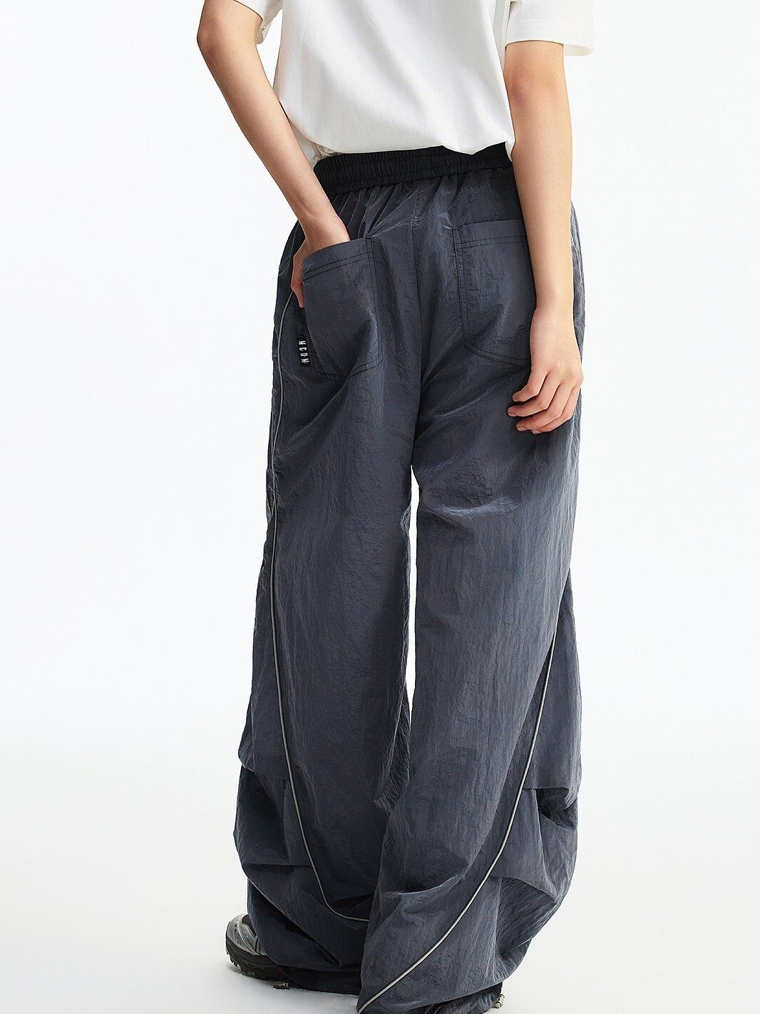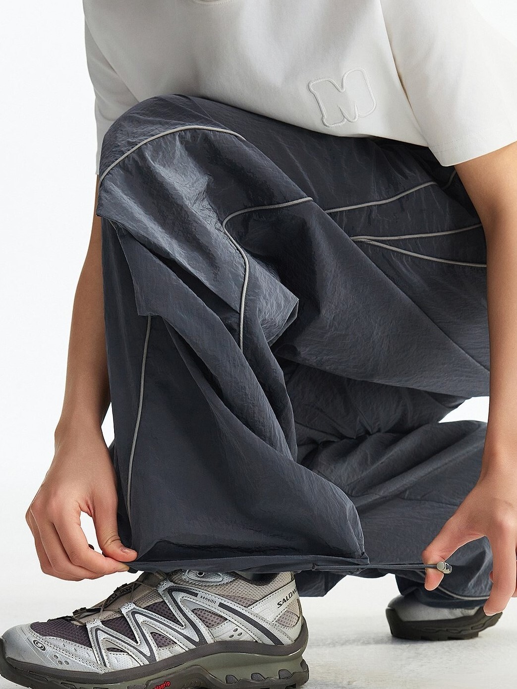MEDM 褲腳抽繩 液態金屬肌理 輕薄機能 套裝 直筒長褲
