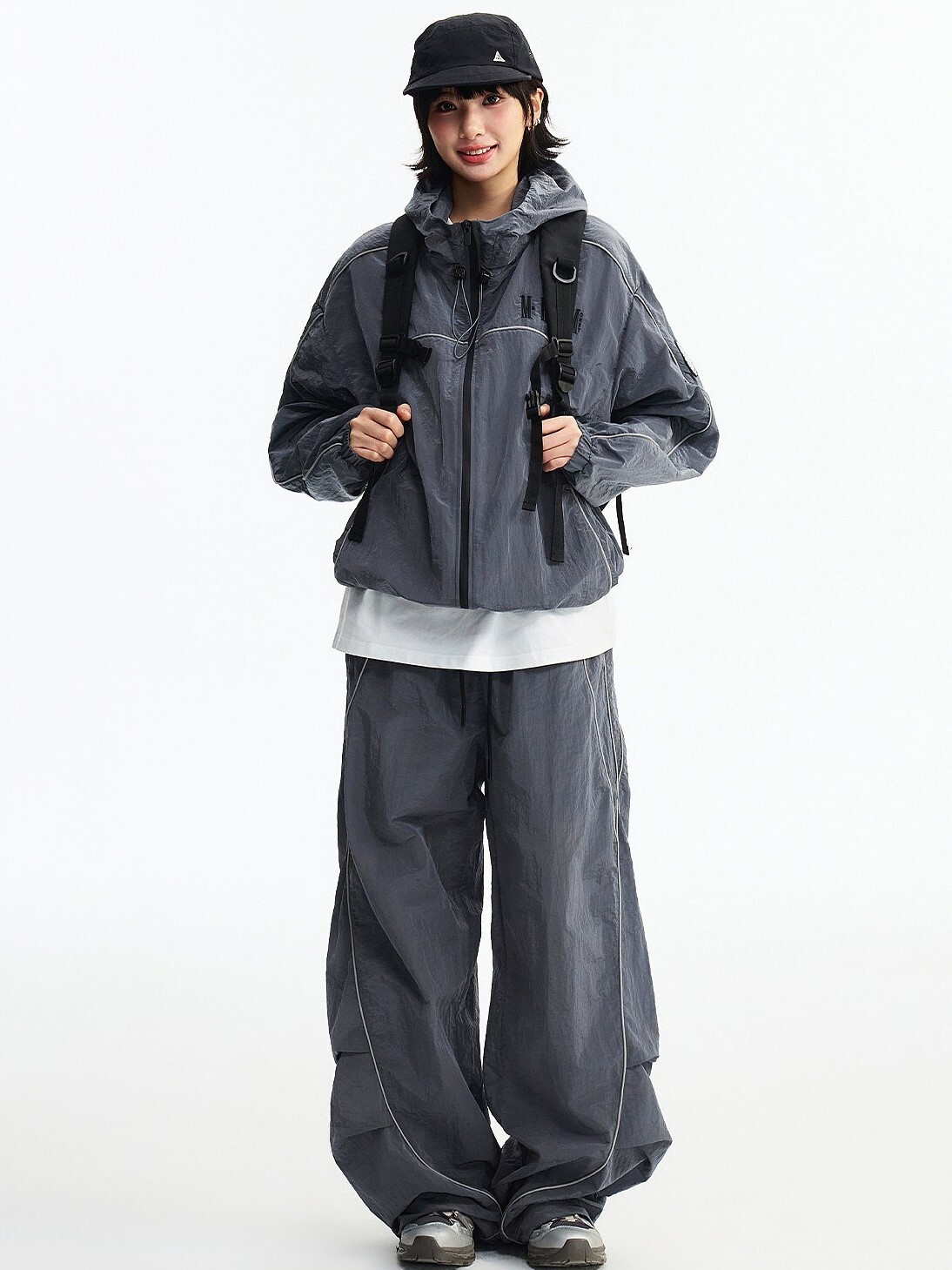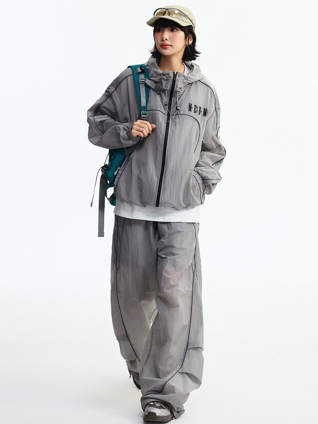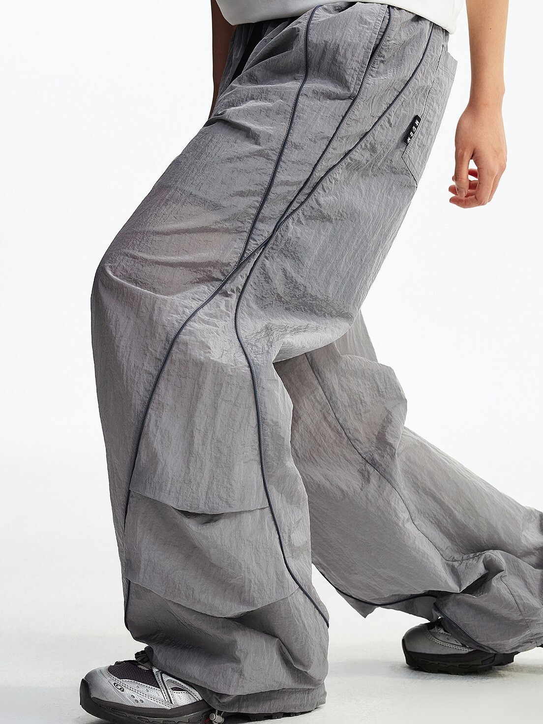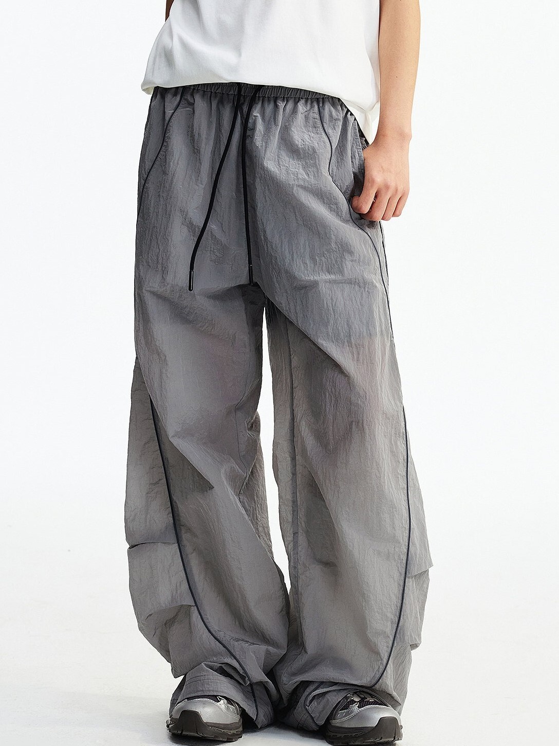 MEDM 褲腳抽繩 液態金屬肌理 輕薄機能 套裝 直筒長褲