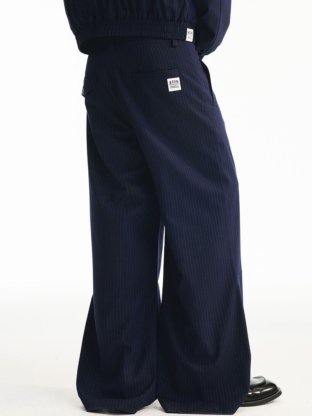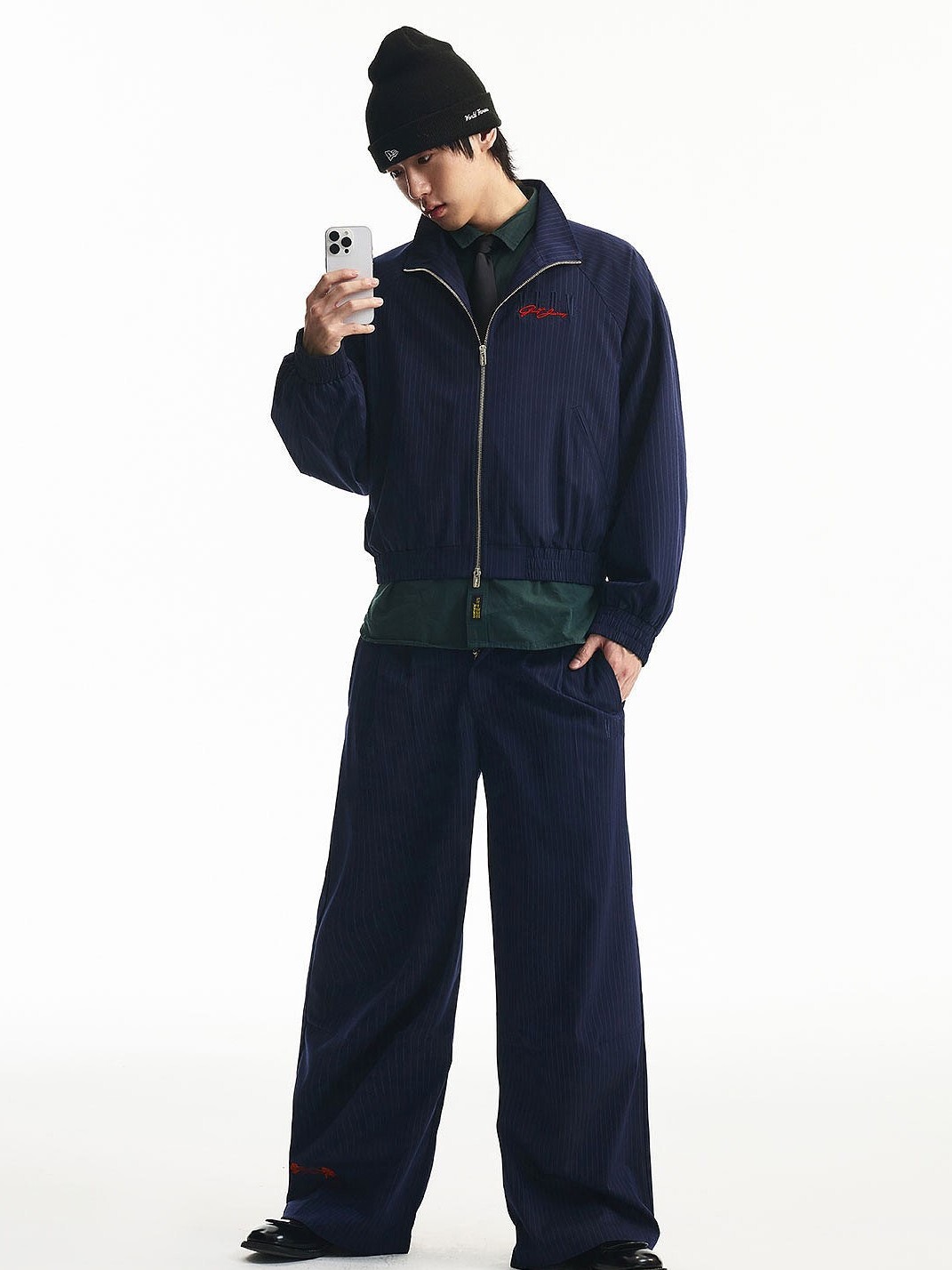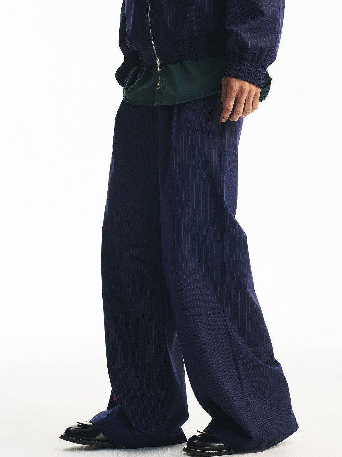 MEDM 褲腳繡花字體Logo 細條紋 美式復古 休閒長褲
