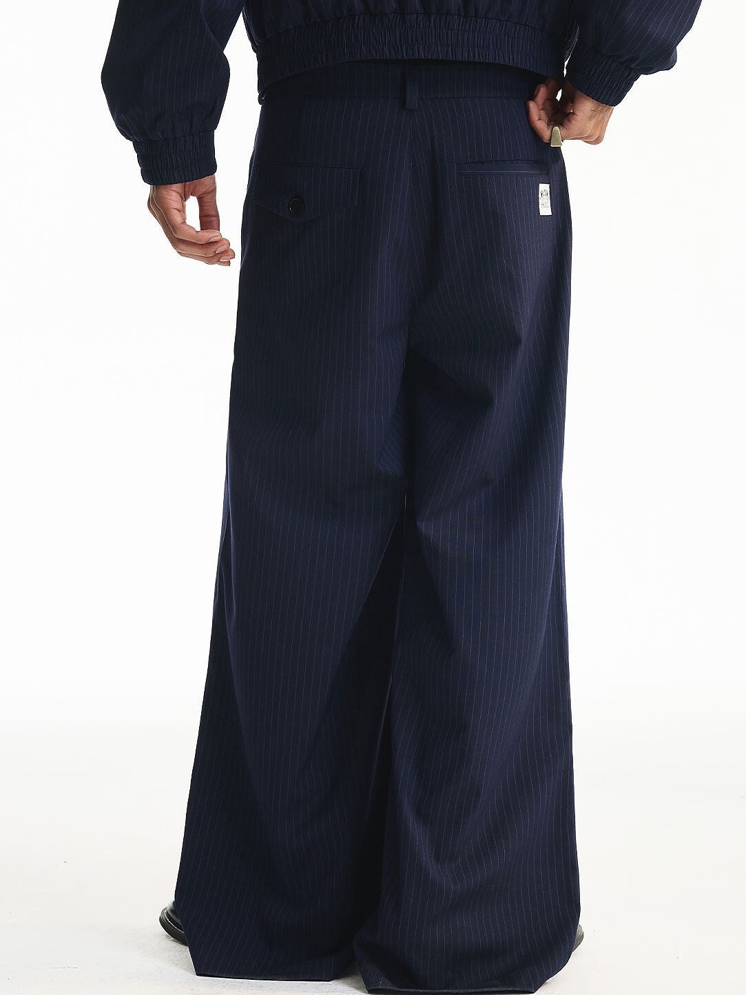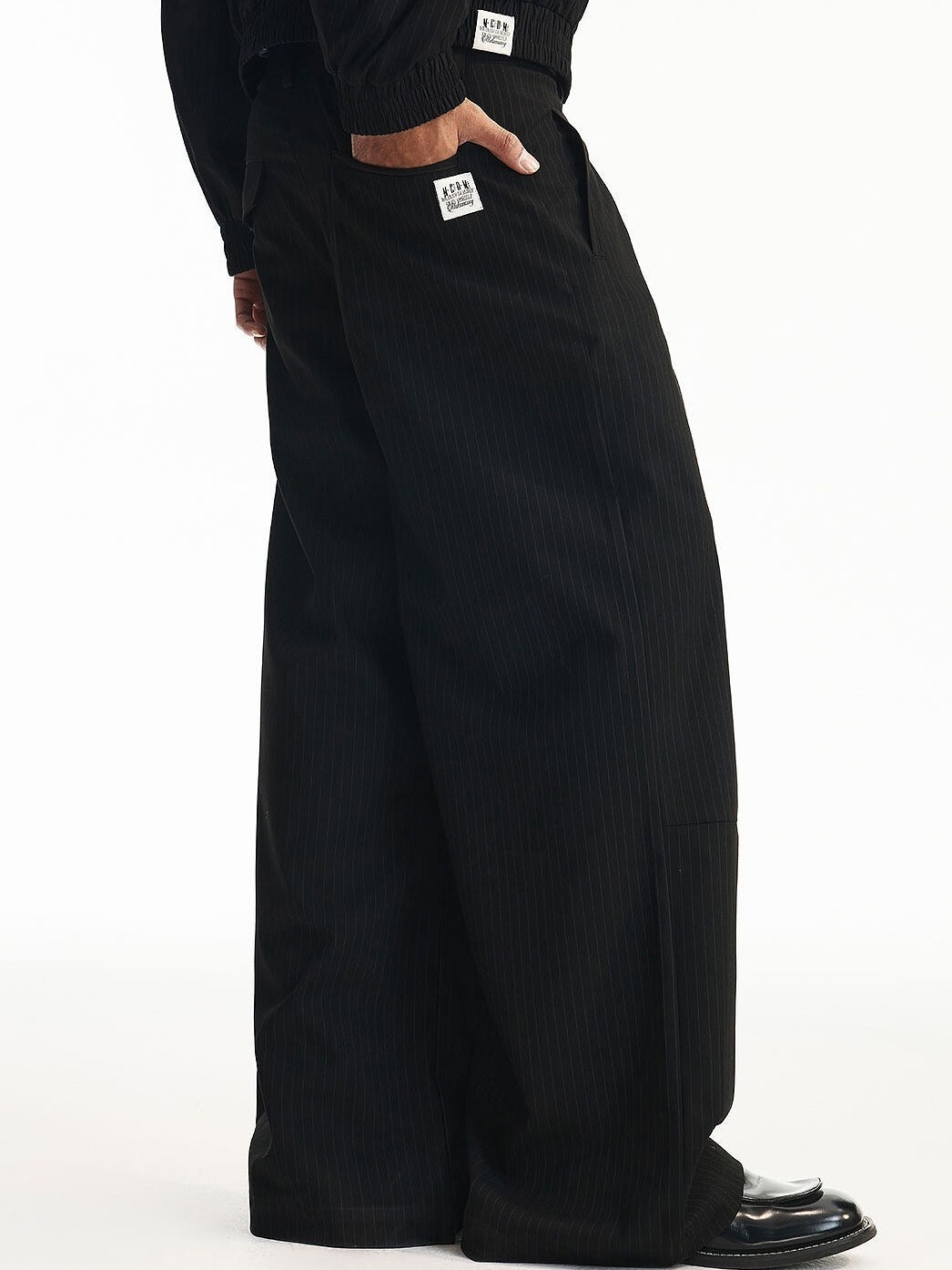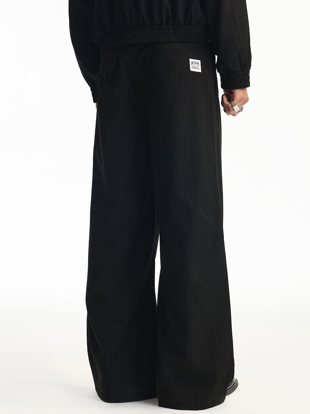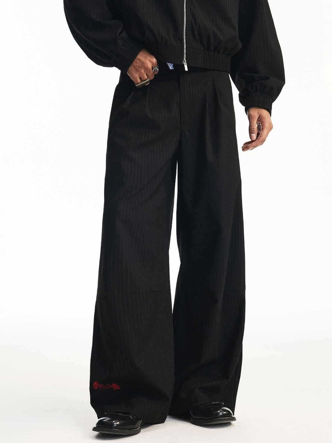 MEDM 褲腳繡花字體Logo 細條紋 美式復古 休閒長褲