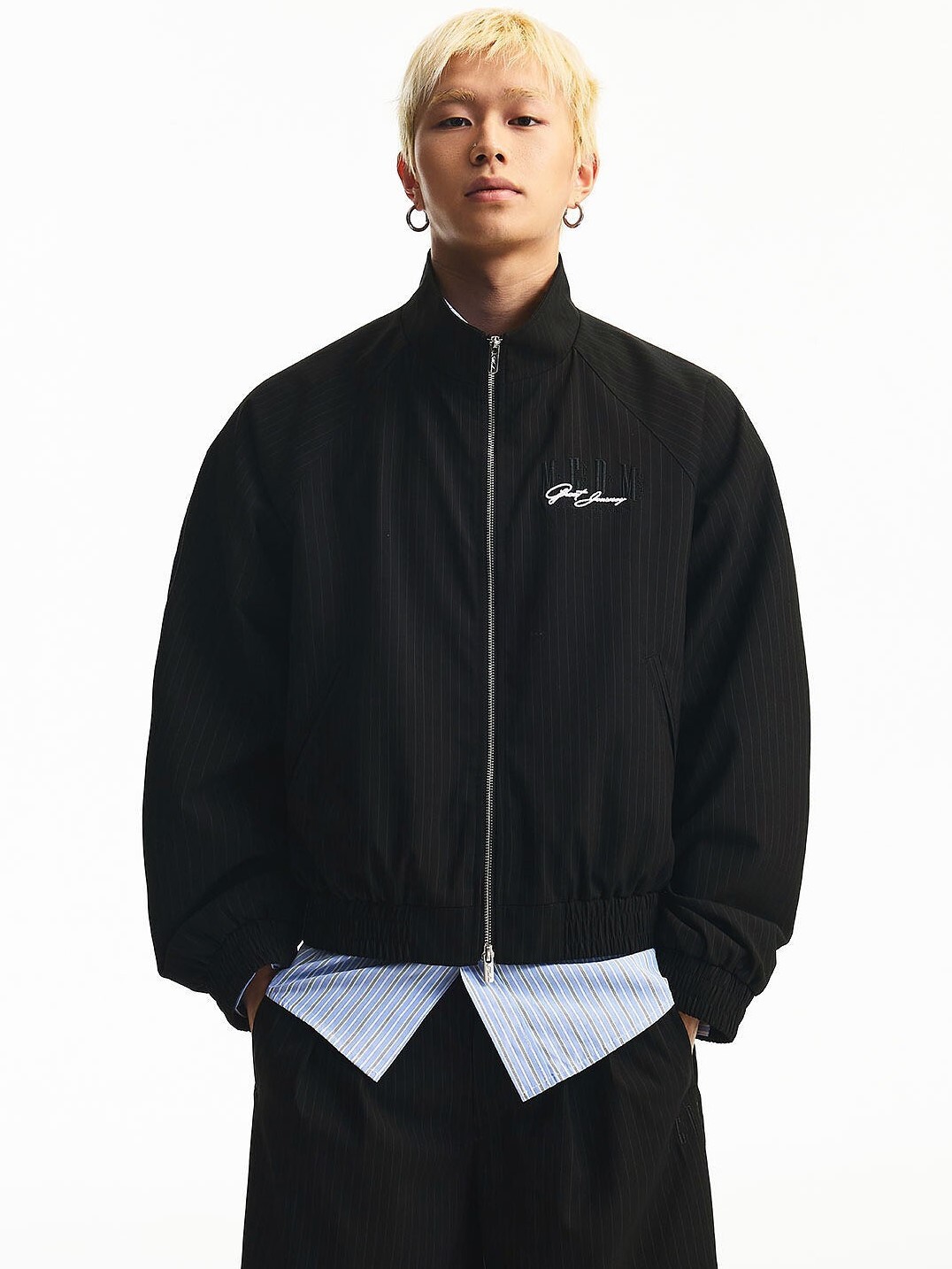 MEDM 繡花字體Logo 細條紋 美式復古 休閒外套