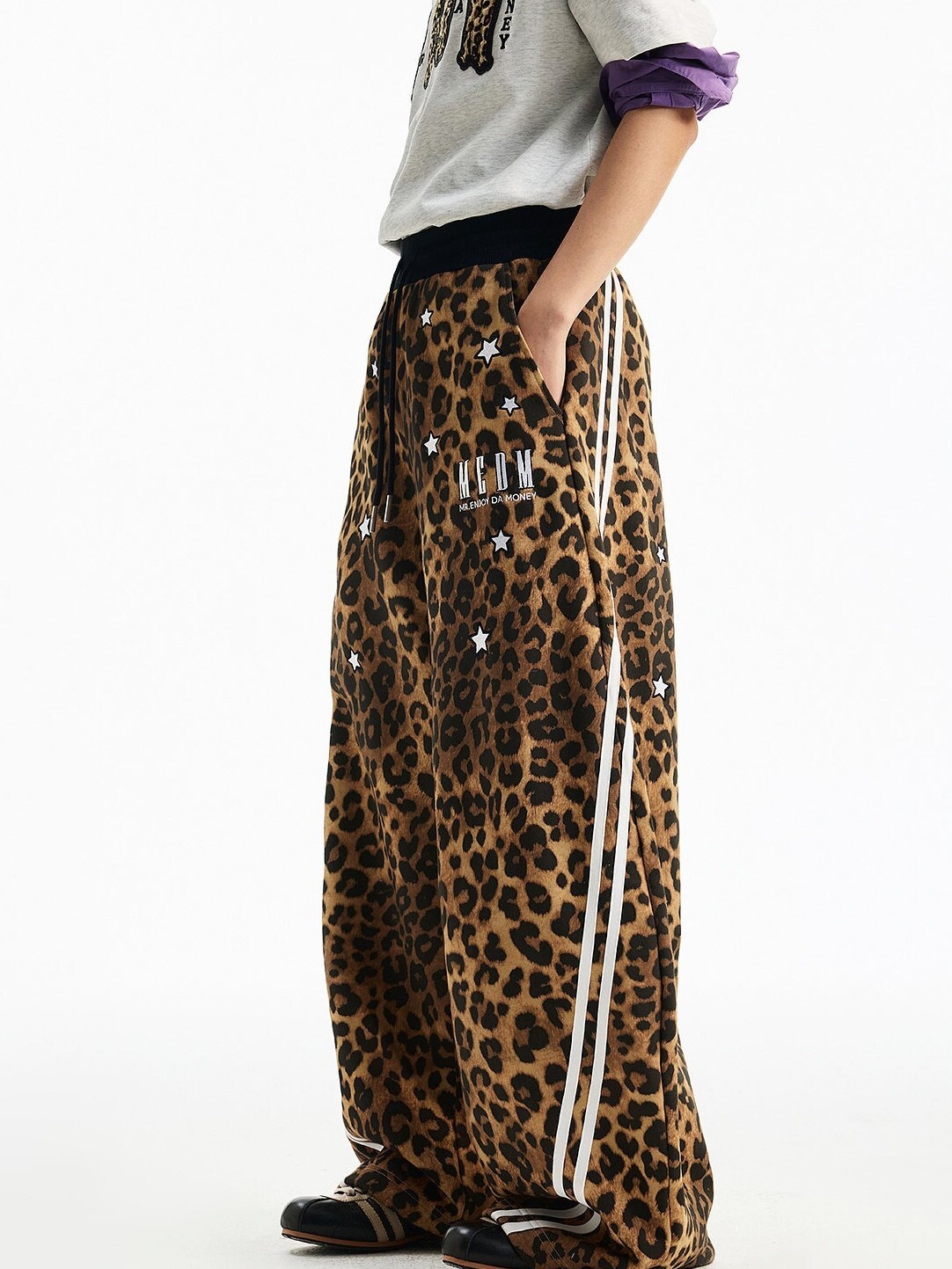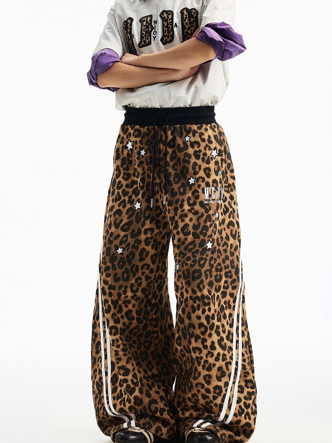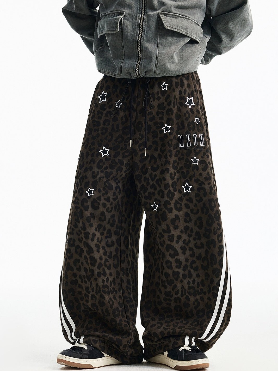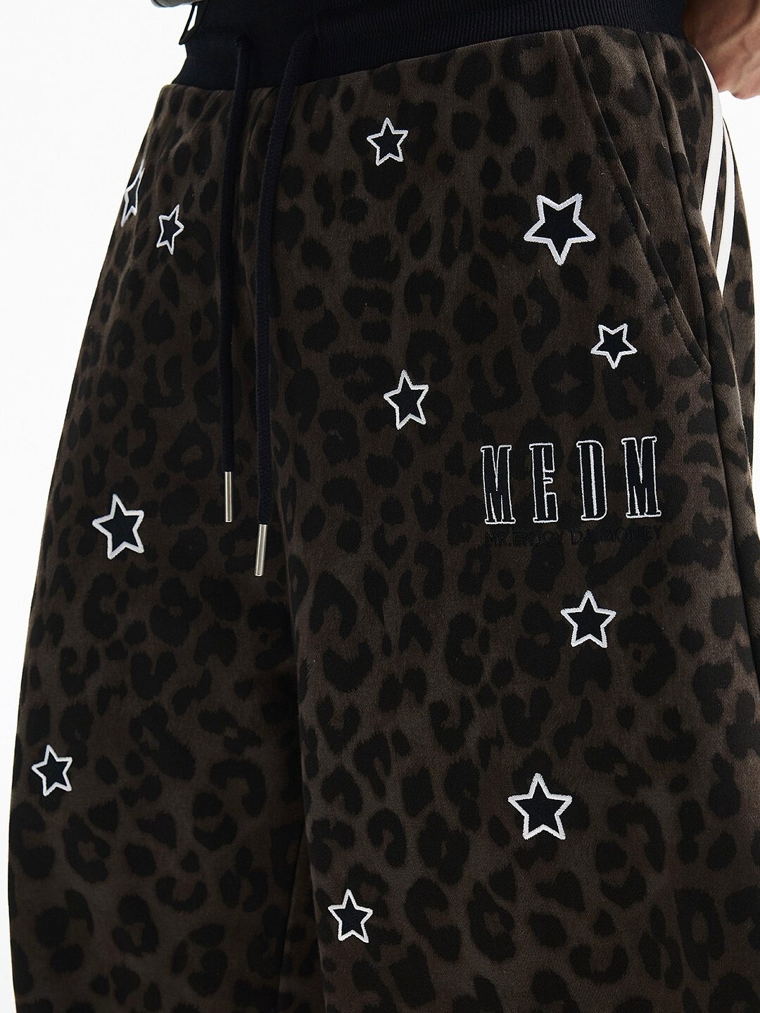 MEDM 刺繡星星 經典豹紋印花 休閒抽繩 彎刀褲 長褲