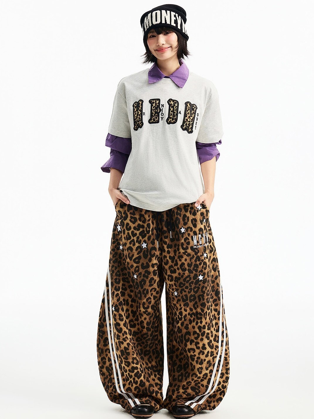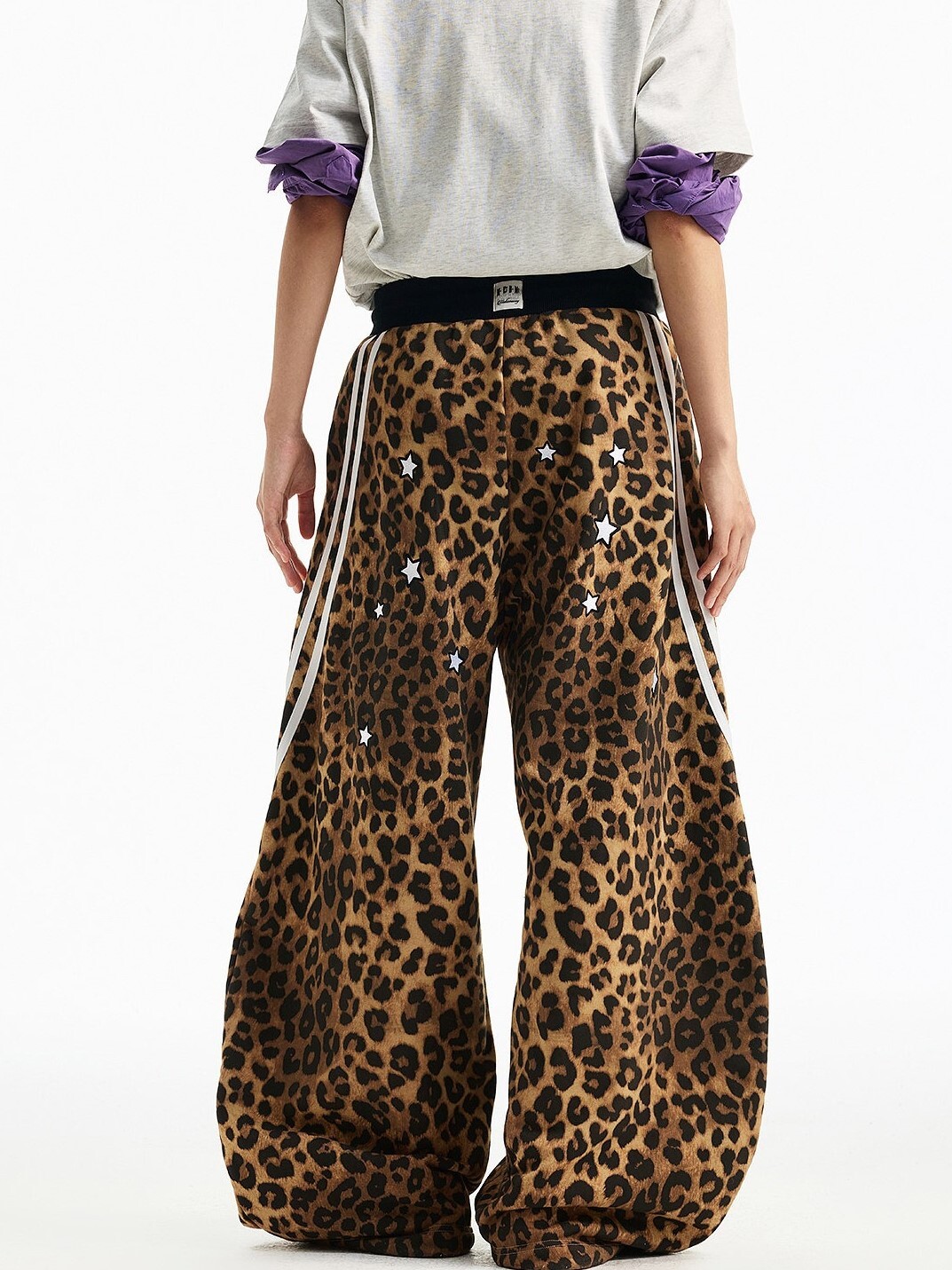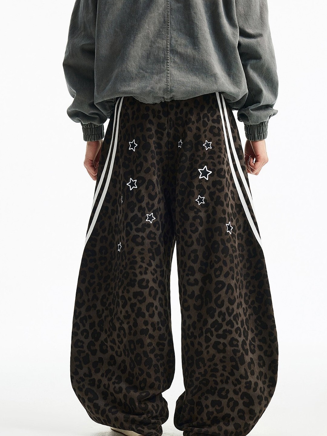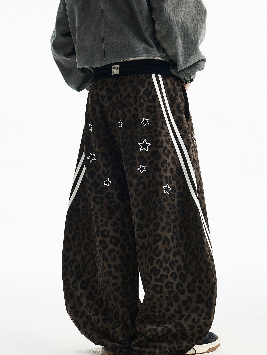 MEDM 刺繡星星 經典豹紋印花 休閒抽繩 彎刀褲 長褲