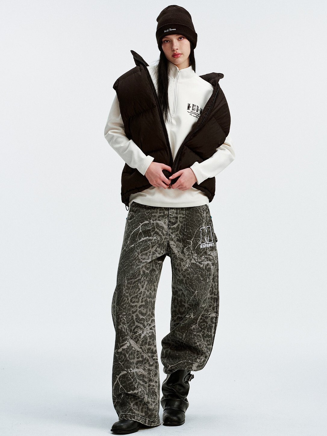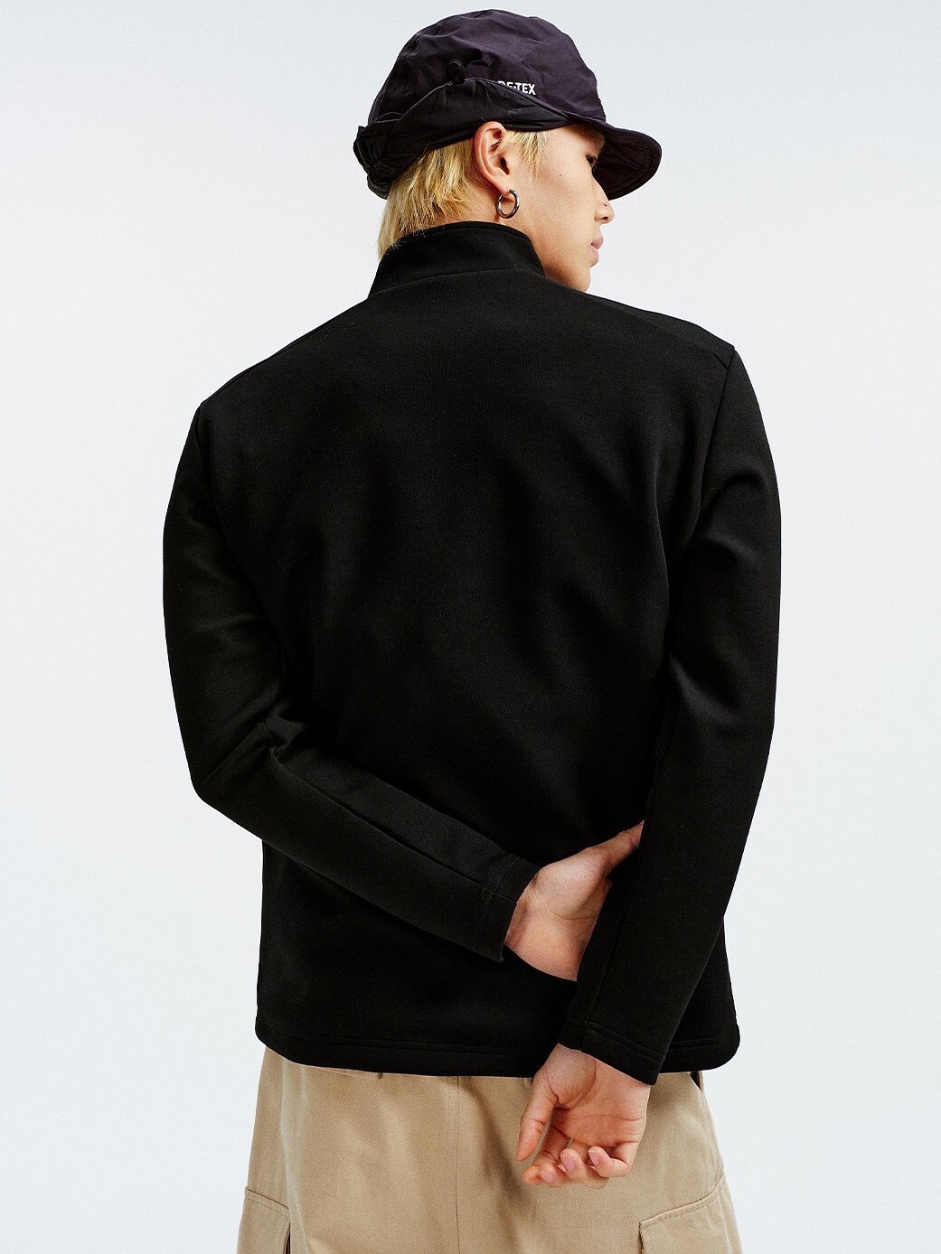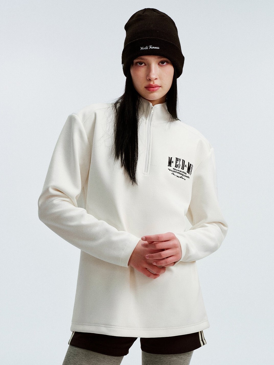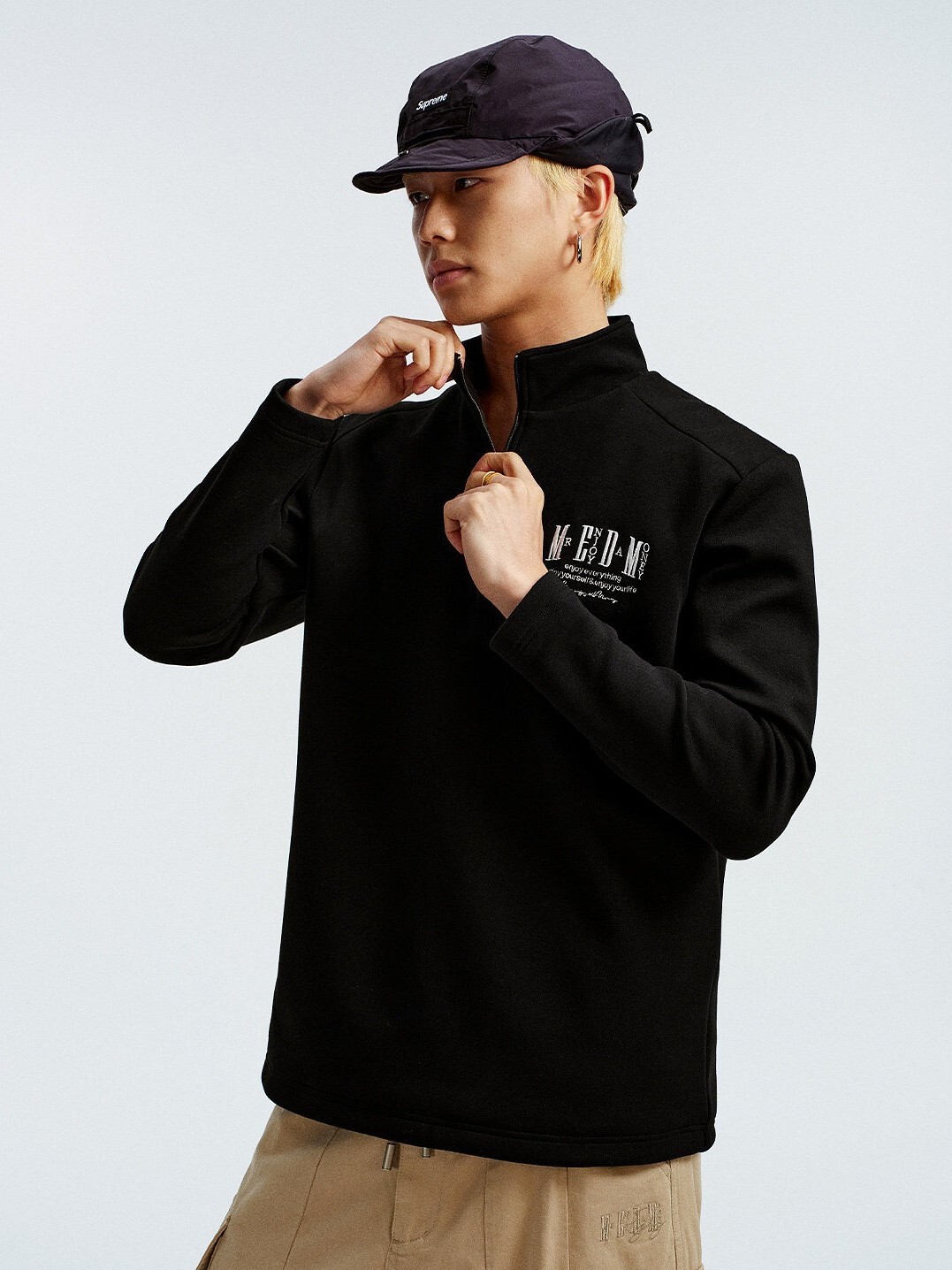 MEDM 字母刺繡Logo 微高領 尼龍半拉鏈 簡約輕薄 長袖T