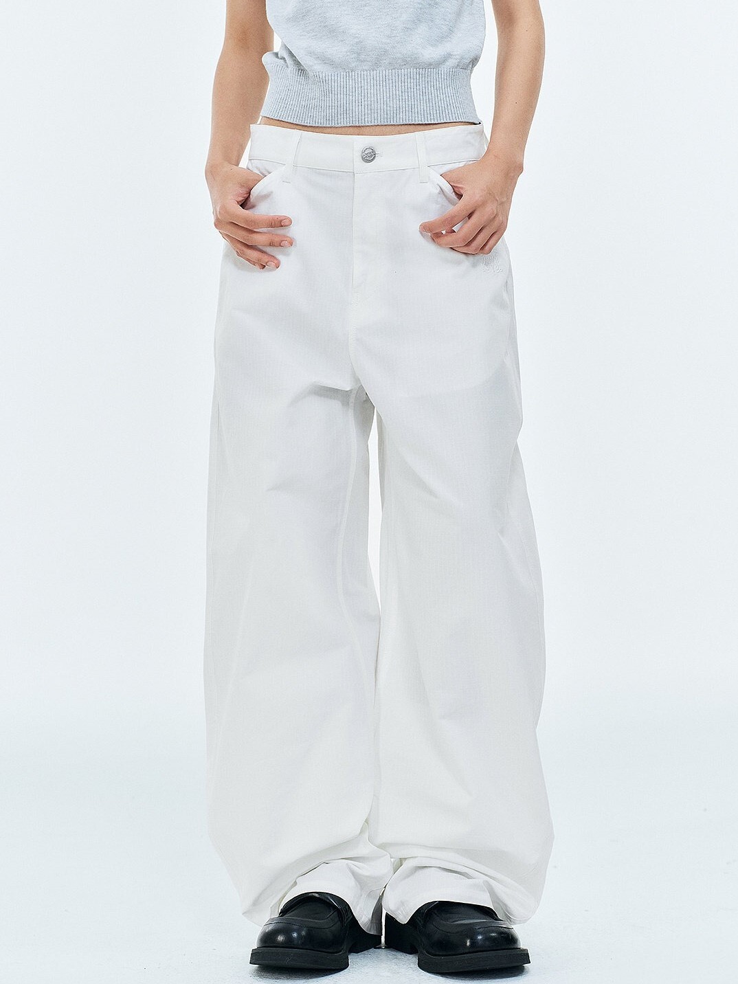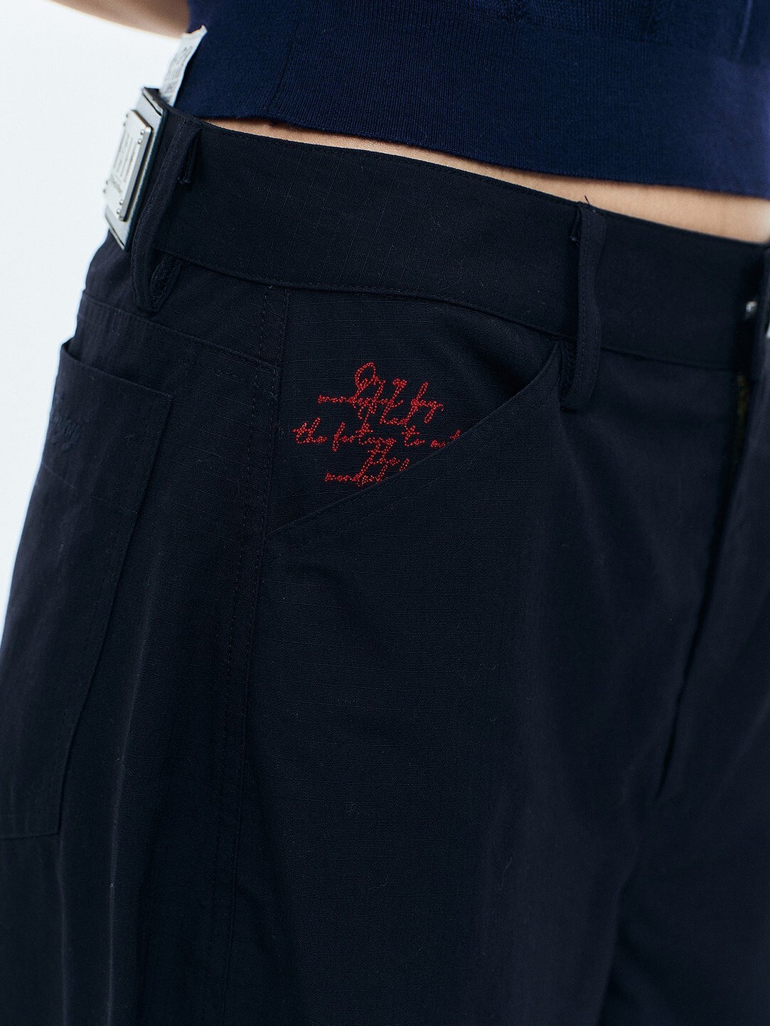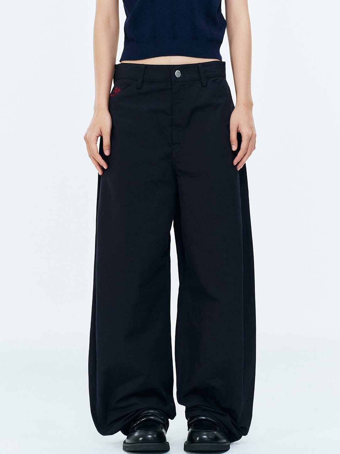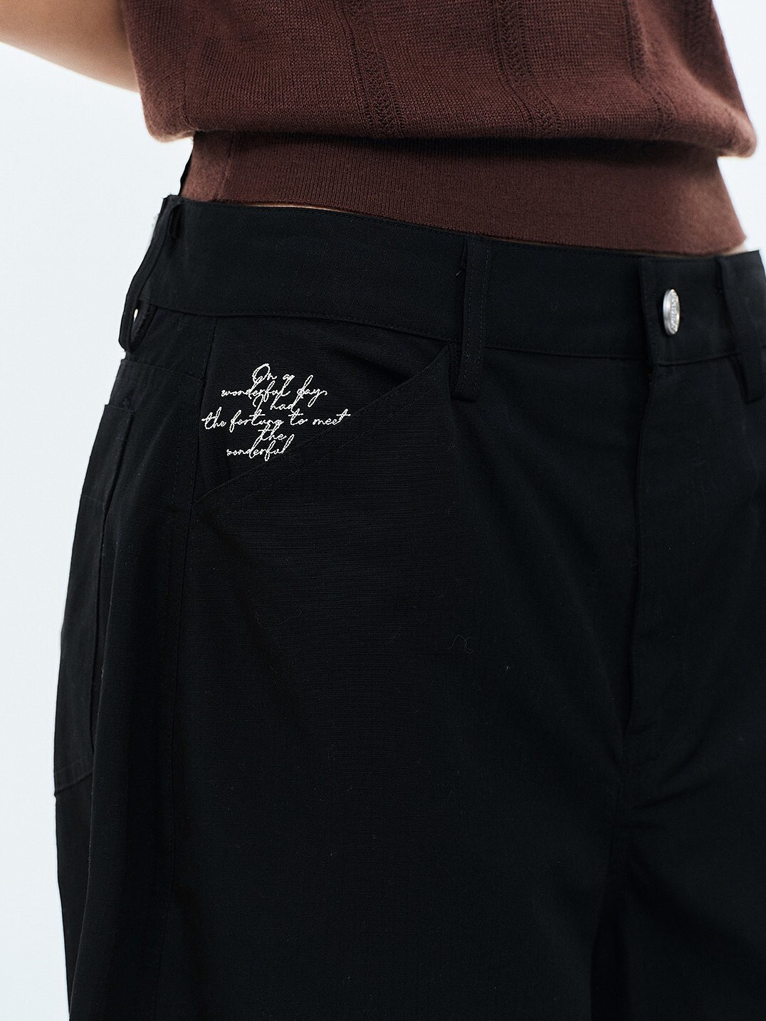 MEDM 口袋刺繡小標 廓型修身 休閒直筒長褲