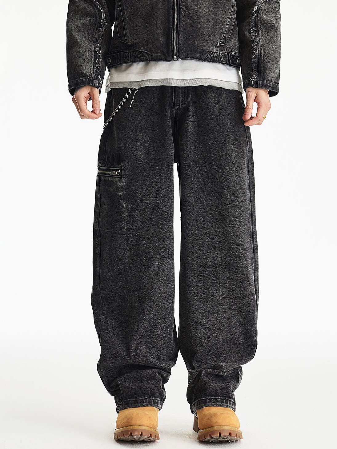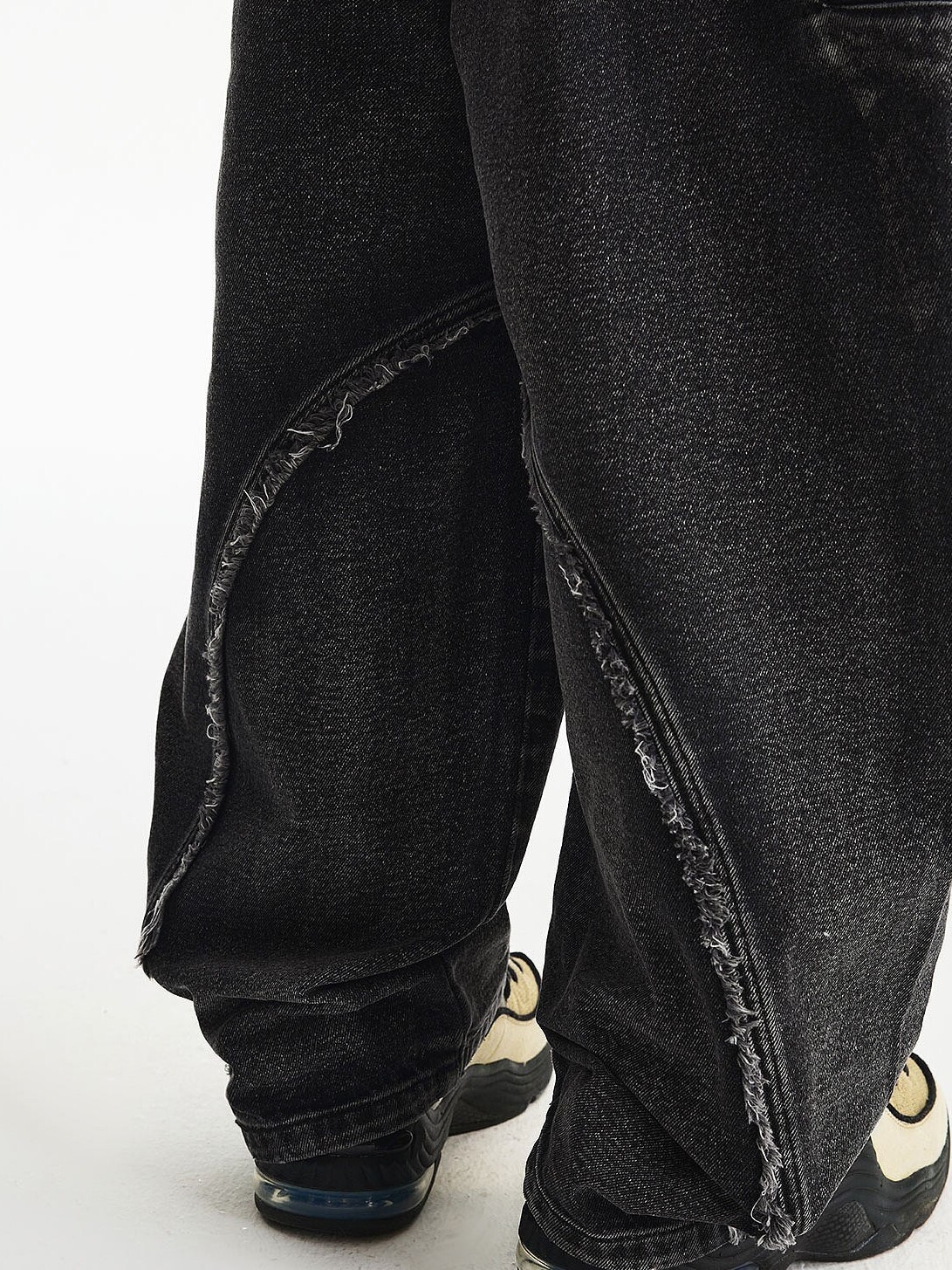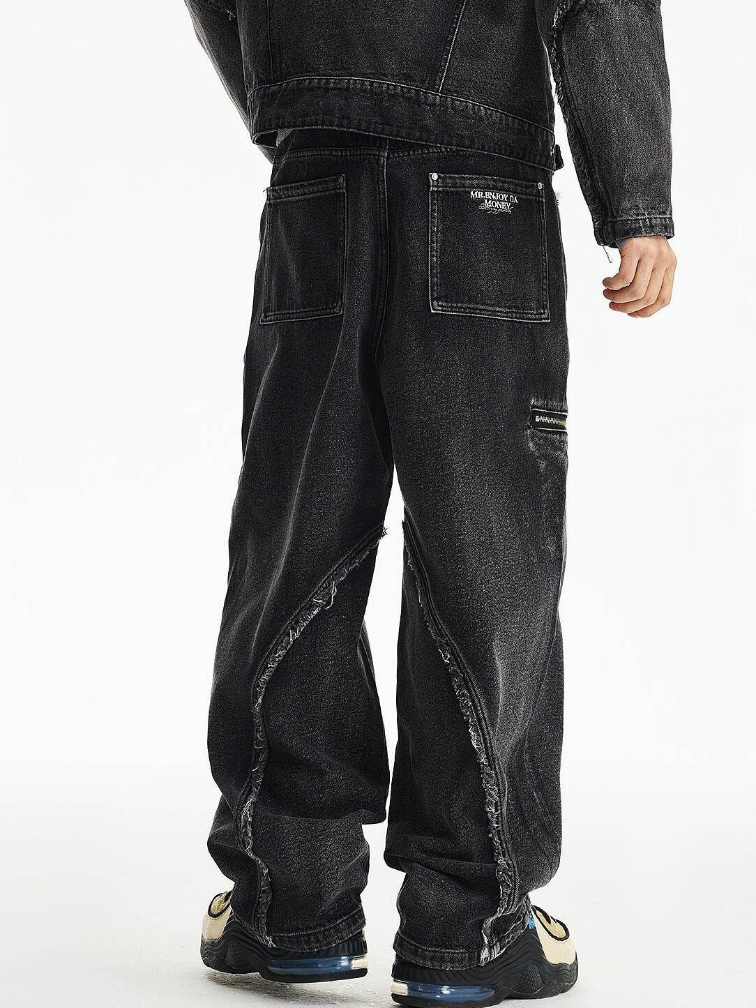 MEDM 毛邊 水洗做舊結構 牛仔黑套装 長褲