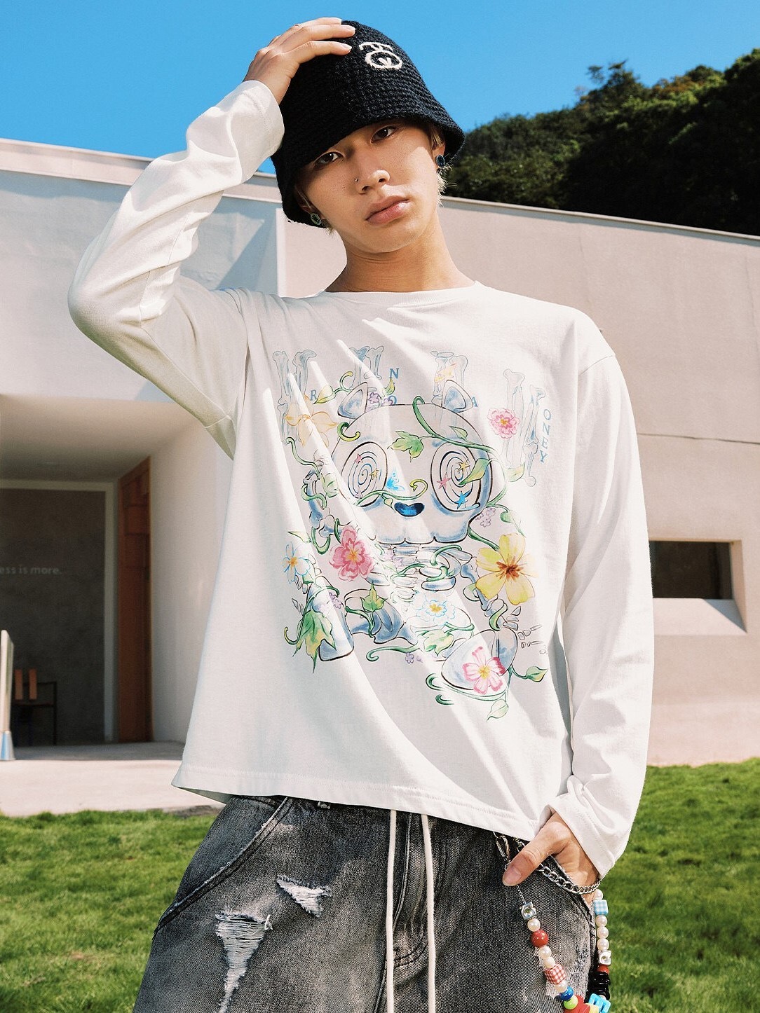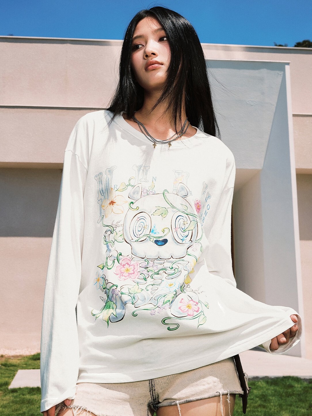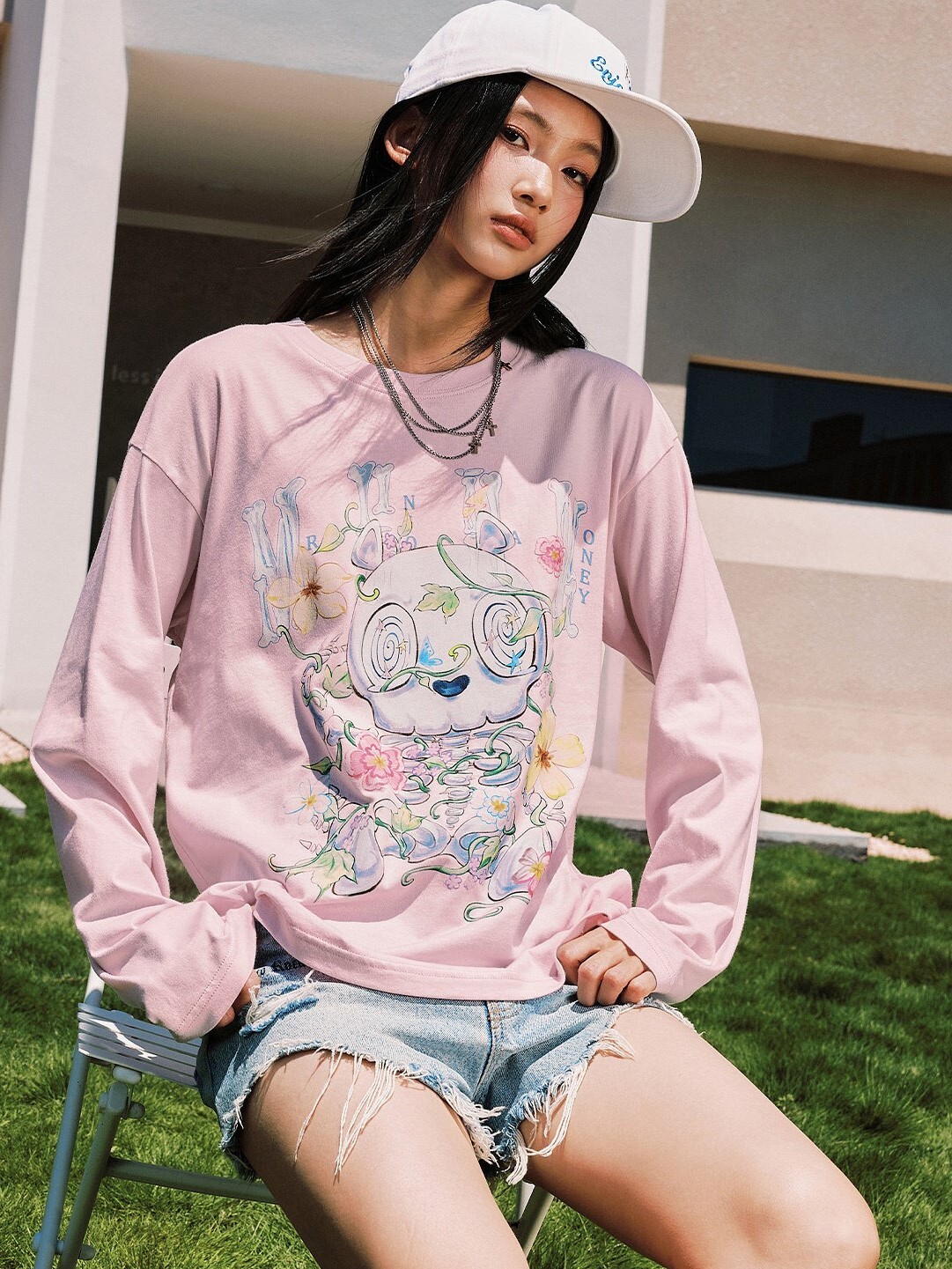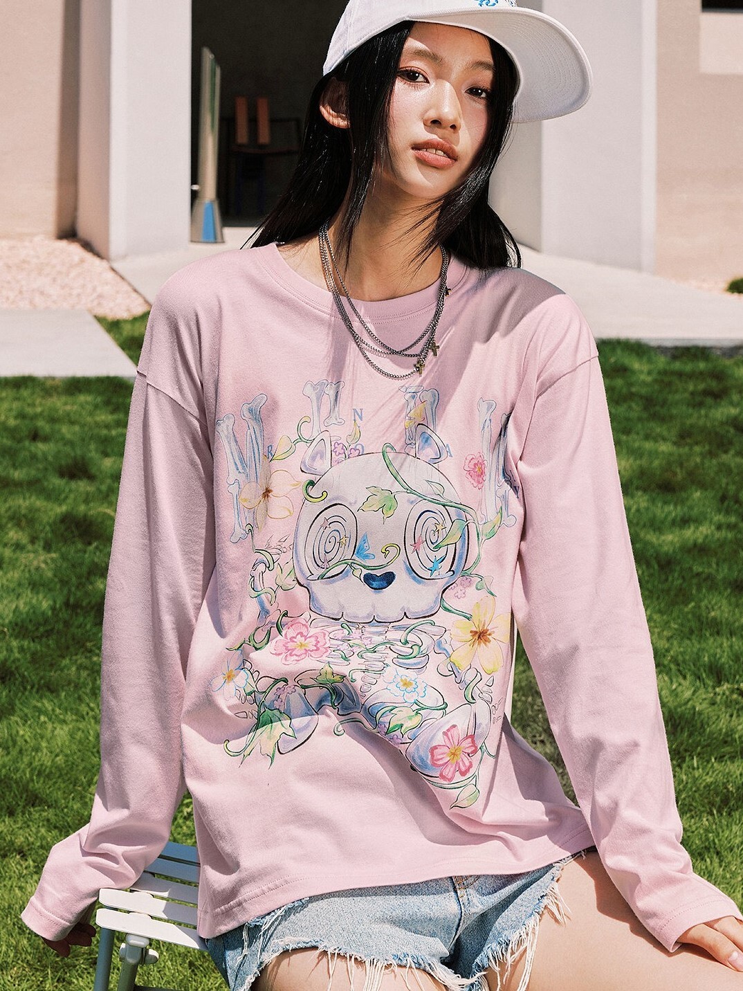 MEDM 骷髏小熊 藤蔓花朵印花 休閒圓領 長袖T