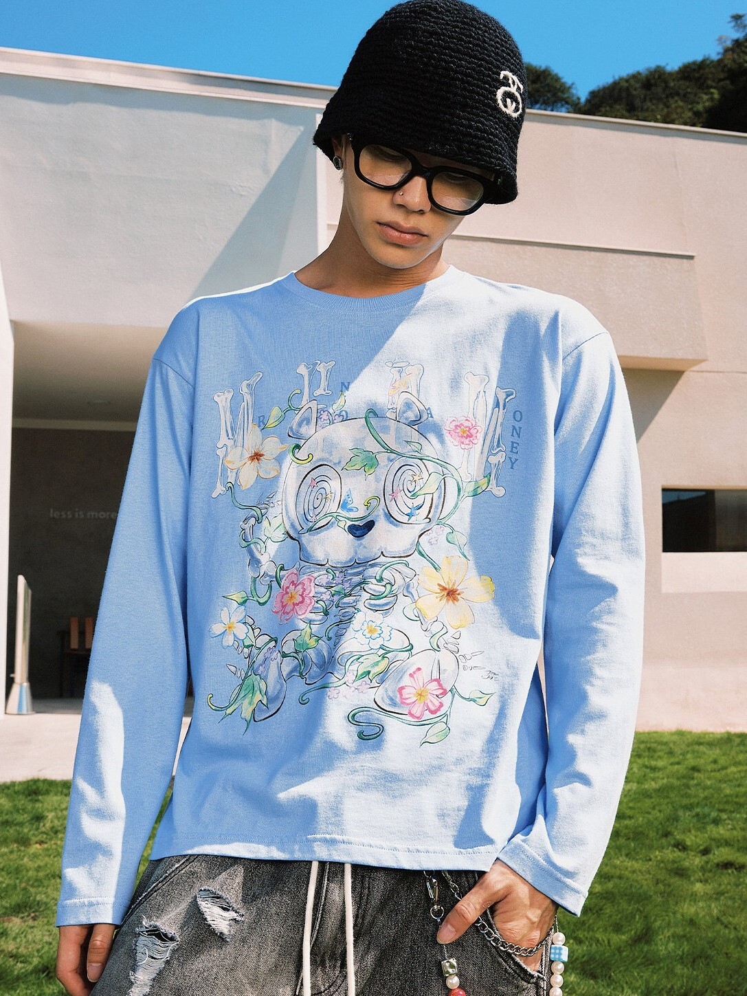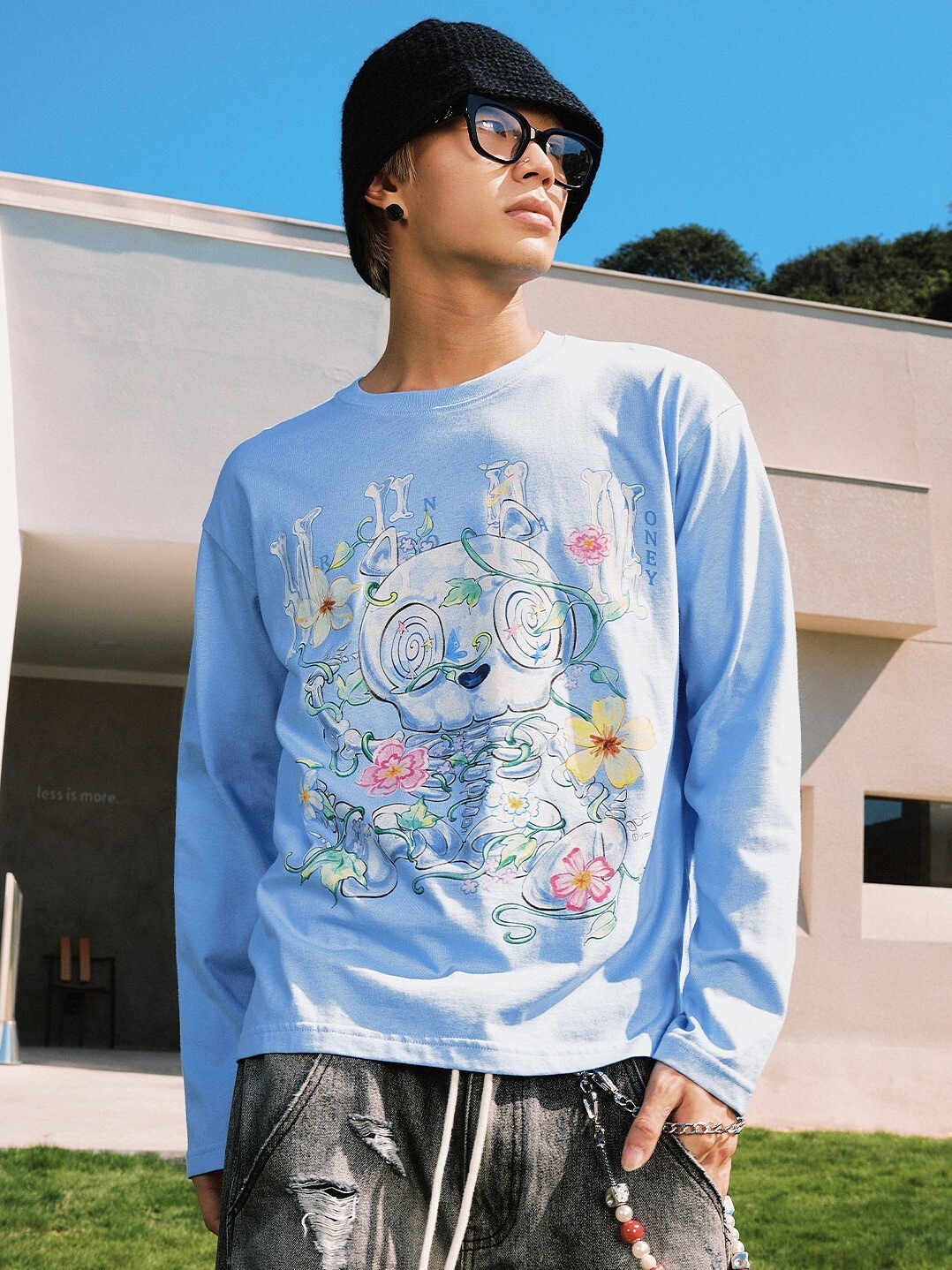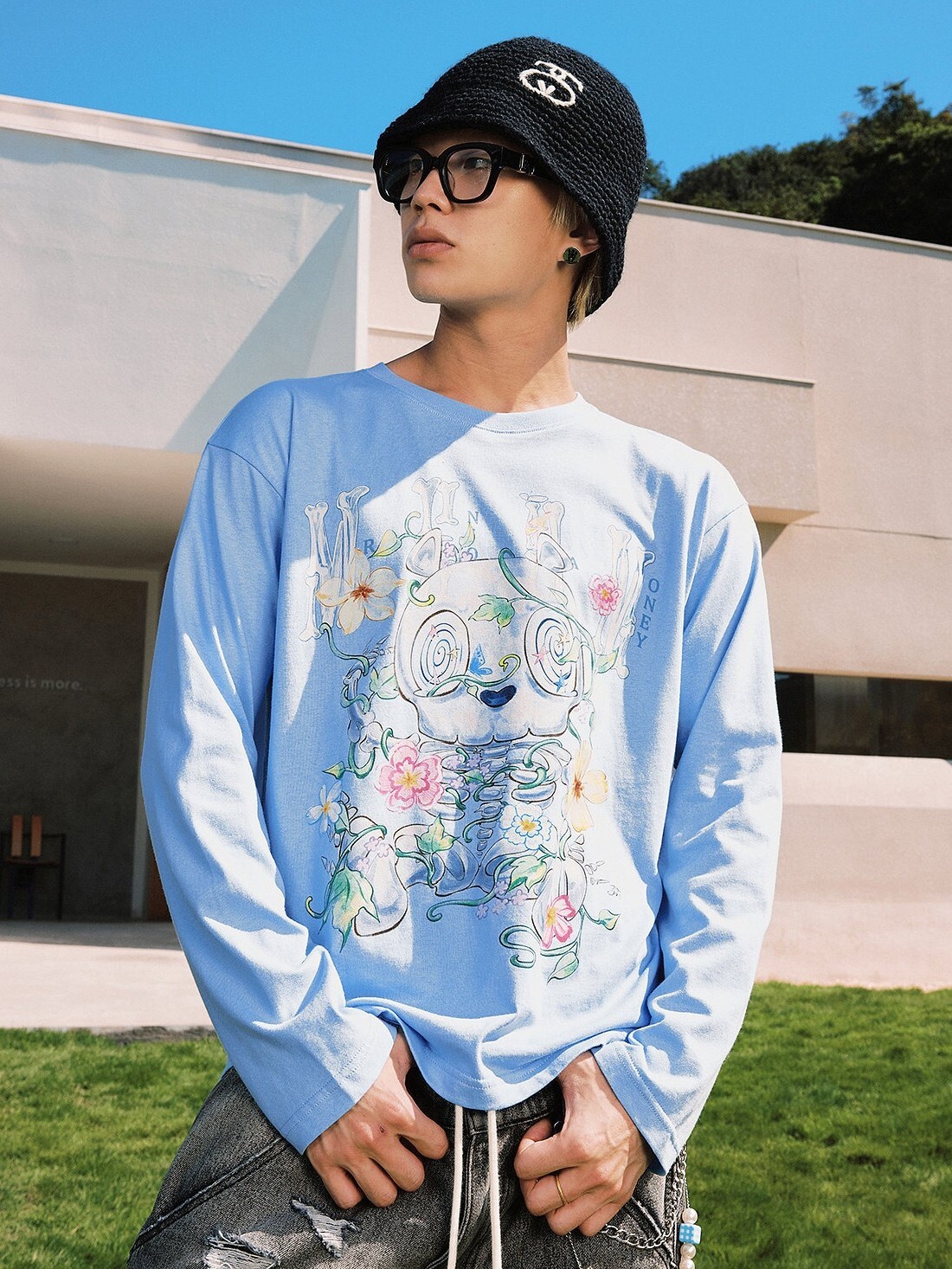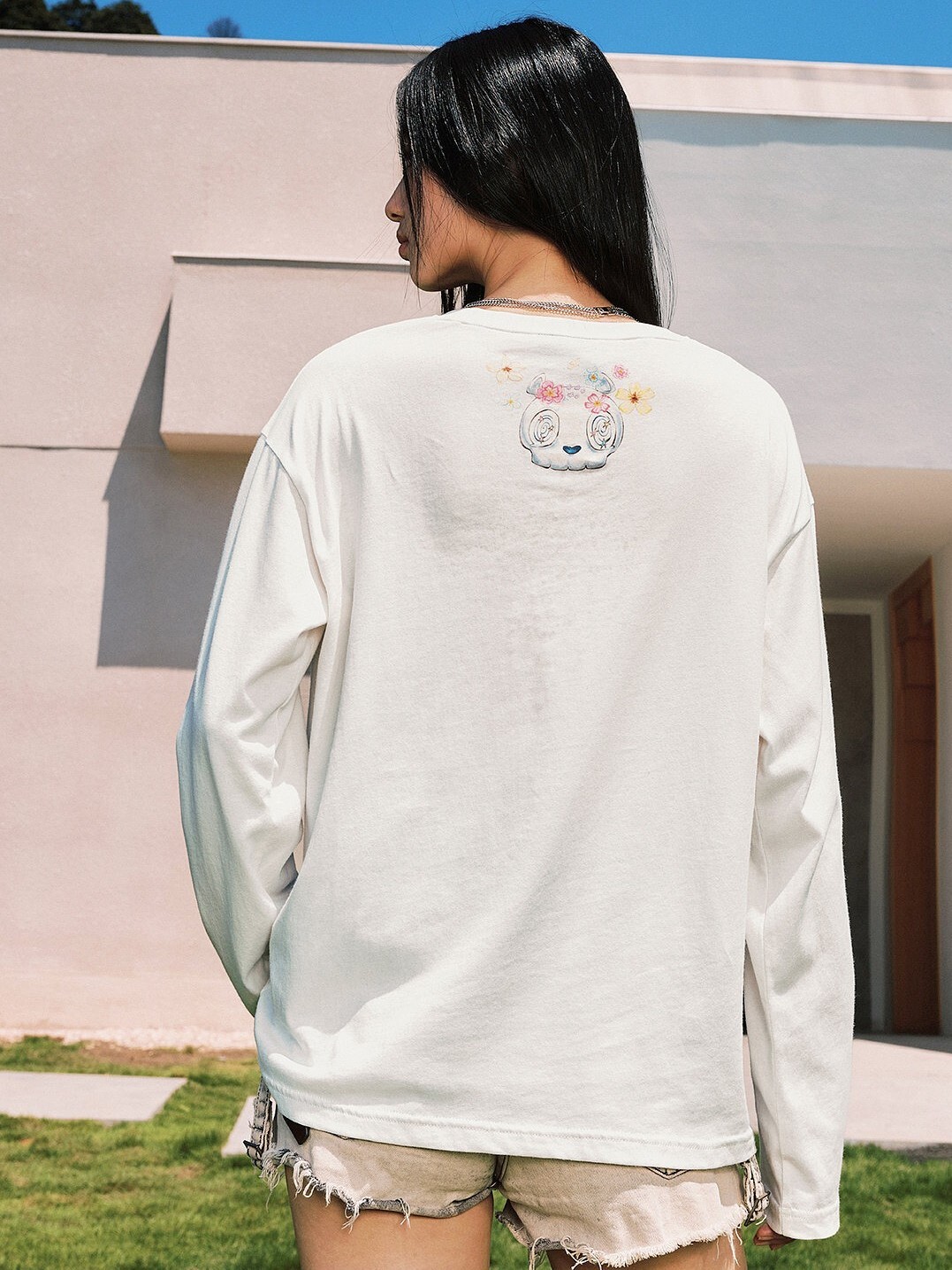 MEDM 骷髏小熊 藤蔓花朵印花 休閒圓領 長袖T