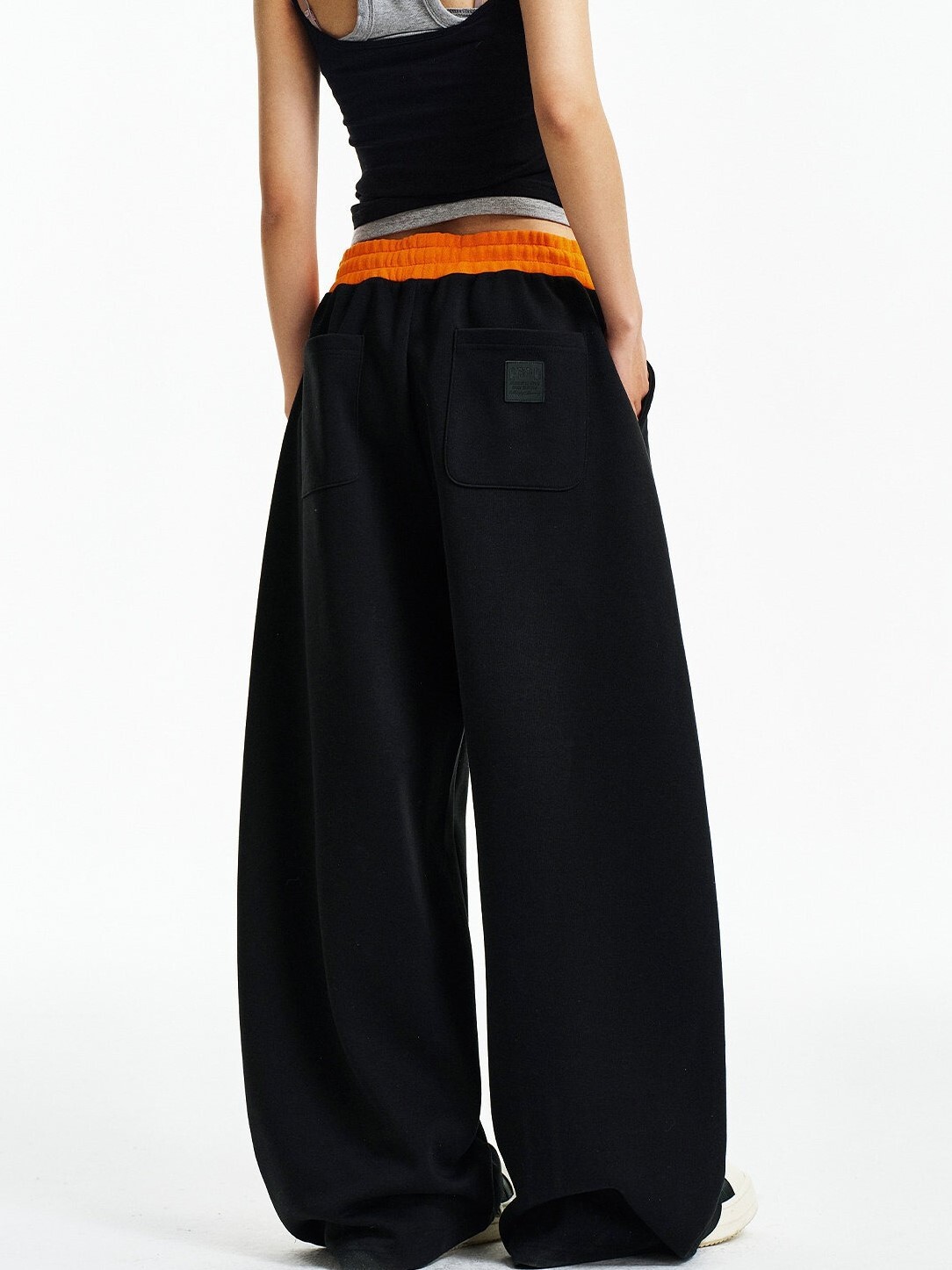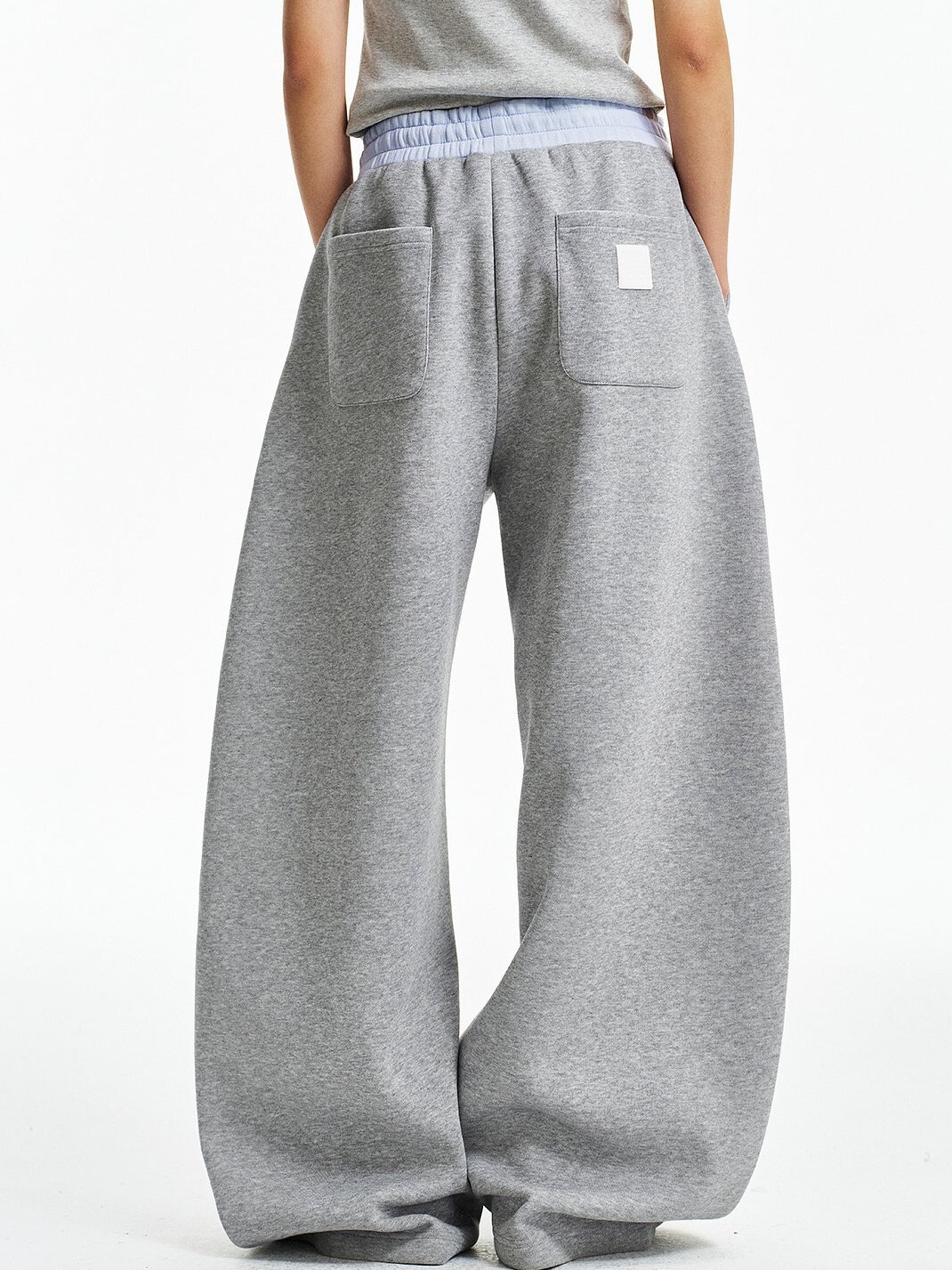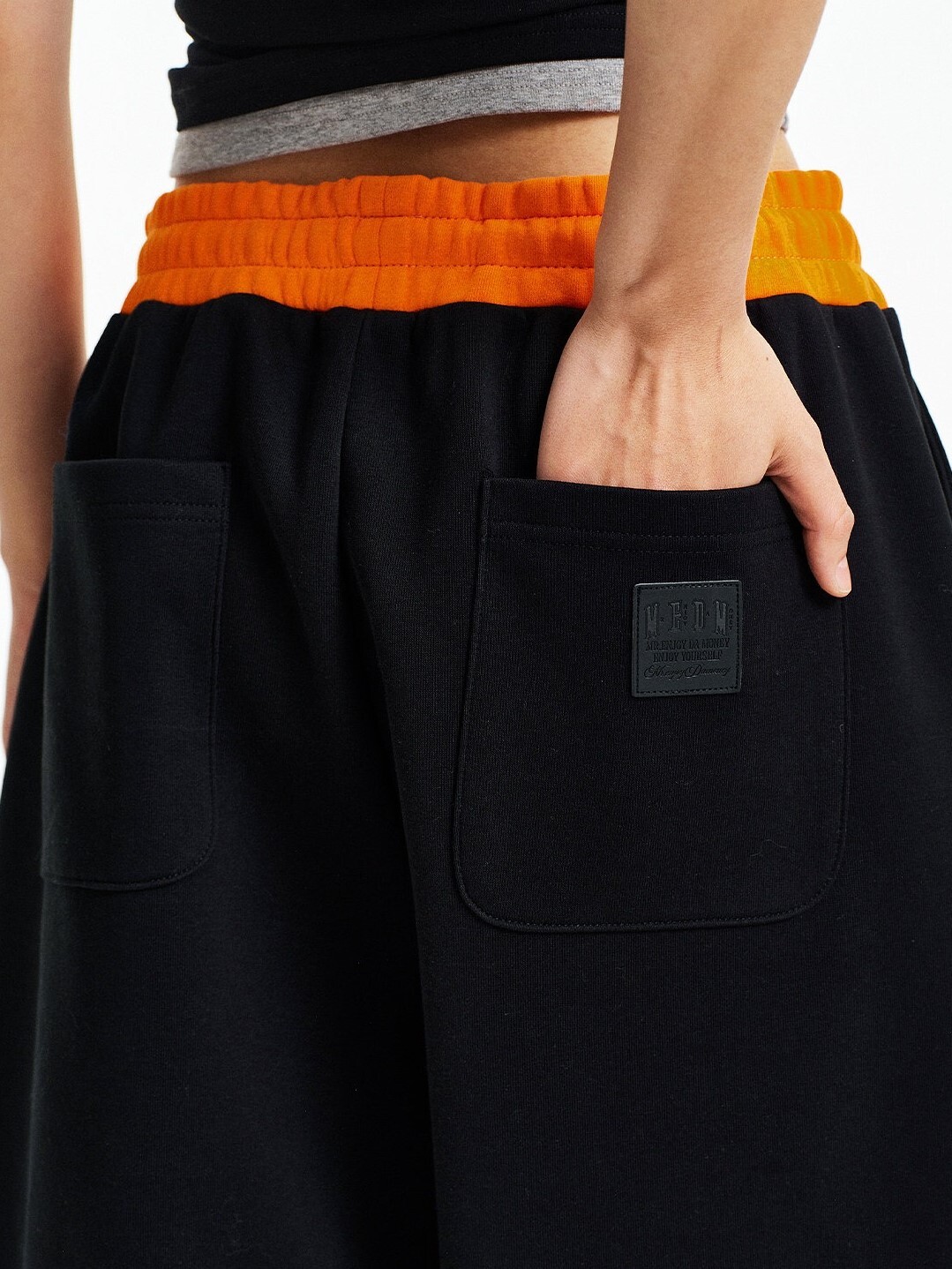 MEDM 方形皮標Logo 撞色拼接 褲頭抽繩 寬鬆棉長褲