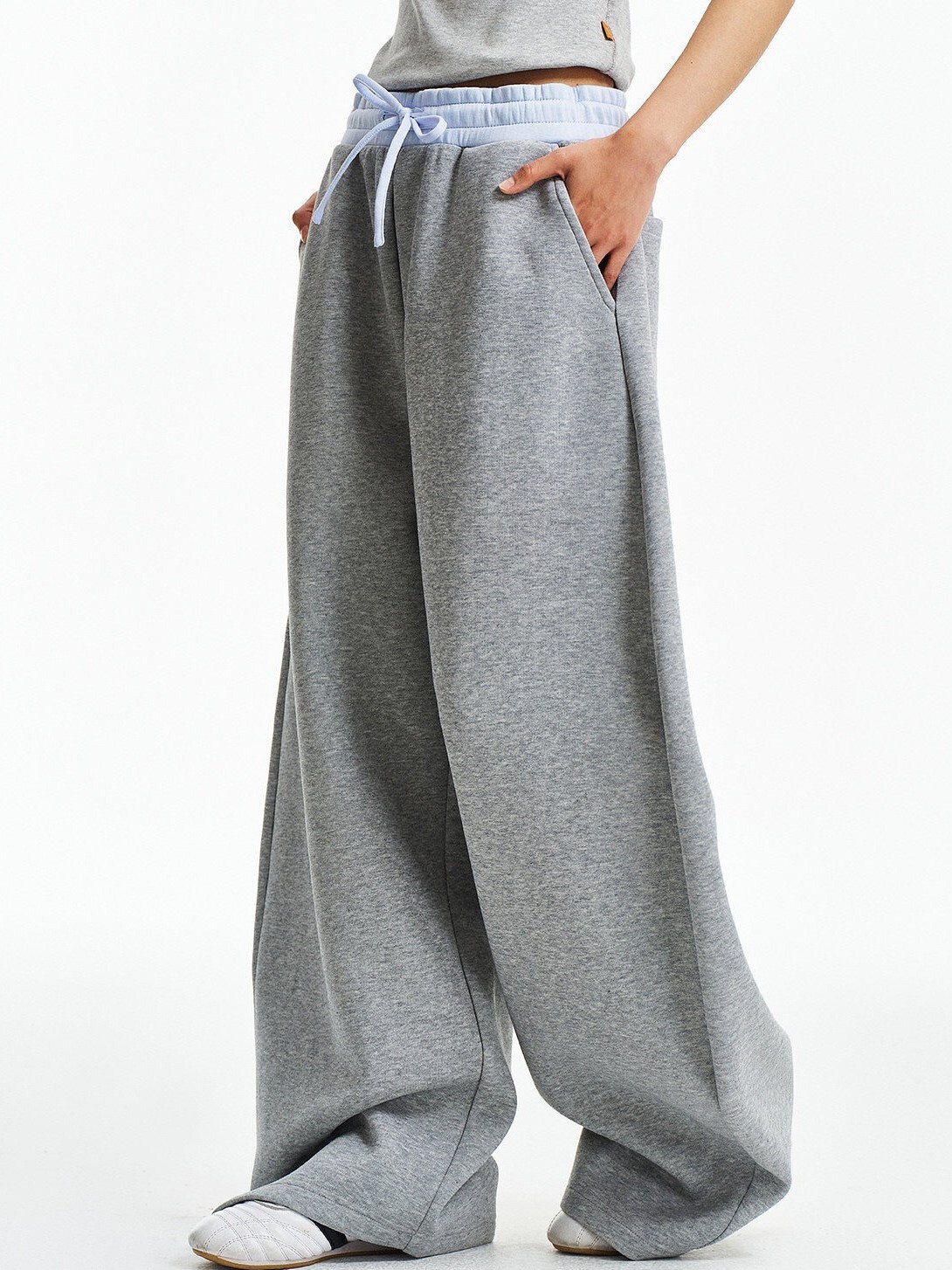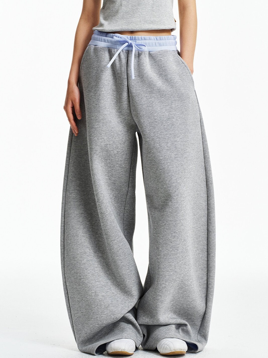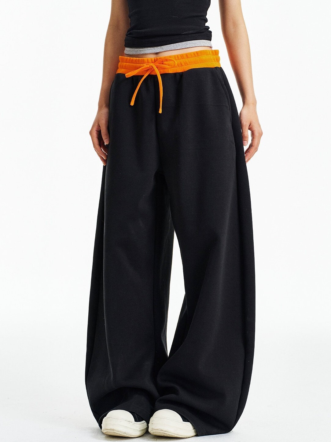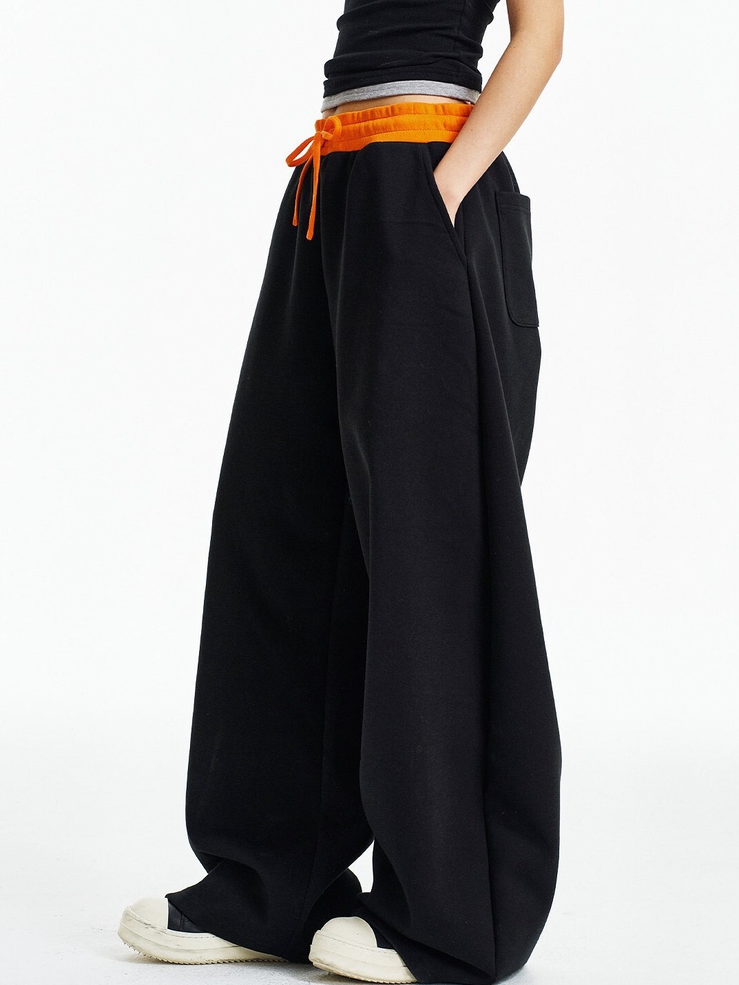 MEDM 方形皮標Logo 撞色拼接 褲頭抽繩 寬鬆棉長褲