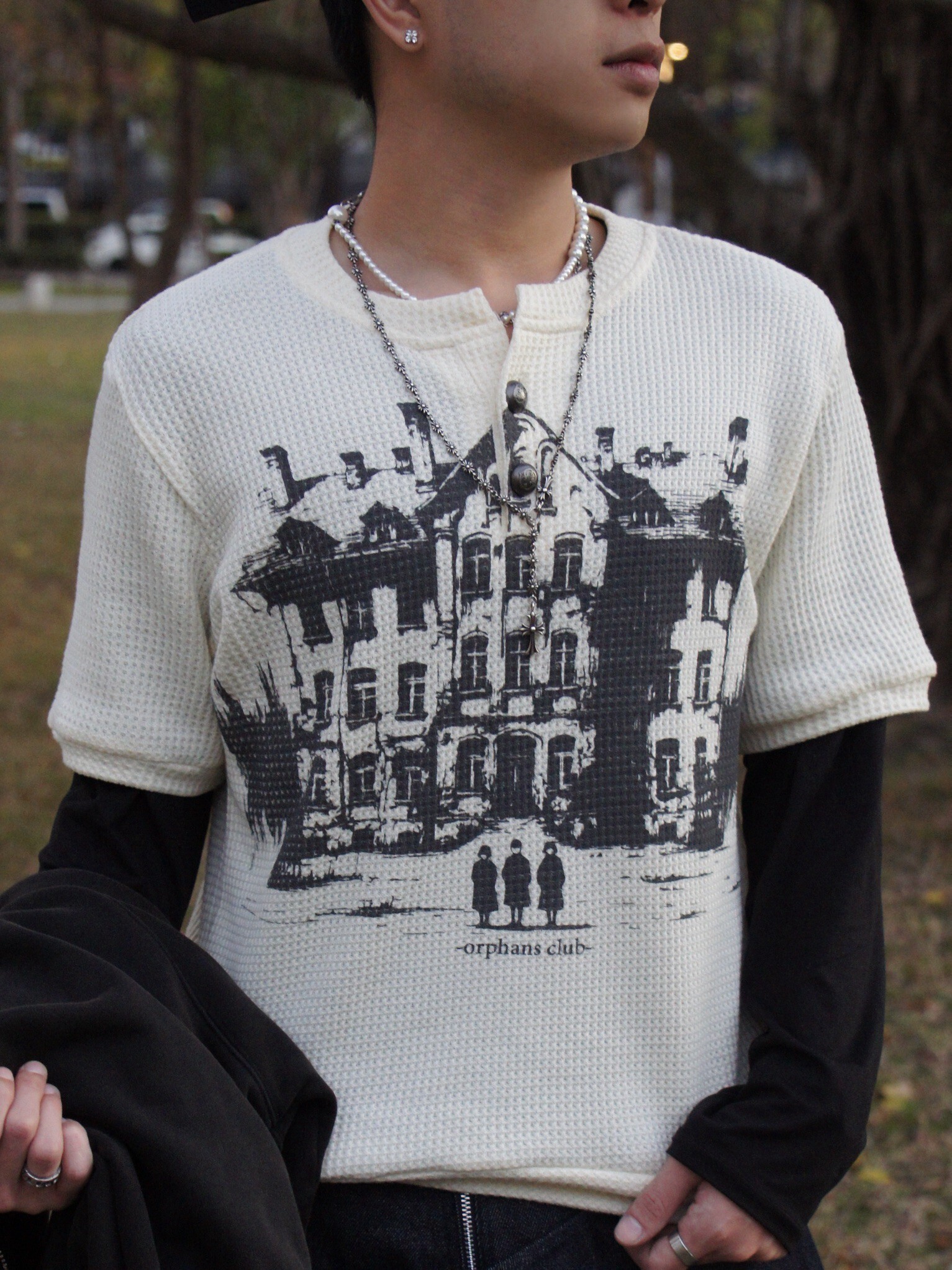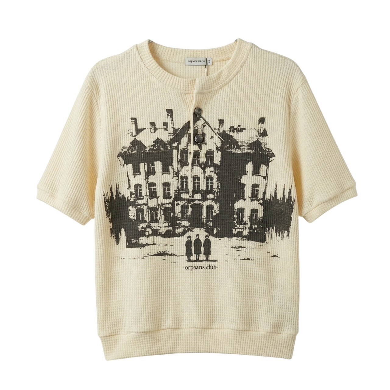 Orphans Club 華夫格 亨利領卯釘釦 大房子Logo份量感短袖 ‘’ Waffle Knit Snap-Button Henley Tee ‘’