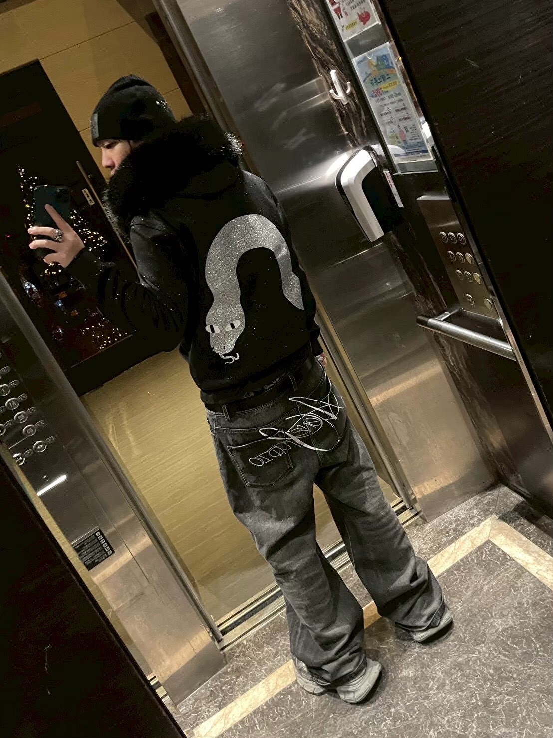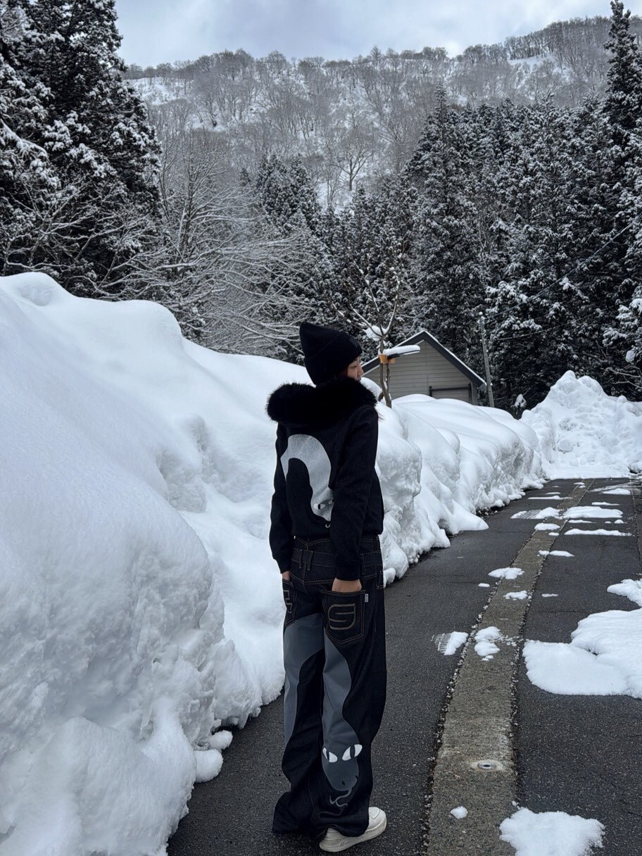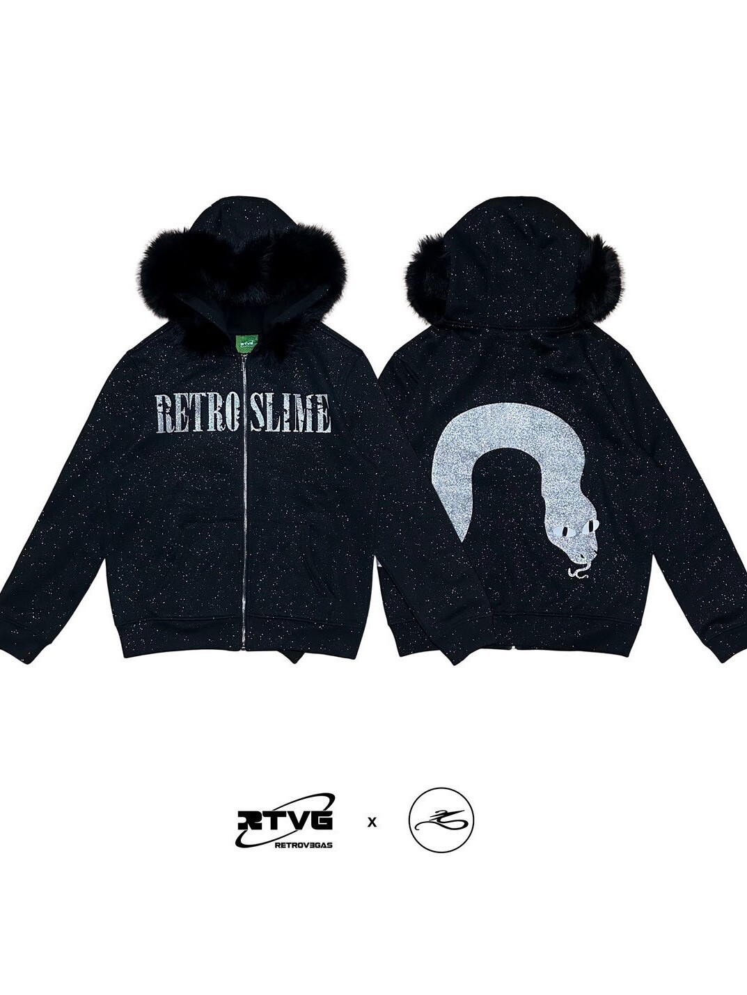 RTVG x SLIME LOVE 限量聯名 閃粉星空灰蛇 斑駁雙Logo 可拆卸毛領 短版連帽外套